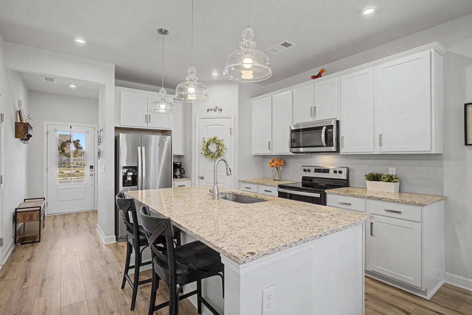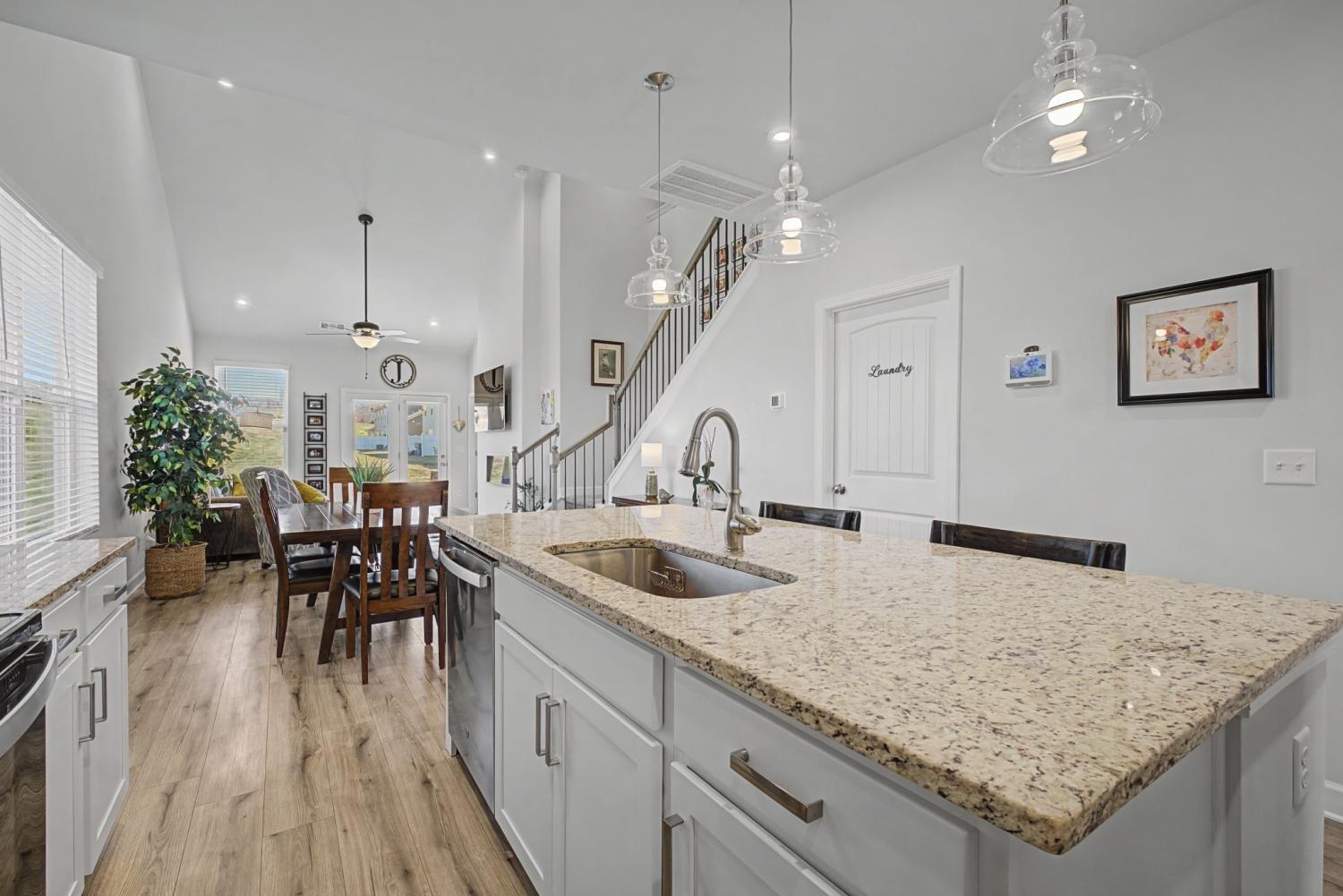 Welcome to this stunning end-unit townhome, offering 3 bedrooms and 2.5 baths, perfectly move-in ready for its next owner! Step inside to an inviting open-concept layout featuring a spacious kitchen, living, and dining area ideal for hosting gatherings or enjoying cozy family moments.The chef’s kitchen is thoughtfully designed for effortless entertaining, showcasing a large granite island, elegant countertops, a stylish backsplash, and stainless steel appliances. The primary bedroom, conveniently located on the main level, provides both comfort and privacy. Upstairs, you’ll find two bedrooms and an open loft area that offers versatile flex space perfect for a home office, media room, or children’s playroom. As an end unit, this home enjoys added privacy and is filled with beautiful natural light throughout. Step outside to a private, level backyard with no units directly behind, a perfect spot to relax or gather with family and friends. Plus, an open green space across from the unit is perfect for relaxing outdoors and gives kids and pets plenty of room to play and enjoy the fresh air. Located across from Lebanon’s Club at Five Oaks Golf Course, this home offers convenient access to nearby shopping, grocery stores, and I-40 for an easy commute. Don’t miss your chance to make this gorgeous home yours!