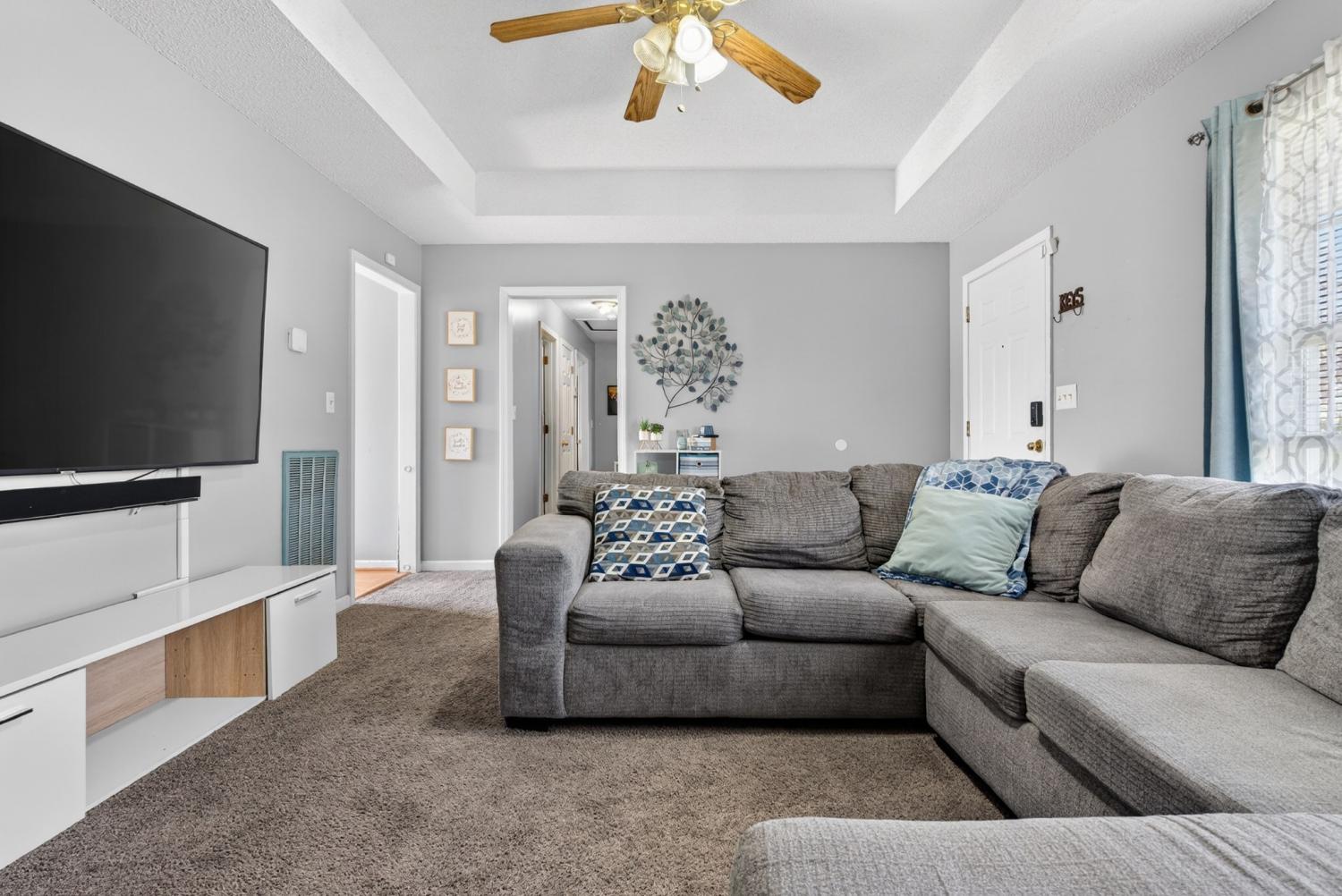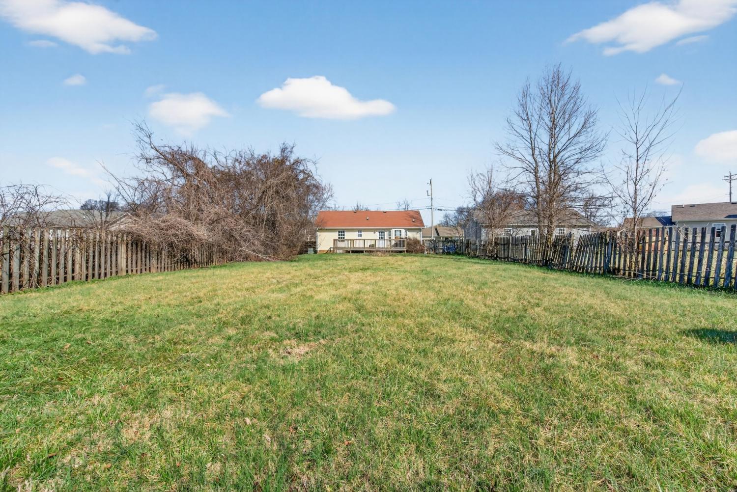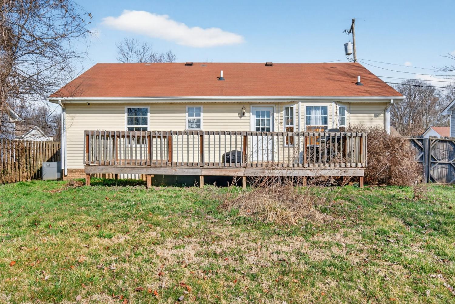 All one floor living just minutes from Ft Campbell and the Tennessee state line. This 3 bedroom, 1.5 bath home offers a functional layout with comfortable living space and great flow. The primary bedroom features its own en suite half bath for added privacy. The kitchen includes stainless steel appliances, an eat in area, and plenty of cabinet space for storage. Step out back onto the deck, perfect for grilling or relaxing in the evenings. The fully fenced back yard gives you space for pets, play, or entertaining. You will love the adorable covered front porch, ideal for morning coffee or winding down at the end of the day. Convenient to shopping, dining, and post, this home is a great option for first time buyers, downsizing, or adding to your rental portfolio.