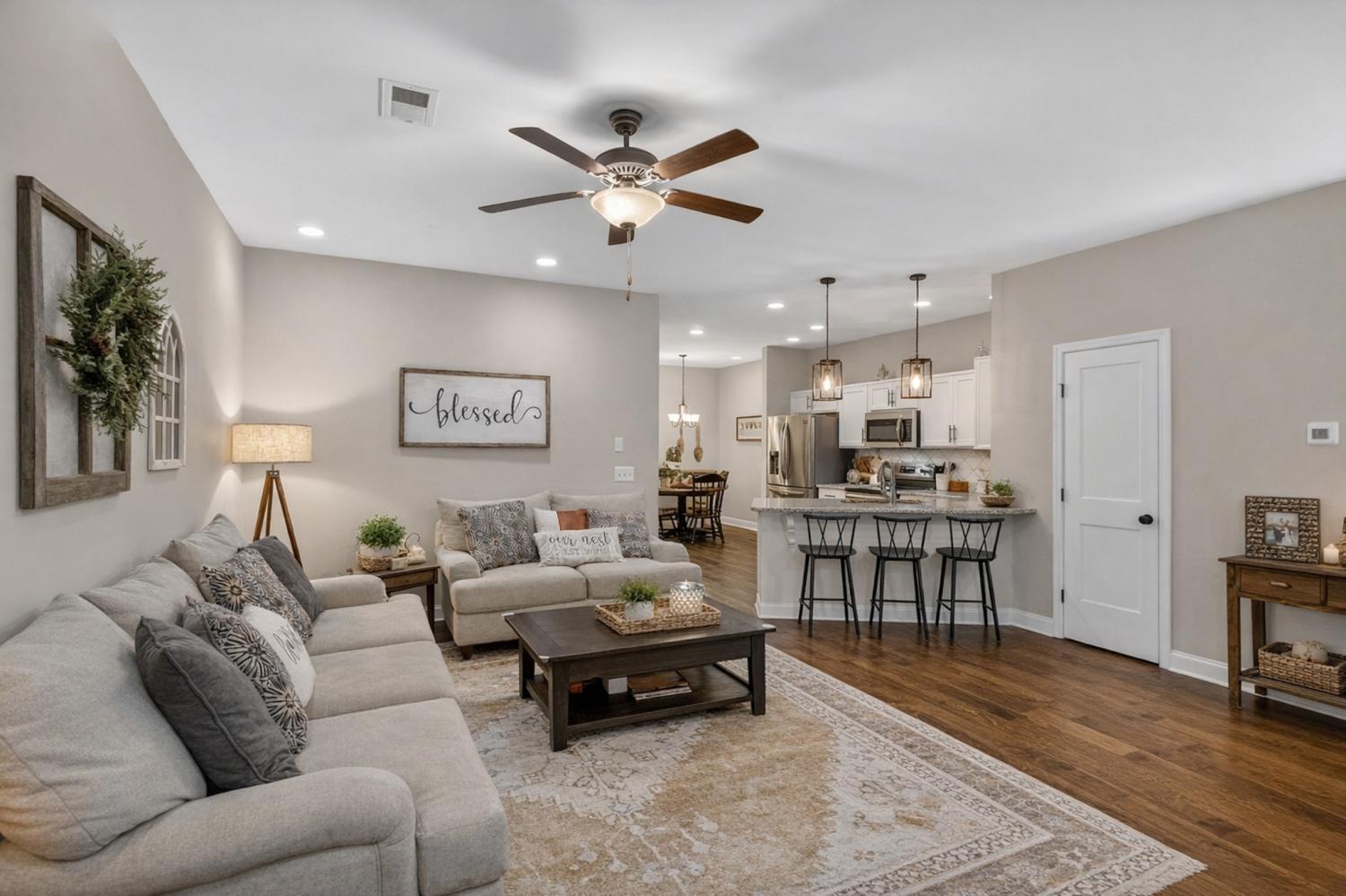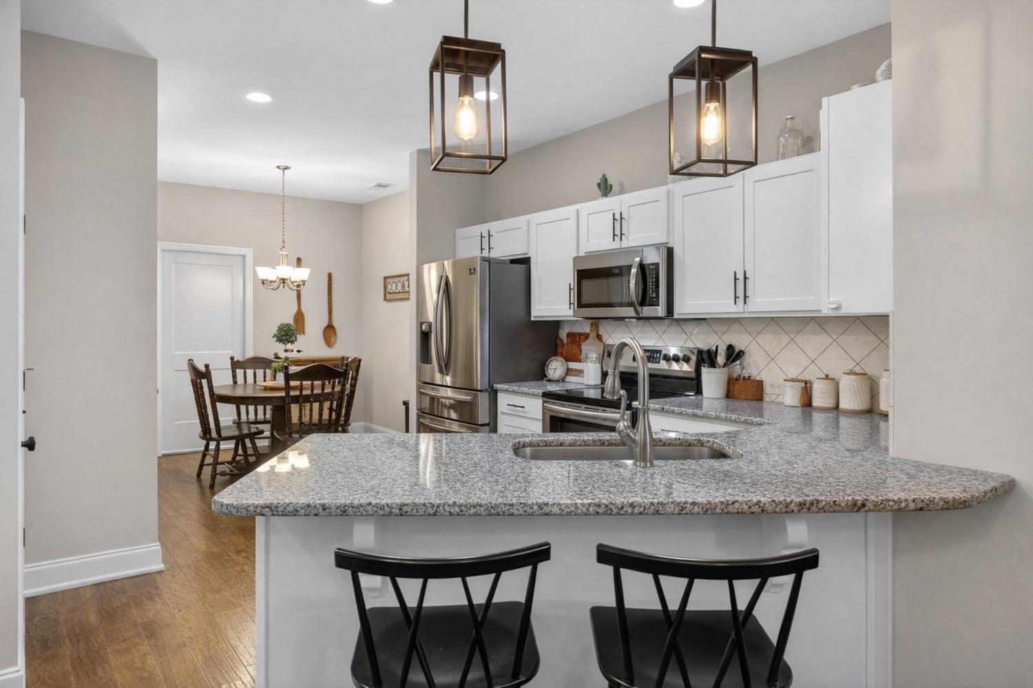 This beautifully maintained 3-bedroom, 2.5-bath, two-level townhome offers the perfect blend of style, comfort, and convenience — completely move-in ready. The main level features granite countertops, stainless steel appliances (refrigerator conveys), hardwood flooring on the main floor and stairs, soaring ceilings, and recessed lighting throughout. The spacious primary suite serves as a relaxing retreat, while the versatile bonus room is ideal for a playroom, media space, or additional entertaining area. Tucked within the interior of the community, this home offers a peaceful, quiet setting that’s hard to find. A thoughtfully added downstairs office creates the perfect work-from-home space, complemented by a convenient half bath for guests. Additional highlights include fresh upstairs paint, a professionally coated garage floor, and an attic stairway insulation cover for improved energy efficiency. Ideally located just minutes from shopping, dining, and entertainment in Gallatin including Publix and a nearby movie theater. This home places everything you need right at your fingertips!