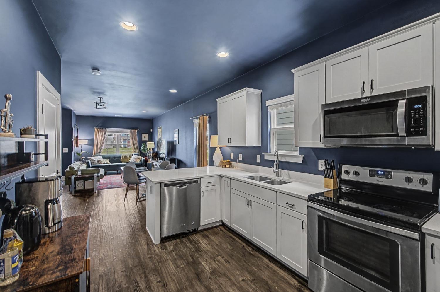 Welcome to Life in the Village! Walkable to Dose Coffee, Plus New Old Hickory Community Center now OPEN! This Home features balcony off primary overlooking green space and Large Owner's Suite. Kitchen offers white cabinets, quartz countertops and stainless appliances with recessed lighting on the main level. Dark Solid flooring runs throughout the home, while tile floors are featured in bathrooms. Bathrooms feature Granite countertops plus a large tiled shower, oodles of closet space. Old Hickory Lake plus golf course and walking trails all accessible to property. A move-in ready dream!