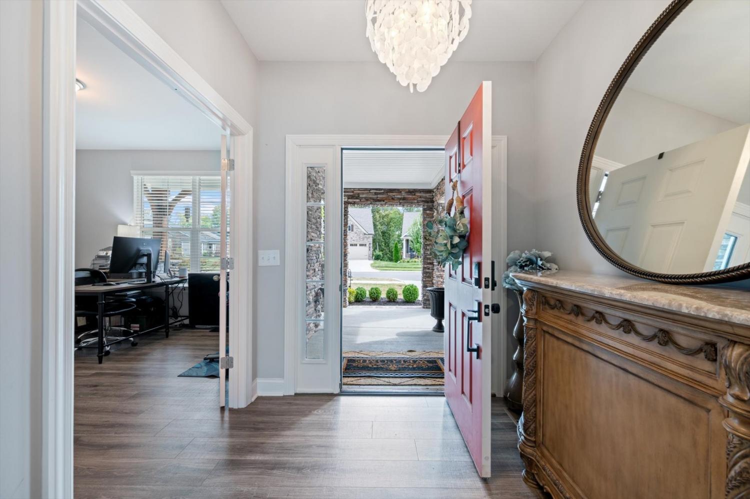 Beautiful 2022 home with pond views in the highly desirable River Oaks community! This well-designed home offers a flexible floor plan with a private office featuring French doors on the main level, perfect for working from home. The open-concept living area flows into a modern kitchen with granite countertops, a large island, and plenty of space for gathering and entertaining. The primary suite is conveniently located on the main level, offering a relaxing retreat with a spa-like bath featuring a soaking tub, separate shower, dual vanities, and a generous walk-in closet. Upstairs you’ll find three spacious bedrooms — including two connected by a Jack-and-Jill bath — all with walk-in closets. A large bonus room provides the perfect space for a media room, playroom, or home gym. Step outside to enjoy peaceful pond views from the back deck and watch local wildlife right in your backyard. River Oaks residents enjoy neighborhood amenities including a community pool, playground, and sidewalks. Conveniently located just minutes from Hwy 70, I-40, and Hwy 109, with easy access to shopping, dining, and historic downtown Lebanon.