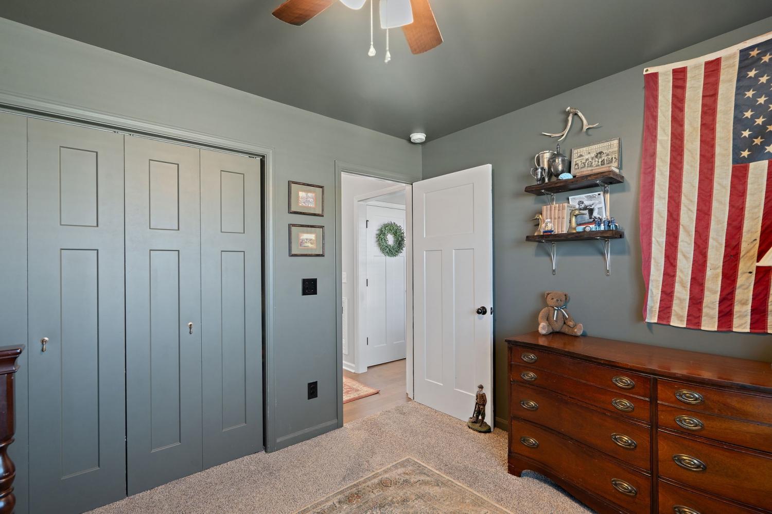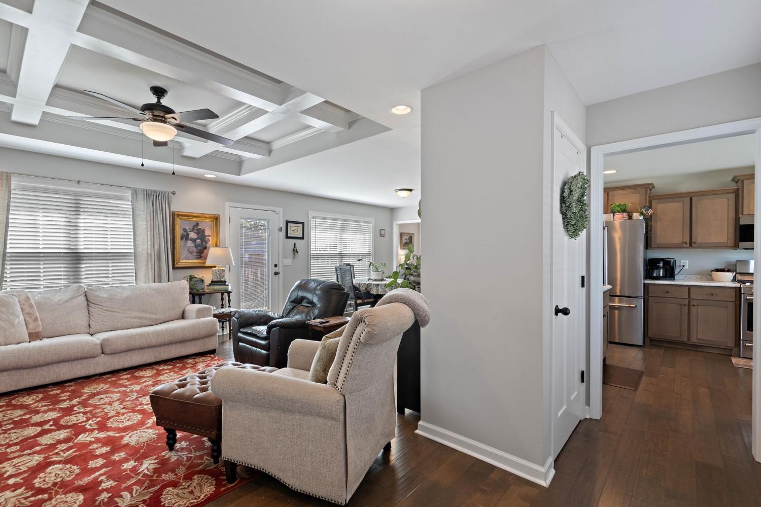 Charming, one-level home in a quiet neighborhood, featuring 3 bedrooms and 2 full baths and NO HOA! Enjoy your morning coffee on the cozy front porch, overlooking the desirable corner lot. Inside, the living room offers coffered ceilings with custom built in book cases. Beautiful hardwood floors flow throughout the main living areas. The kitchen features stainless steel appliances and a gas range. Step outside to a patio and fully fenced backyard, complete with a 12x24 shed, featuring two lofts and electricity- perfect for storage, hobbies or a workshop!