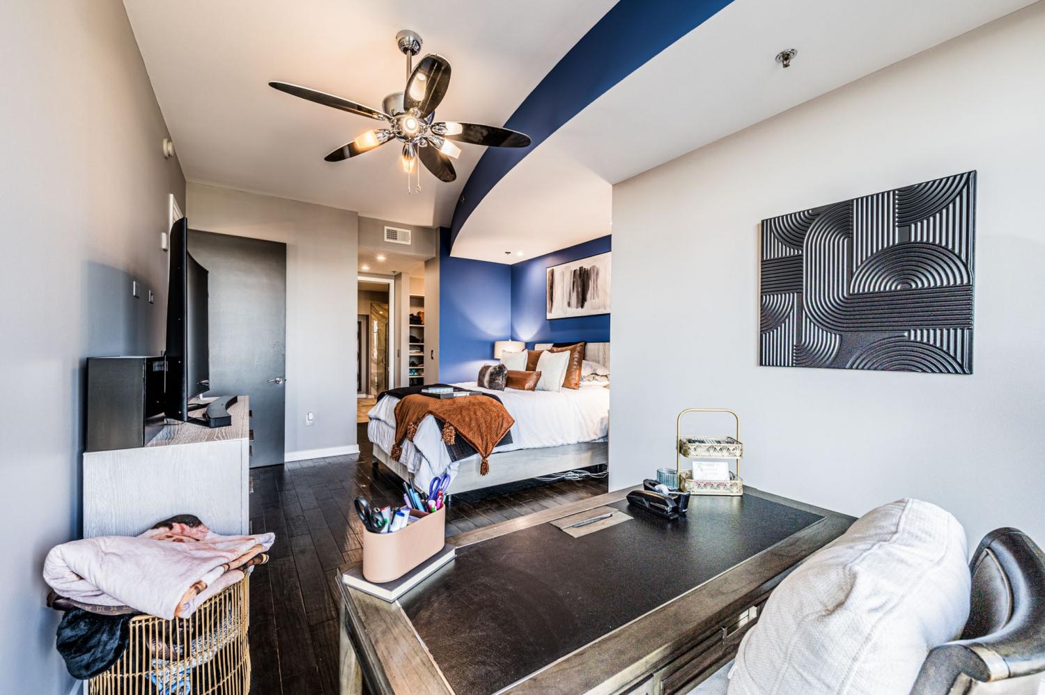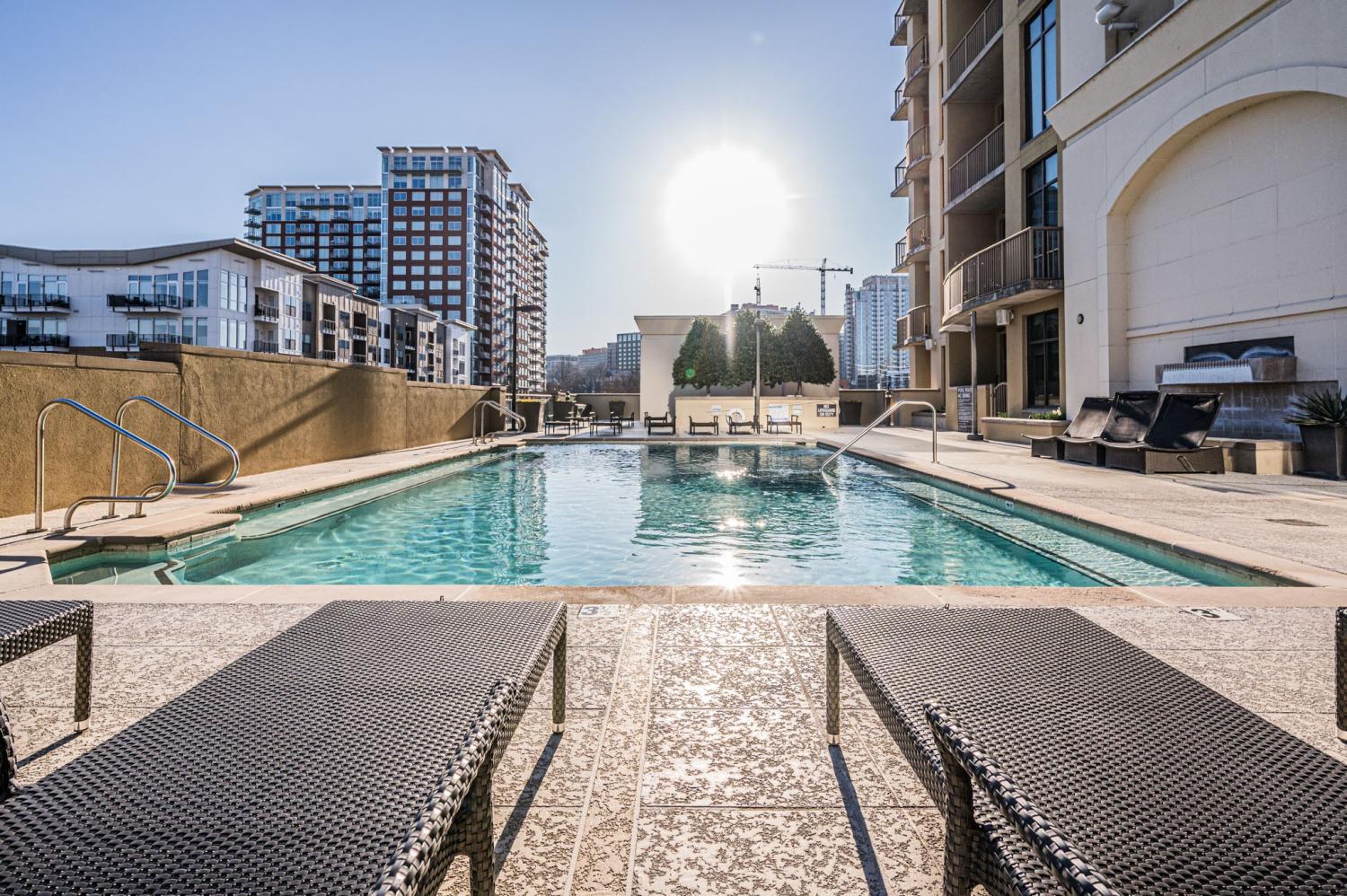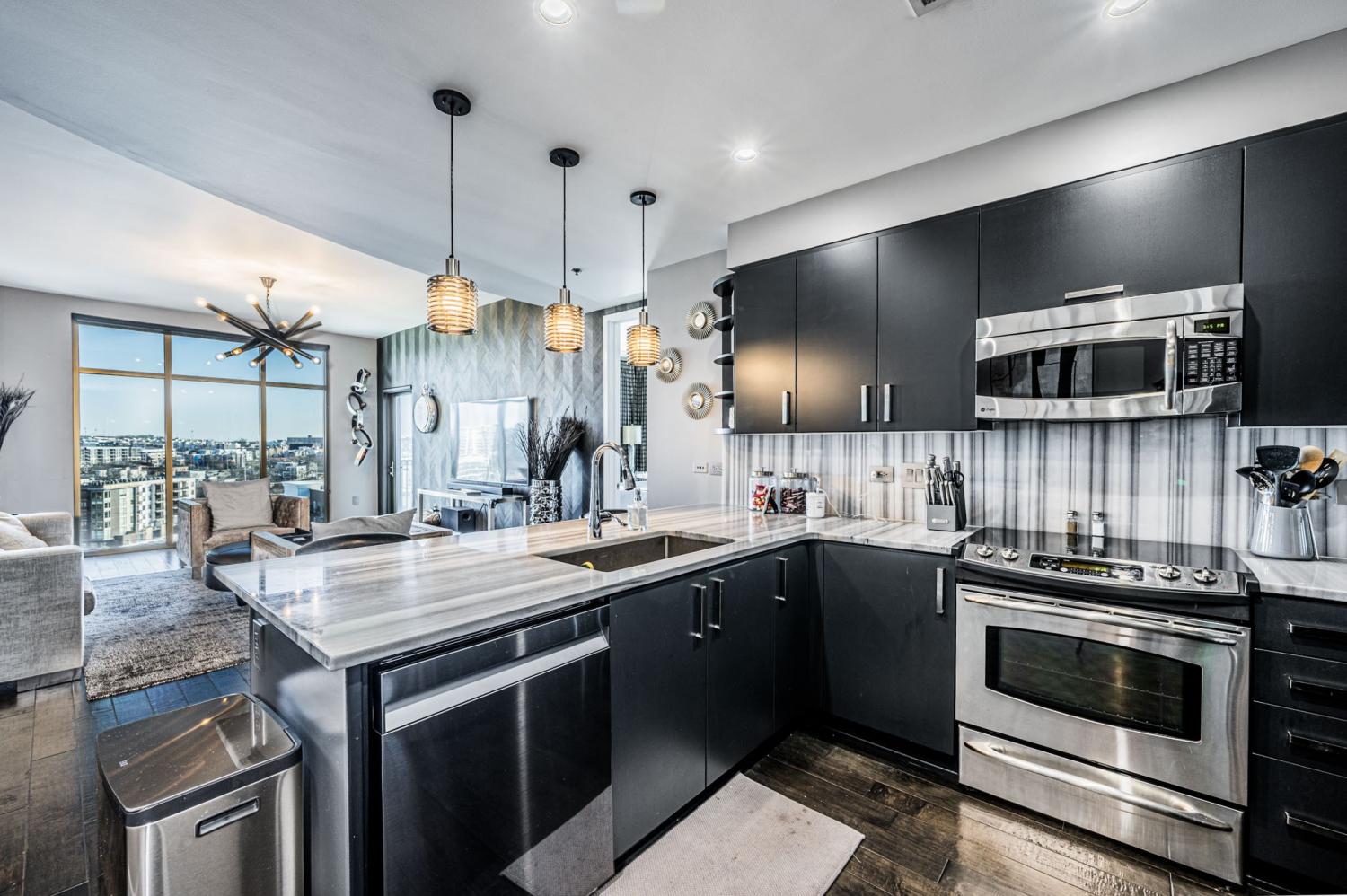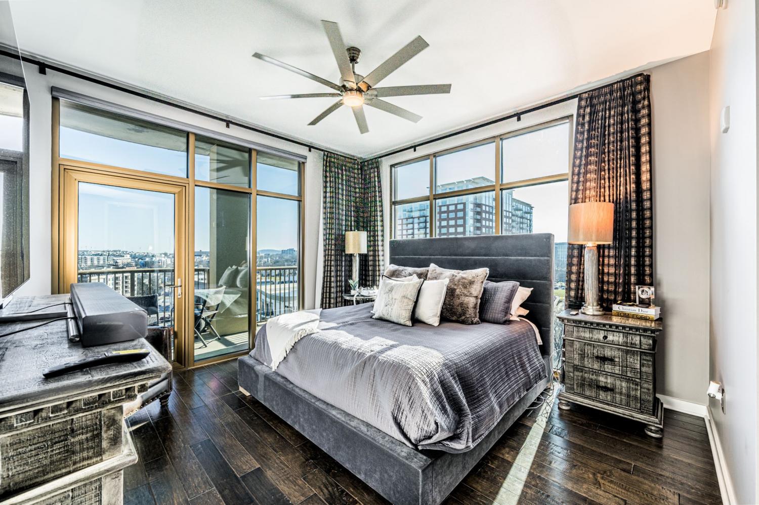 Welcome to unit 1212 at The Rhythm at Music Row! Nestled between The Gulch and Midtown, this prime location immerses you in a vibrant atmosphere filled with music, entertainment, dining, and more. Unit 1212 features approximately 1,878 square feet of luxurious living space, including two spacious primary bedroom suites, two dedicated parking spaces, and a convenient storage unit. Enjoy warm evenings on one of the two private balconies. The gourmet kitchen is a chef's dream, equipped with stainless steel appliances and stunning countertops. Each bedroom offers walk-in closets and en-suite baths, complete with beautifully tiled walk-in showers. Whole Foods Market is just a short distance away, along with a plethora of dining and entertainment options. Experience live music around the corner or venture downtown to enjoy the vibrant nightlife this city has to offer!