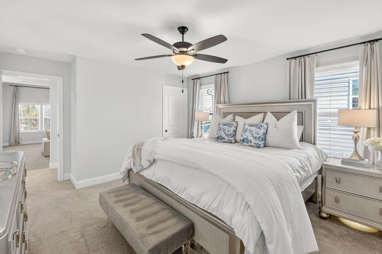 Welcome to this beautifully appointed home at 4049 John Marsh, where thoughtful design and elevated finishes come together for comfortable, stylish living. Featuring three bedrooms conveniently located on the main level, this home offers both functionality and ease of living. Step inside to find hardwood floors, soaring 11.5ft vaulted ceilings, an abundance of natural light that creates an open airy feel, upgraded lighting, & tasteful shiplap accents that add character. The primary bedroom showcases a one-of-a-kind walk through shower with a luxurious rain head system, & custom closet. The spacious bonus room and additional bedroom are upstairs. Storage is plentiful with two large walk-in storage areas. Relax on your screened in porch, entertain in your large backyard or enjoy the numerous amenities the neighborhood has to offer. Harvest Point has walking trails in the woods, catch & release pond, dog park, annual events, community gardens, weekly food trucks, playground, and pool to enjoy.