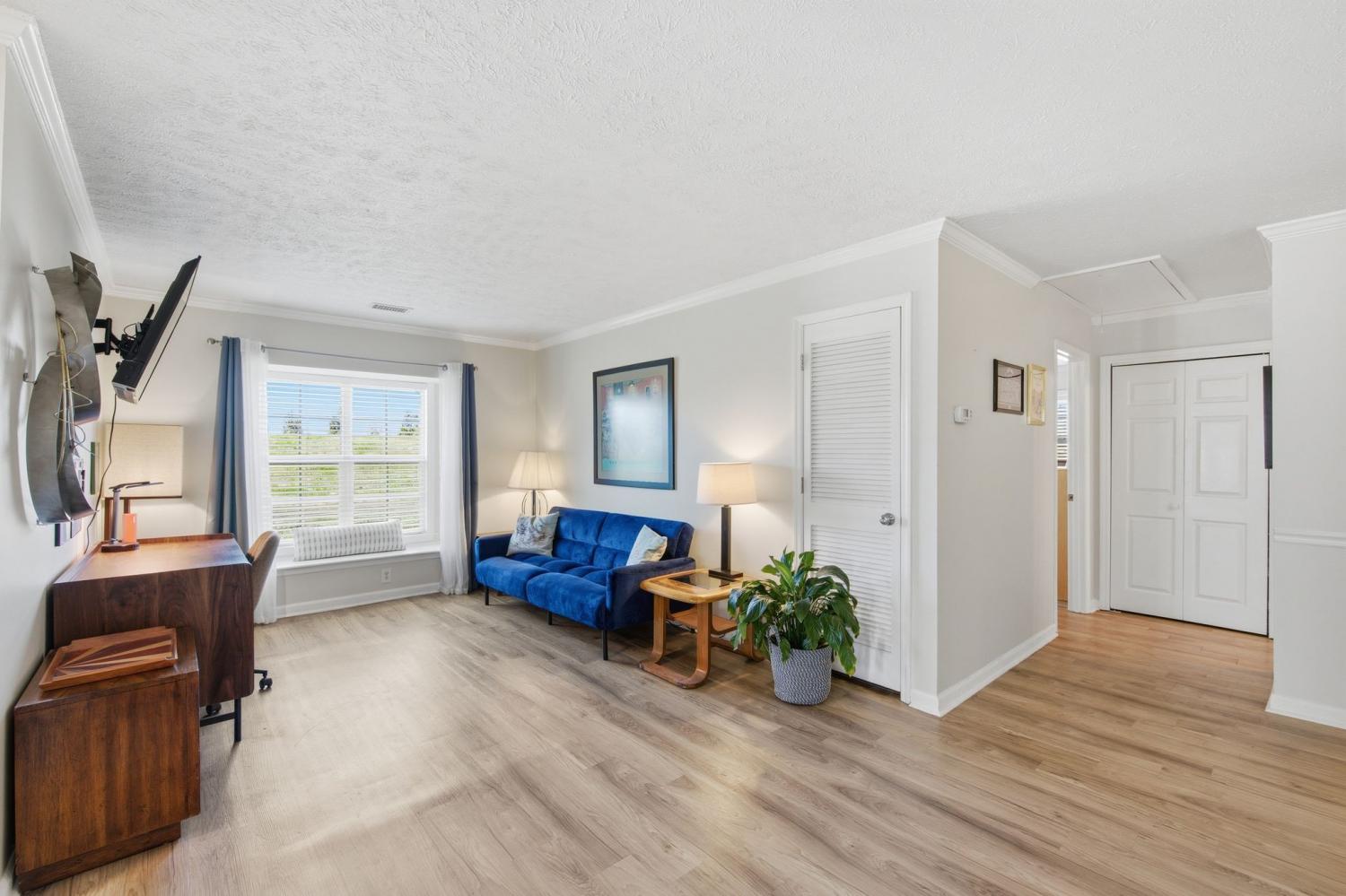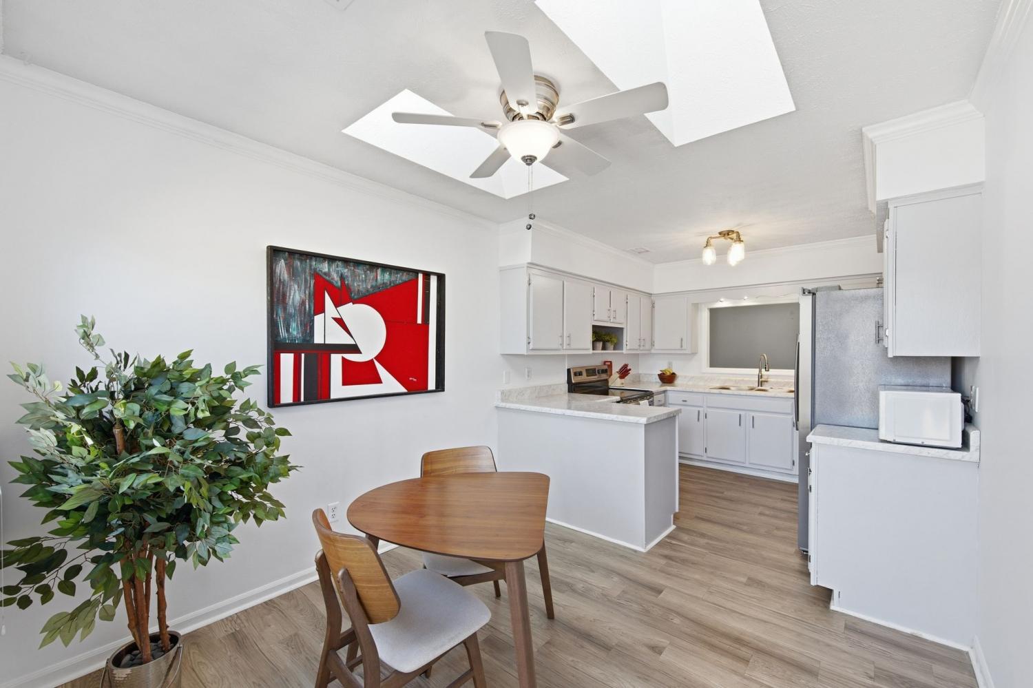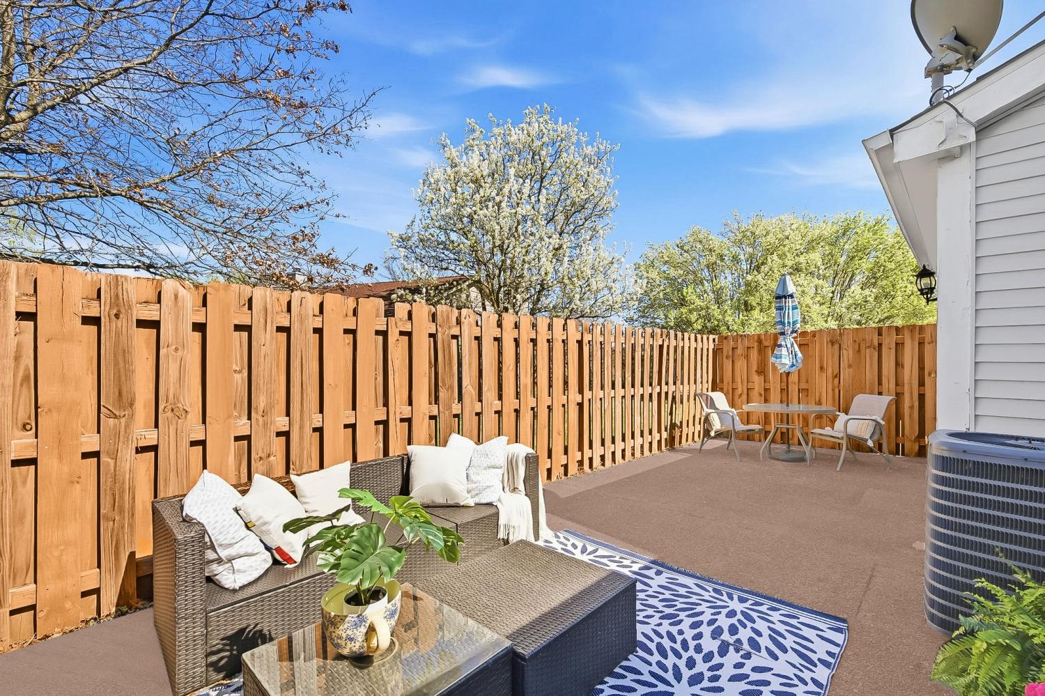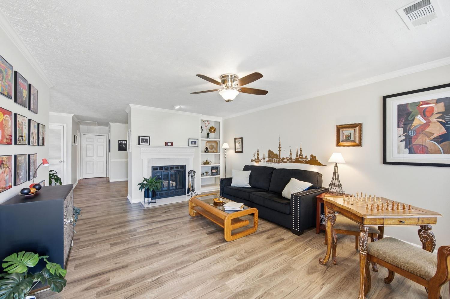 Rare Find: Affordable One-Level End-Unit! This is a great value opportunity for first time home buyers, investors or downsizers - this gem won’t be on the market long. Enjoy privacy and extra natural light in this cottage-style 2 bedroom/2 bath end-unit which boasts lots of windows, including two skylights in the kitchen, a pleasant window seat and a bay window where plants, people and pets will thrive. The spacious living areas are all on one level which feels like a detached home but without maintenance. Step into storybook cottage charm on the covered rocking-chair front porch then open the front door to an immaculate spacious living room with a cozy wood-burning fireplace. Besides the dining room, there is an additional flex room that could be used as an office, gaming room, workout space or all 3! Two bedrooms are located on opposite sides of the flex space for added privacy. The quaint newly updated kitchen boasts stainless appliances and offers a bar and eat-in table area. Out the back door you’ll find a fully fenced welcoming private patio that makes a pleasant haven for relaxing or entertaining. Abundant storage can be found in the floored attic space. For those who love to spend time outdoors there is a community pool, clubhouse and neighborhood sidewalks for your enjoyment, besides the two outdoor spaces this home offers. Pets and residents alike appreciate the tree lined friendly neighborhood atmosphere.