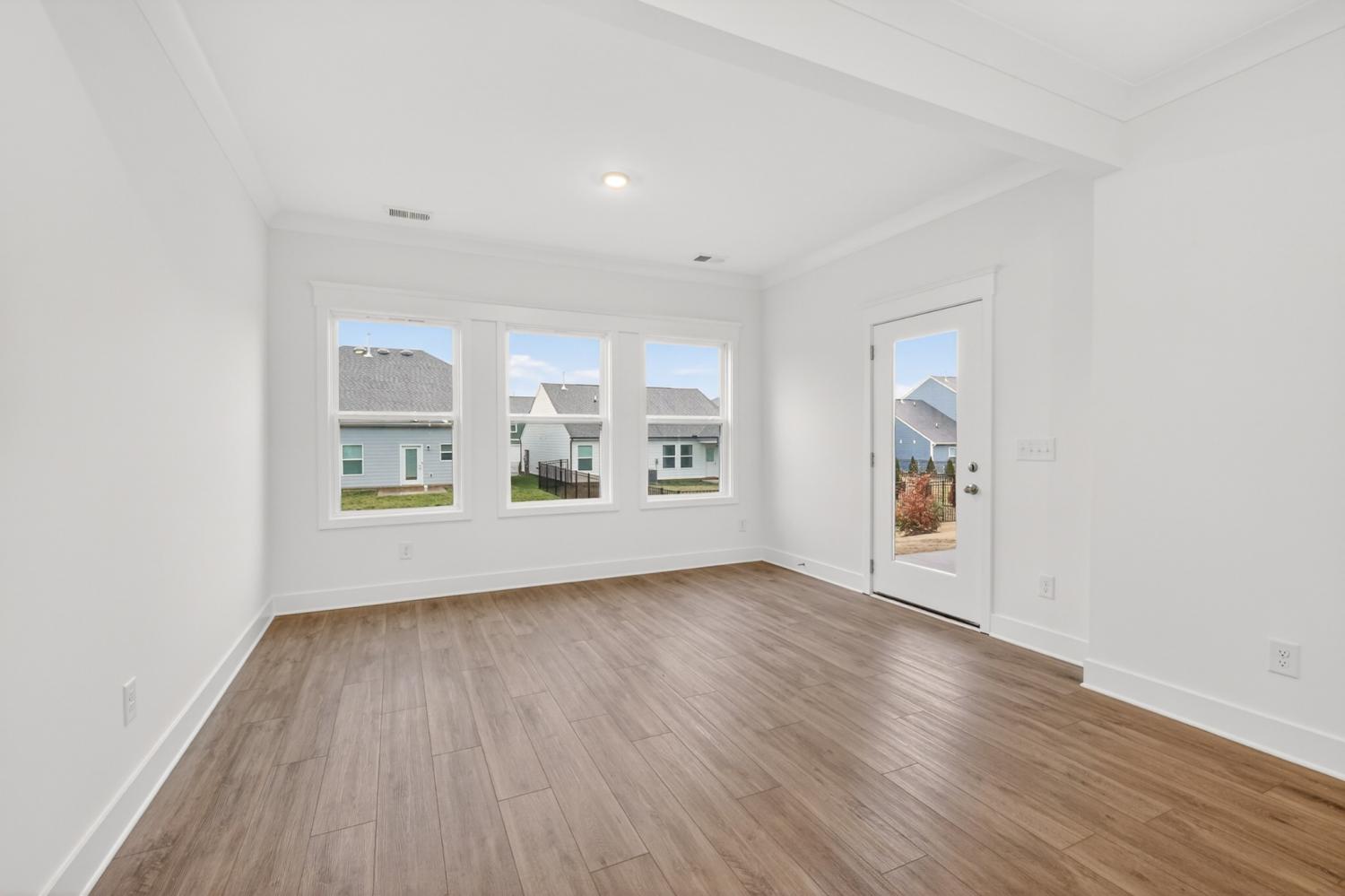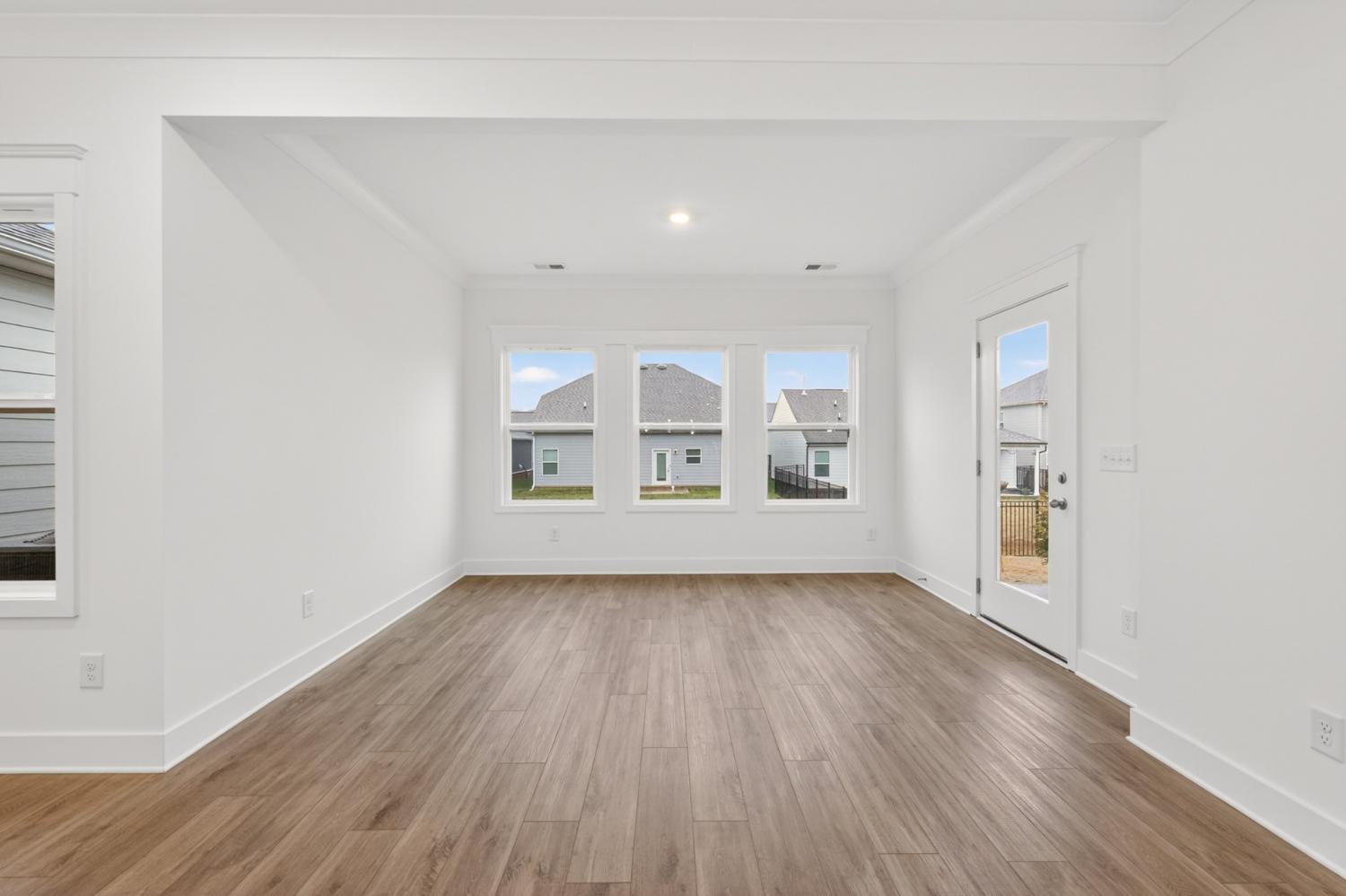 The Oxford Villa floorplan in our Dorris Farm community offers maintenance-free living! This beautifully designed home features 2 bedrooms, 2 full baths, a sunroom, and an open-concept kitchen, dining, and great room that flows together effortlessly. Interior selections by our Goodall Homes Design team include a light and bright kitchen with upgraded cabinets, countertops, and a stylish tile backsplash. The Owner’s Bath features an upgraded tile shower and quartz countertops, and the main living areas on the first floor include gorgeous hardwood flooring throughout. Located in Dorris Farm — Goodall’s newest community in White House — you’ll enjoy quiet surroundings, villa-style living, and easy access to I-65. Be sure to ask about our $10,000 closing cost incentive when using our preferred lender, Silverton Mortgage, and title company!