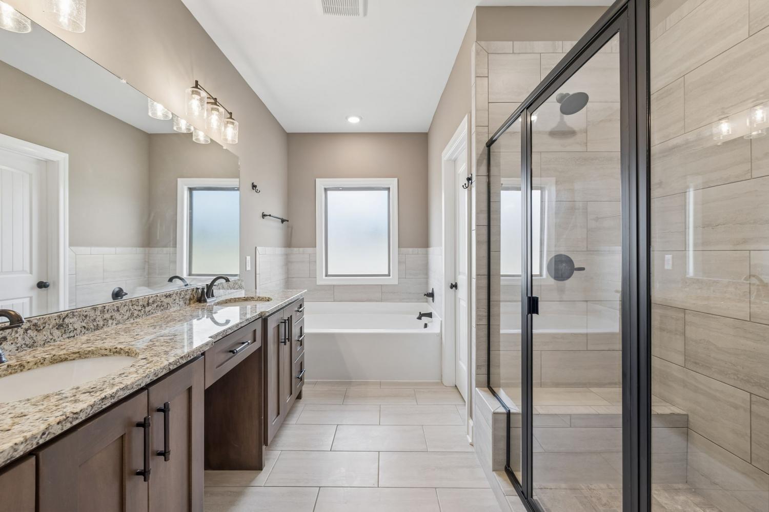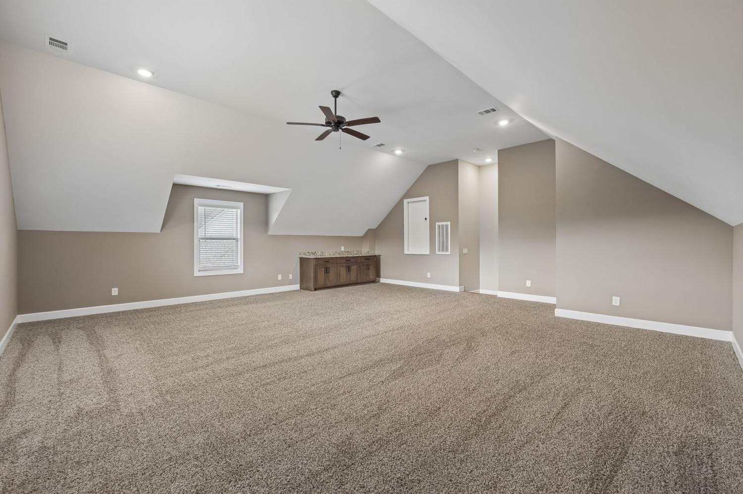 Beautiful home in Greenbrier with over 2,700 square feet and a prime location backing up to Pebble Brook Golf Course! This well-designed floor plan offers 3 bedrooms, 2.5 bathrooms, and multiple flexible living spaces. The open living room features gorgeous hardwood flooring, wood beams and a cozy gas fireplace, creating the perfect gathering space. The kitchen is equipped with granite countertops, stainless steel appliances, and plenty of cabinetry for storage. A designated entry foyer welcomes guests, while a dedicated office provides the ideal work-from-home setup. The spacious primary suite offers two walk-in closets, double vanities, a tiled shower, and a relaxing soaker tub. Secondary bedrooms are generously sized, and the home also includes a nice-sized utility room for added convenience. Upstairs you’ll find a huge bonus room, perfect for a media room, playroom, or additional living space. Step outside to enjoy the large, fenced in backyard with huge covered back porch, ideal for relaxing or entertaining while overlooking the golf course. Great layout, beautiful finishes, and plenty of room to spread out!