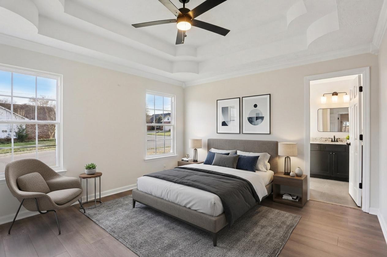 Welcome to 1147 Fitzpatrick Rd. This designer-updated 3 bedroom, 2 bathroom home offers 1,235 sq ft of stylish, move-in-ready living space on a .21 acre lot, with the big-ticket upgrades already handled including a new roof, new HVAC, and new water heater. Step inside to new LVP flooring and fresh lighting throughout, plus new tile in both bathrooms for a clean, modern finish. The kitchen is a standout with new shaker cabinets, quartz countertops, stainless steel appliances, and crisp black fixtures and hardware, giving you a bright, contemporary space that’s ready for everyday life and easy entertaining. Cozy up around the beautiful fireplace, then head out back to enjoy the wood deck, perfect for grilling, morning coffee, or relaxing evenings. The master bedroom is a true retreat featuring a walk-in closet and an en suite bath fully refreshed with new shaker cabinetry, new granite countertop, new lighting, new tile floors, and new black fixtures and hardware. Add in the convenience of an attached garage, and you’ve got a home that checks all the boxes. Located close to shopping, dining, and easy I40 access, this one makes commuting and weekend plans a breeze. Welcome home!