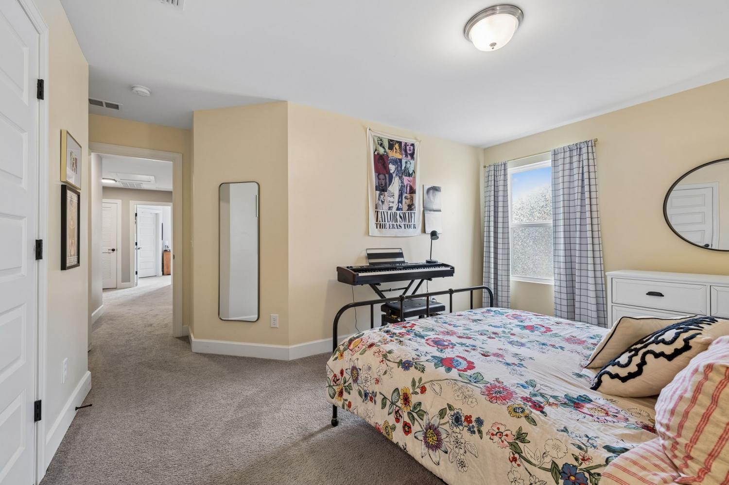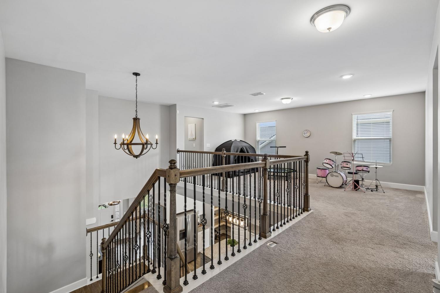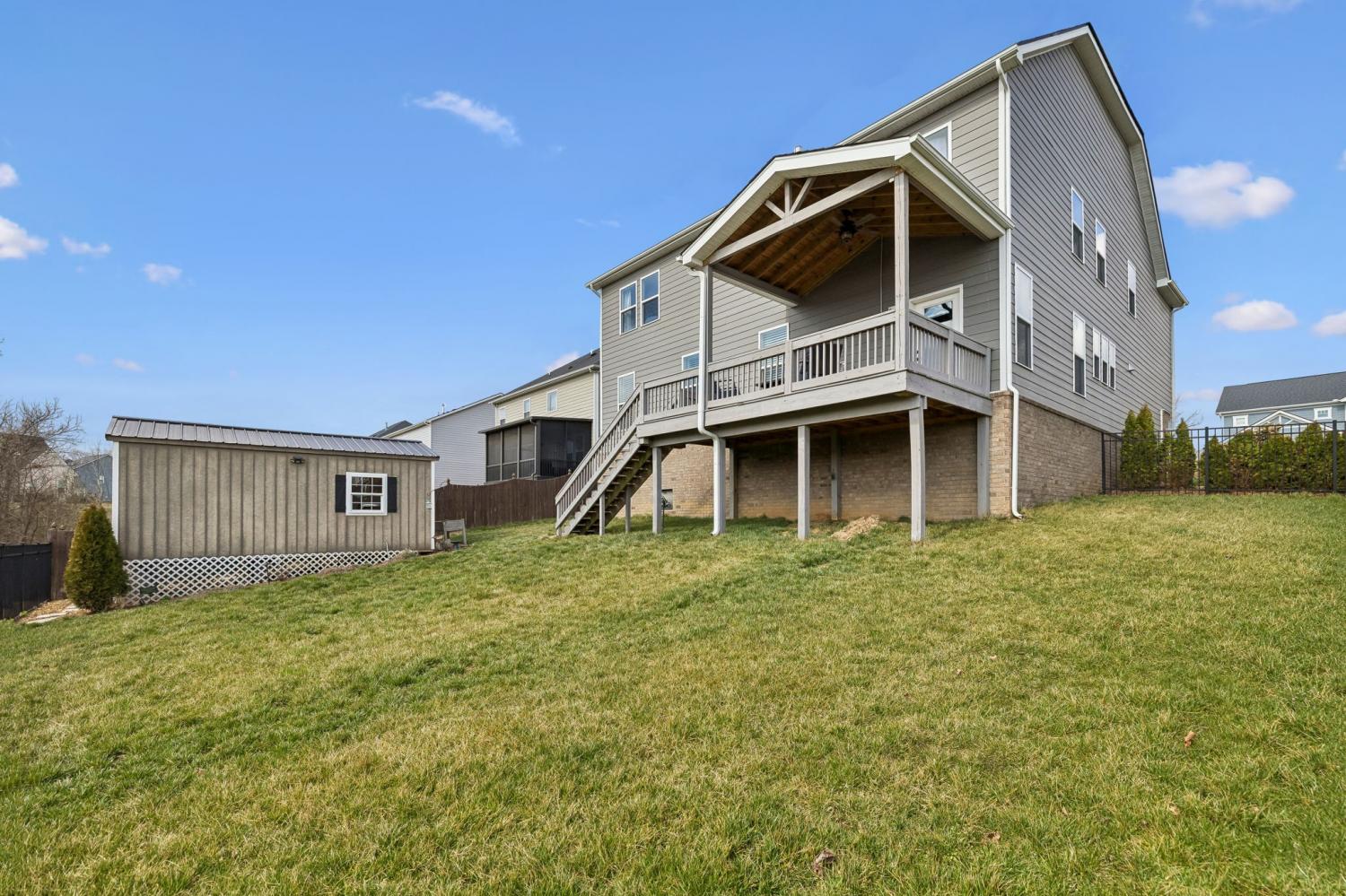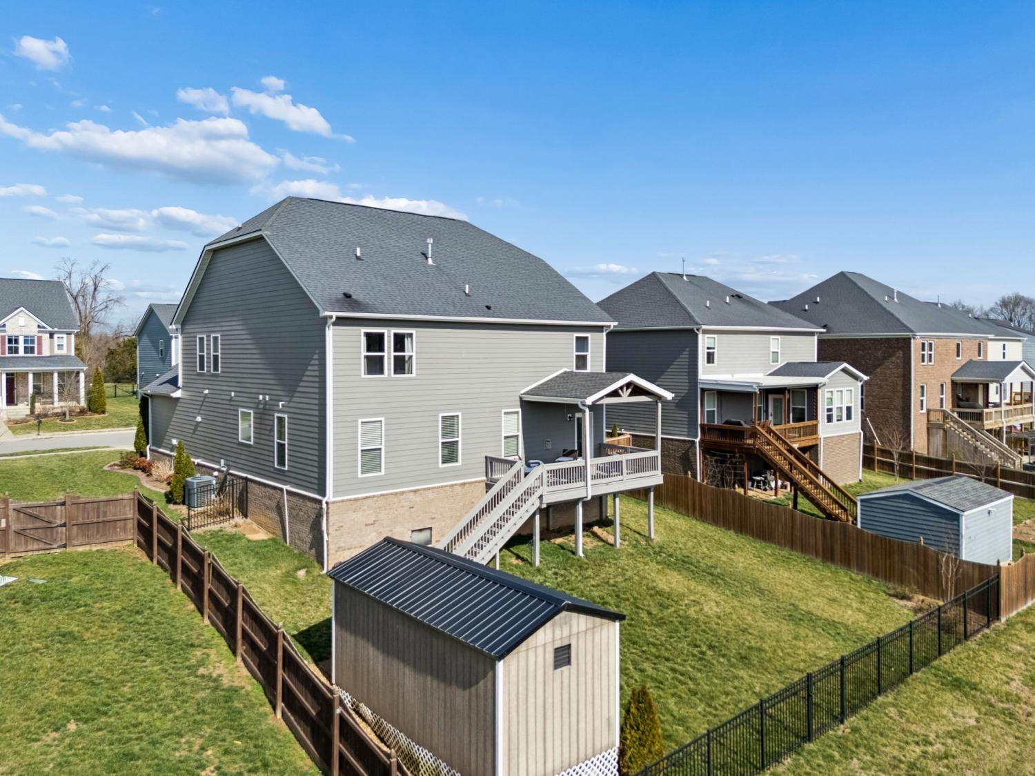 Welcome to one of the largest homes in Nichols Vale! Featuring 6 bedrooms, 4.5 baths, and almost 3,900 sqft for everyone to spread out! Thoughtfully designed with both comfort and style in mind, this home features two owner’s suites on each level, including a luxurious main-level retreat with a soaking tub, separate shower, double vanity with granite countertops, and a huge walk-in closet. The second owner’s suite upstairs includes a walk-in closet and private en suite bathroom, along with four additional bedrooms and a spacious loft providing flexible living space. The kitchen is a standout with extended upgraded cabinetry, granite countertops, a farmhouse sink, gas cooktop, and a large, custom walk-in pantry. Step outside to enjoy the covered deck with a gas hookup for grilling, perfect for entertaining or relaxing evenings. The backyard also features landscape and uplighting, an irrigation system, and a finished 10x20 shed with electricity for additional storage or workspace. The lot backs up to HOA green space, offering added privacy and peaceful views. Located just two blocks from the Nichols Vale community pool, clubhouse, and playground, this home offers an ideal blend of upgrades, space, and neighborhood amenities.