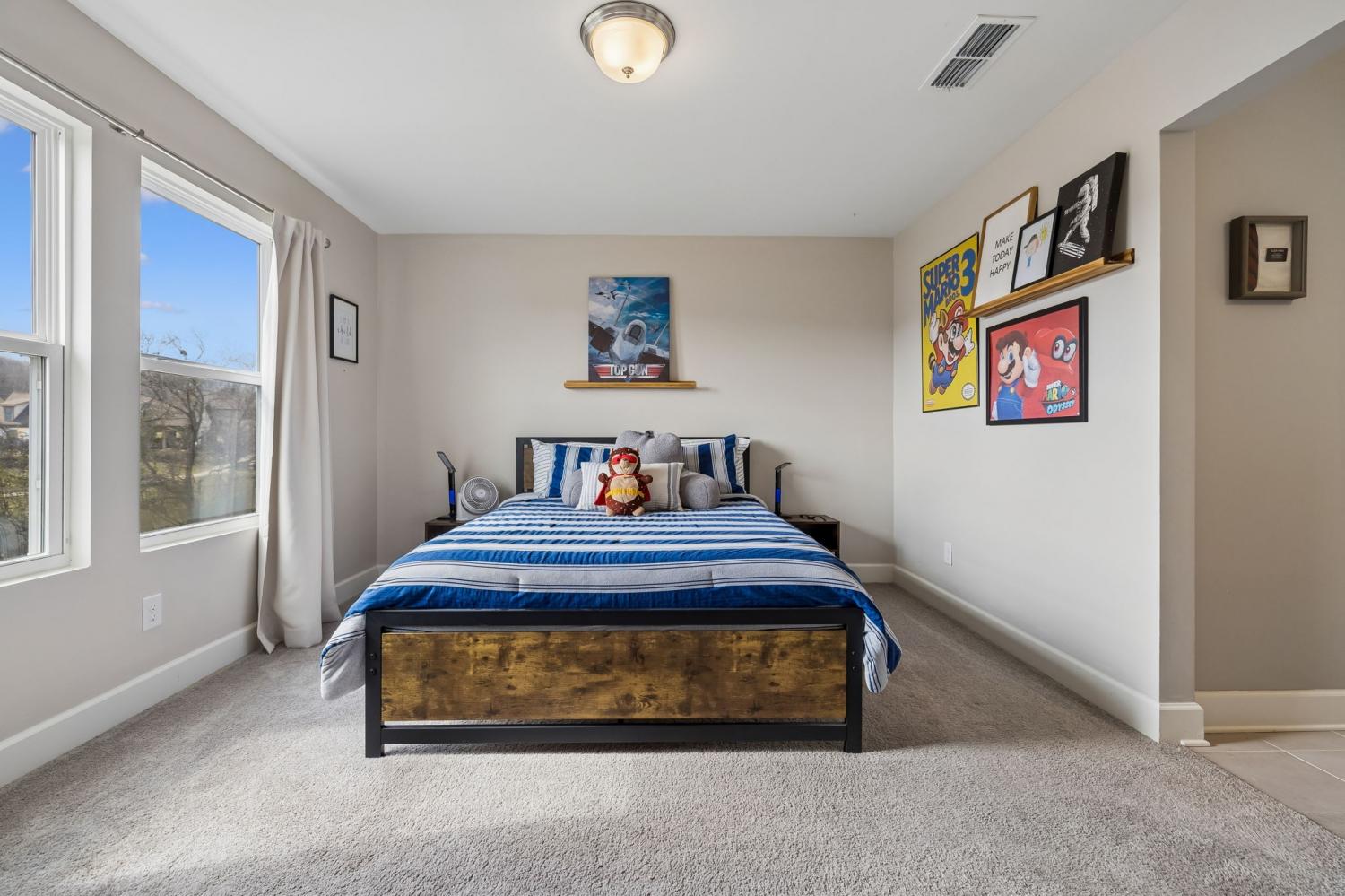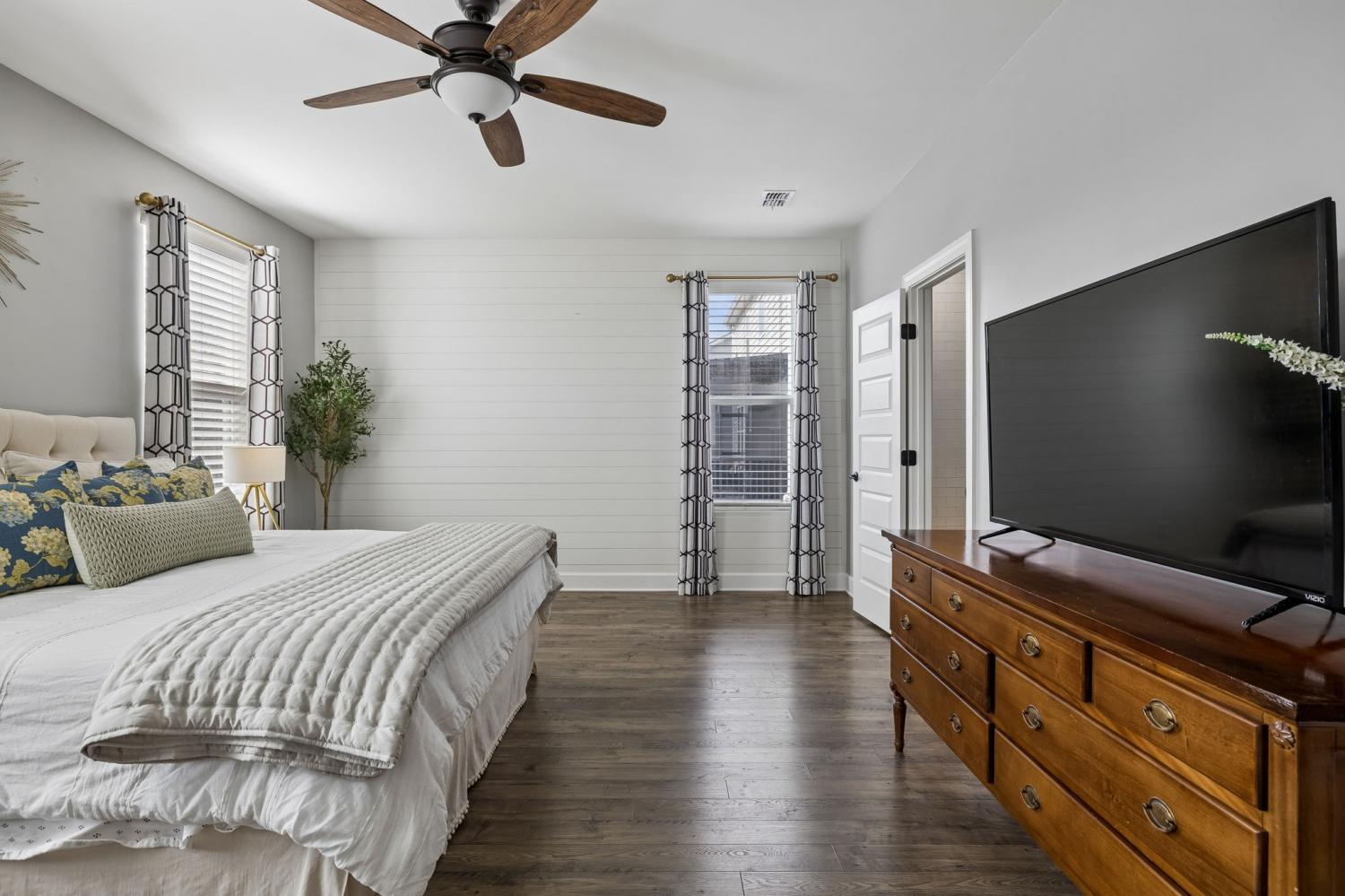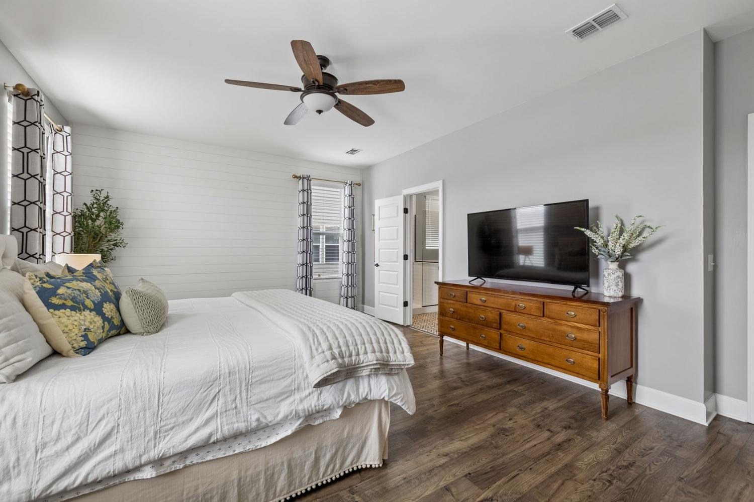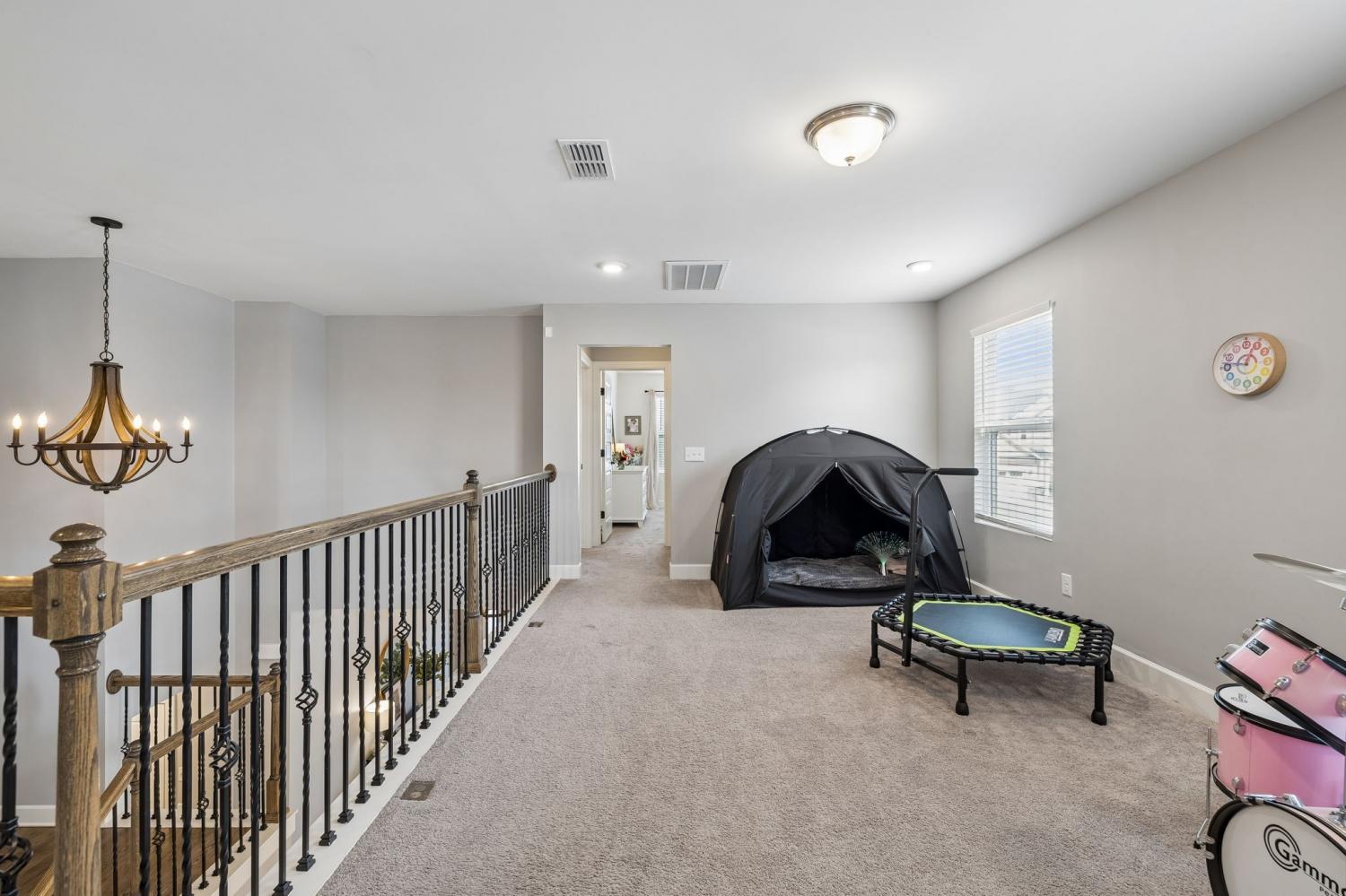 Welcome to one of the largest homes in Nichols Vale! Featuring 6 bedrooms, 4.5 baths, and almost 3,900 sqft for everyone to spread out! Thoughtfully designed with both comfort and style in mind, this home features two owner’s suites on each level, including a luxurious main-level retreat with a soaking tub, separate shower, double vanity with granite countertops, and a huge walk-in closet. The second owner’s suite upstairs includes a walk-in closet and private en suite bathroom, along with four additional bedrooms and a spacious loft providing flexible living space. The kitchen is a standout with extended upgraded cabinetry, granite countertops, a farmhouse sink, gas cooktop, and a large, custom walk-in pantry. Step outside to enjoy the covered deck with a gas hookup for grilling, perfect for entertaining or relaxing evenings. The backyard also features landscape and uplighting, an irrigation system, and a finished 10x20 shed with electricity for additional storage or workspace. The lot backs up to HOA green space, offering added privacy and peaceful views. Located just two blocks from the Nichols Vale community pool, clubhouse, and playground, this home offers an ideal blend of upgrades, space, and neighborhood amenities.