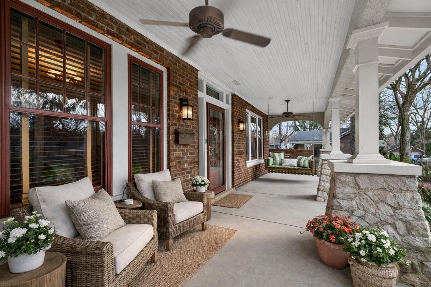 Nestled on a quiet, tree-lined dead-end street in the sought-after Barrow Court Historic District. This timeless 1940s Craftsman Bungalow blends historic character with some thoughtful updates. Offering almost 2500 square feet, the home features four bedrooms, two full baths, and a dedicated office, providing flexibility for everyday living or working from home. Once you are inside, the home welcomes you with a warm and inviting living room highlighted by original hardwood floors, a gas fireplace, marble fireplace mantel and classic built-in shelving that adds both charm and functionality. The adjacent study, also featuring custom built-ins, creates the perfect space for a library, office, or quiet retreat. The kitchen is both stylish and functional, complete with granite countertops, a charming butler’s pantry, and a sun-filled breakfast room just off the kitchen—an ideal spot for morning coffee or casual dining. Step outside to enjoy the private, shaded backyard, where mature trees provide a peaceful setting for outdoor entertaining, gardening, or relaxing evenings with friends and family. Located approximately one mile from Columbia’s historic downtown square, this home offers easy access to local boutiques, restaurants, live music, and community events. It is also within walking distance of the iconic Mule Day parade route, making it the perfect home for hosting friends and family after the festivities—complete with an inviting backyard and easy guest access. This is a rare opportunity to own a beautifully preserved piece of Columbia’s history in one of the city’s most beloved historic neighborhoods.