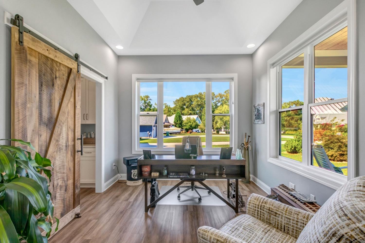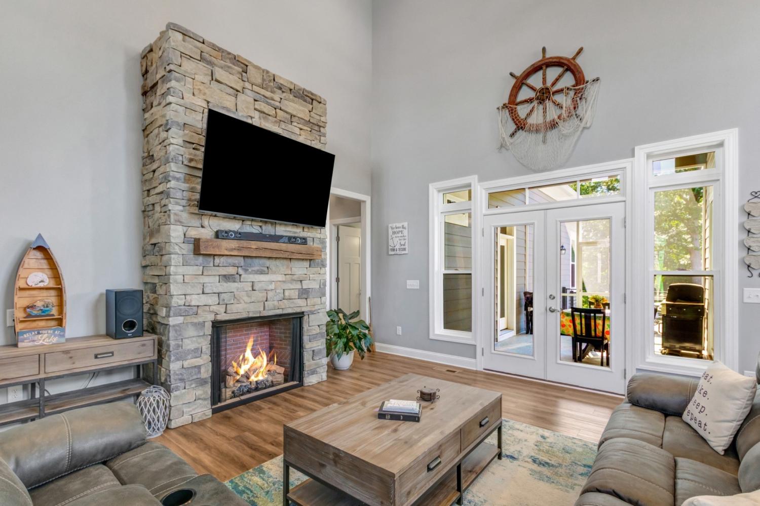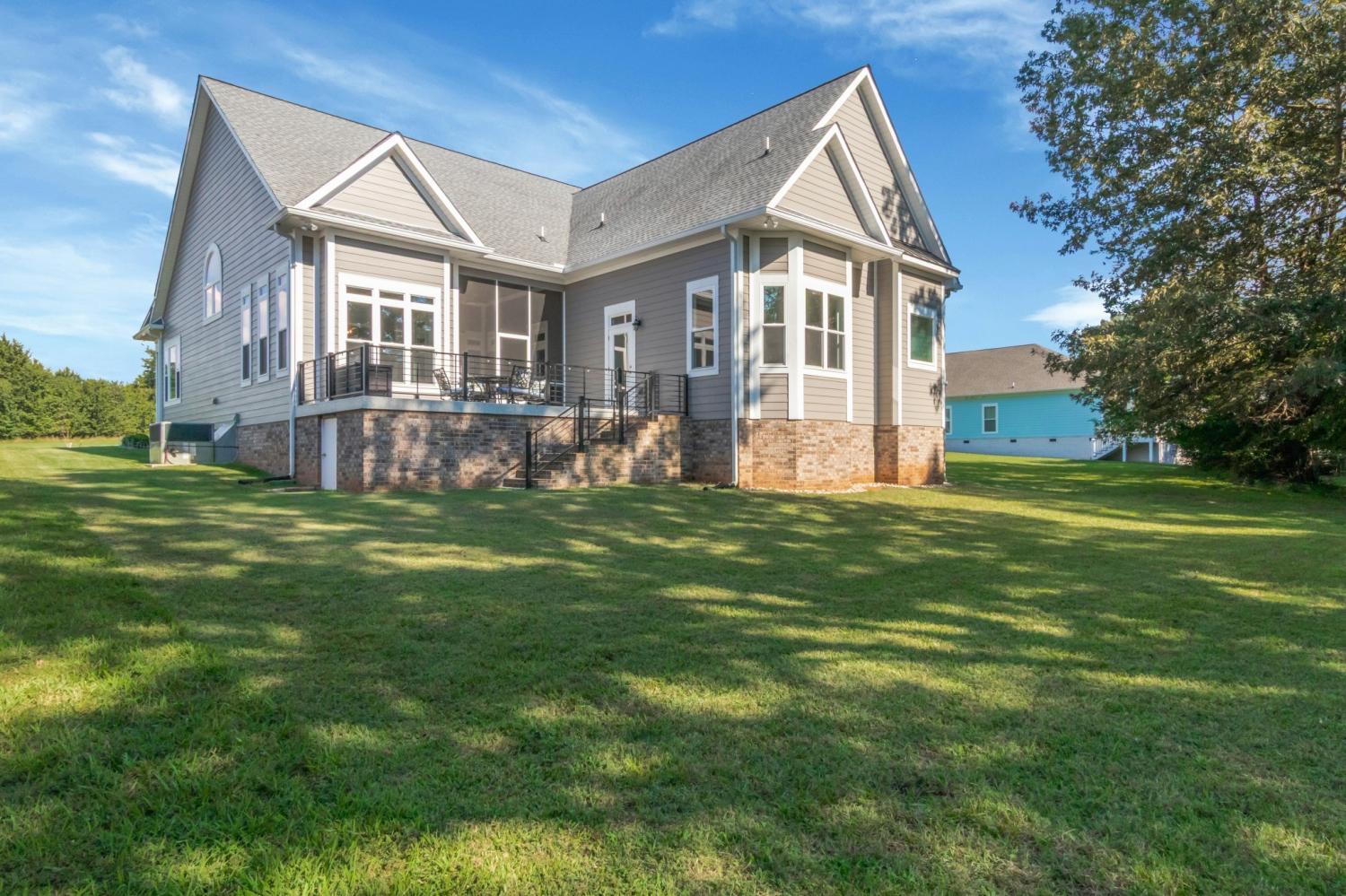 Welcome to your custom-built dream home on the water, with a community boat dock plus a boat slip. Extensive, detailed ceilings. Solid wood cabinetry with quartz tops and tile showers—primary suite on the main level with a large walk-in closet and entry door to the patio. Thoughtfully designed space with 2x6 construction and a large partially finished bonus room. Luxury vinyl plank and tile flooring. Covered porch, screened-in porch, and a large patio. Storage under the patio for lake toys and lawn equipment. Quick walk from the patio to the water, or a two-minute walk to the community boat dock and boat slip on Tim's Ford Lake—pictures taken in August 2025.