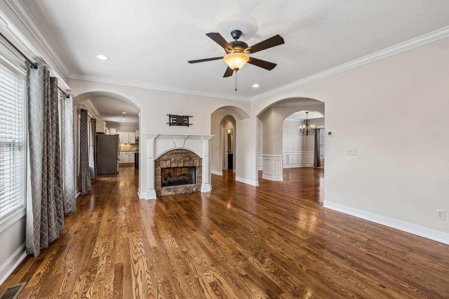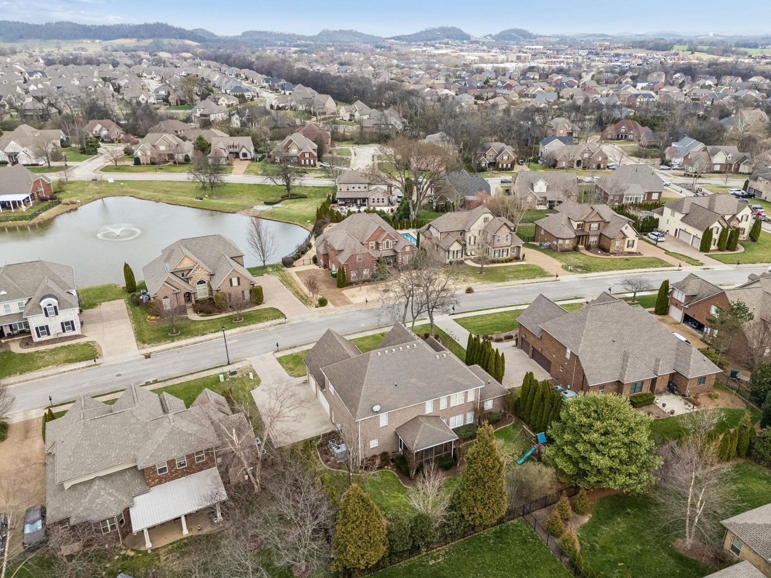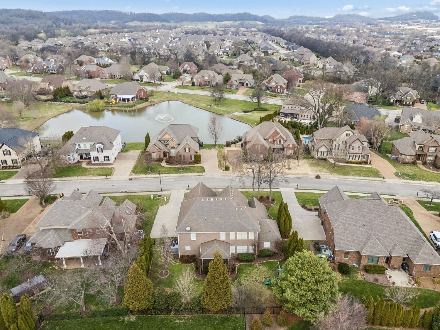 Up to $5,000 in closing costs with preferred lender! Nestled inside Autumn Ridge, one of Spring Hill’s most sought-after communities, this true custom-built home offers the space, style, and neighborhood charm you’ve been waiting for. Zoned for the Williamson County School system and located on a quiet, non-through street with a serene, front porch pond view, it’s the perfect blend of comfort, convenience, and a peaceful setting. Step into a spacious two-story foyer with sand-and-finish hardwoods throughout the entire main floor and the landing upstairs. Extensive, tasteful trim details are found throughout the home. The open kitchen features large counter space, a massive island, stainless appliances and a large walk-in pantry. All appliances including the refrigerator, washer and dryer remain. A nearby utility room includes cabinetry, counter space, and a built-in sink for functional ease. The kitchen flows into the breakfast area and living room, joined by a two-sided fireplace that adds warmth and character. Upstairs you will find a blank canvas with fresh neutral paint. There is a flexible den, study, library, media room, or something else, you choose! This offers space for work, hobbies, or a quiet retreat. Down the hall, you'll find a connected 2 part bonus room. A wet bar sits on the upper landing area of the room with a a step-down area that feels like its own private retreat - perfect for movie nights, entertaining, a guest area, or creative flex space. Bedrooms 2 and 3 share a Jack & Jill bath, while Bedroom 4 includes a private hobby room. Outside, enjoy mature landscaping, outdoor lighting, full irrigation, and a screened porch overlooking more gorgeous landscaping and your private backyard. A 3-car garage, generous storage, and custom closets throughout complete the home. Community amenities include a pool, clubhouse, fishing pond, neighborhood events, and what many call the best fireworks display in Spring Hill. Come see this one today!