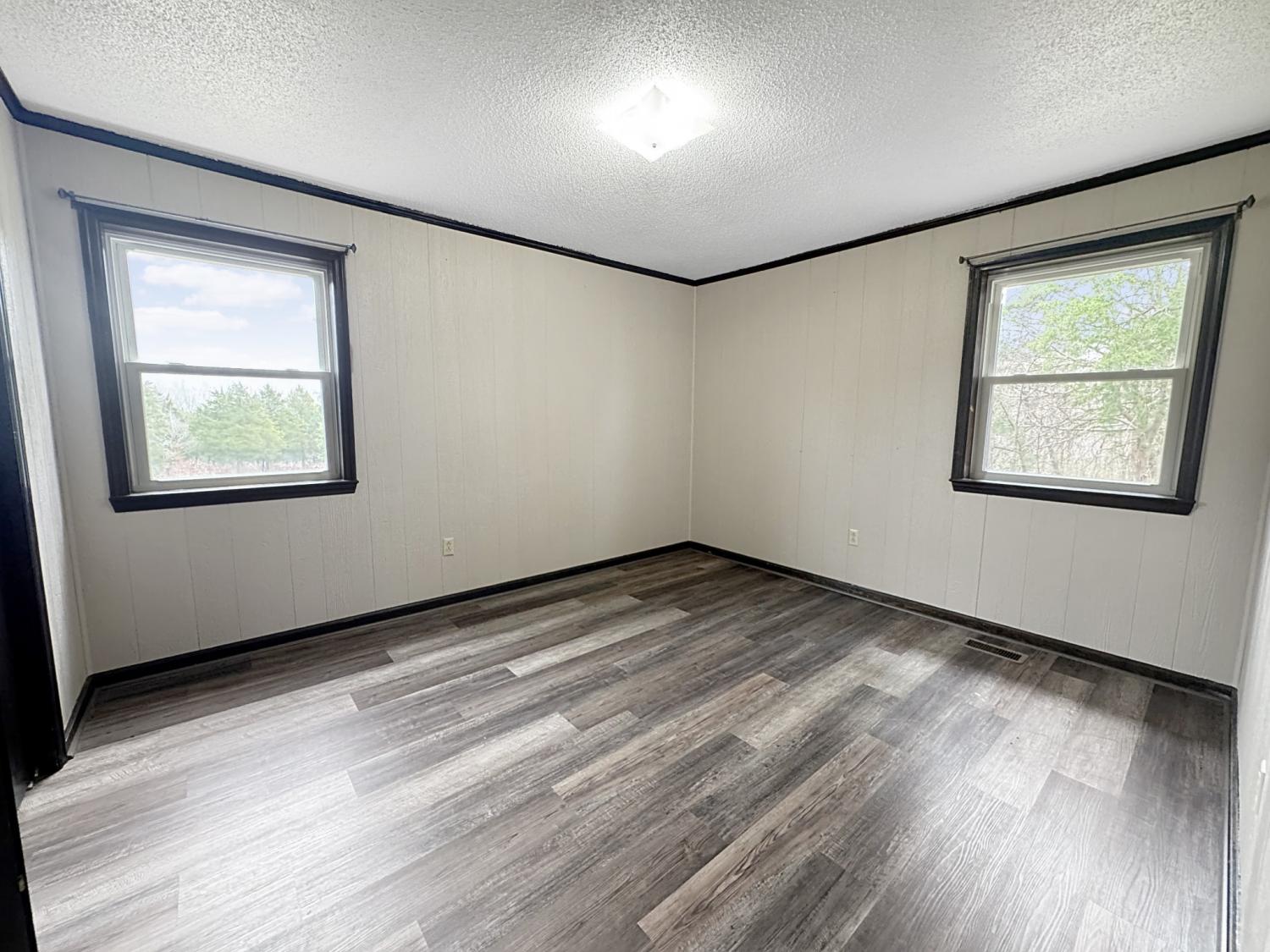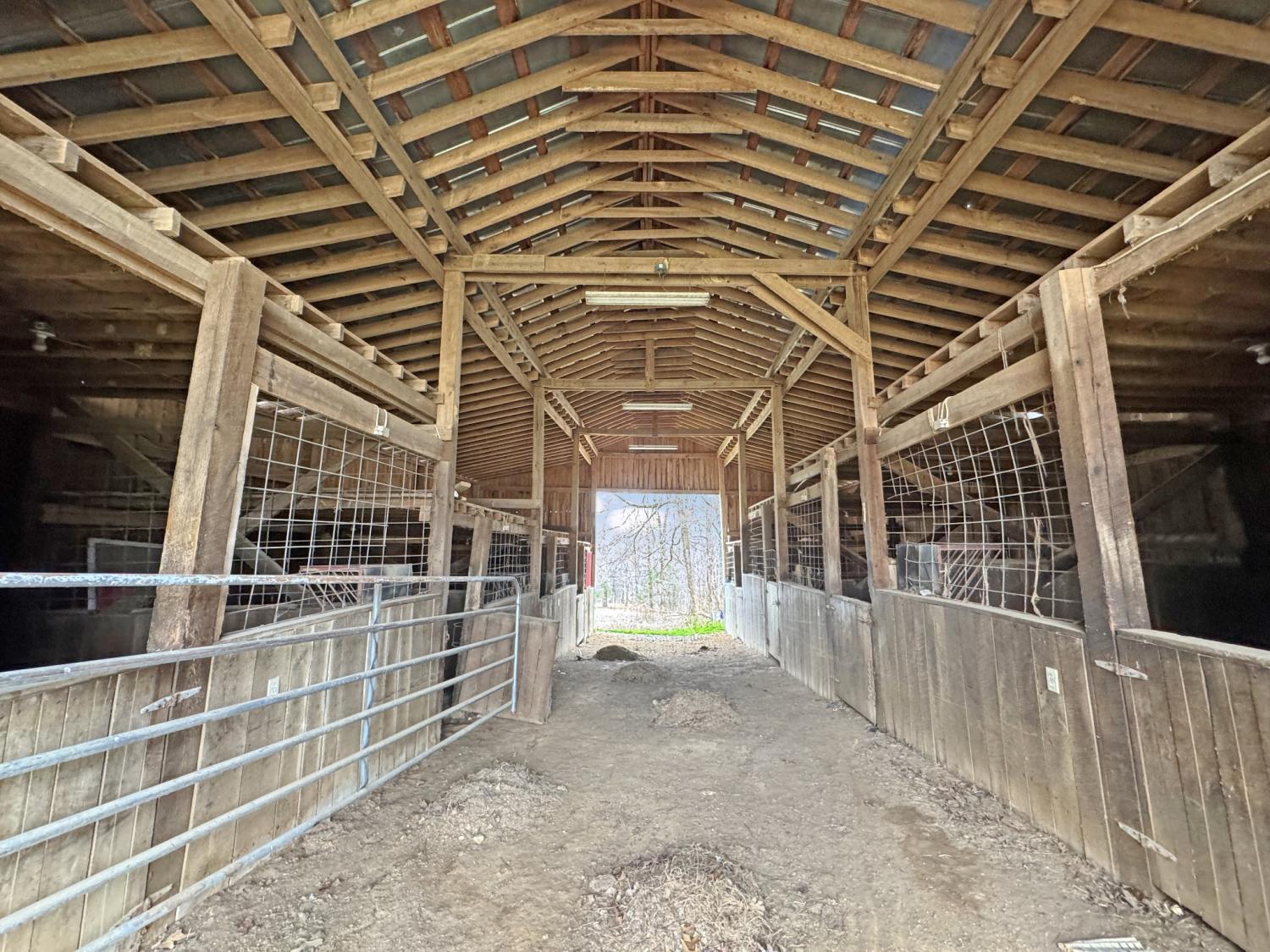 Charming Move-In Ready Home w/Barn! Situated on 2.8 mostly level lot with a gentle slope toward the back, offering plenty of open space. A circular driveway wraps behind the home, providing easy access and convenient parking. The main level features 3 bedrooms and 1 full bath, along with a spacious country-style eat-in kitchen complete with built-in stove, built-in range, and refrigerator that will convey with the property. The living room provides a comfortable gathering space, and much of the home features brand new laminate flooring. A full unfinished basement offers additional storage and expansion potential and already includes a bathroom with a tub/shower combo. The basement also houses a wood-burning furnace and newer hot water heater. Outside, the property is well suited for those wanting extra space or hobby farm potential. You'll find an 8-stall barn with two additional storage rooms featuring concrete floors, plus covered overhangs on both sides for equipment, hay, or additional storage. A small pond adds to the charm of this beautiful country property.