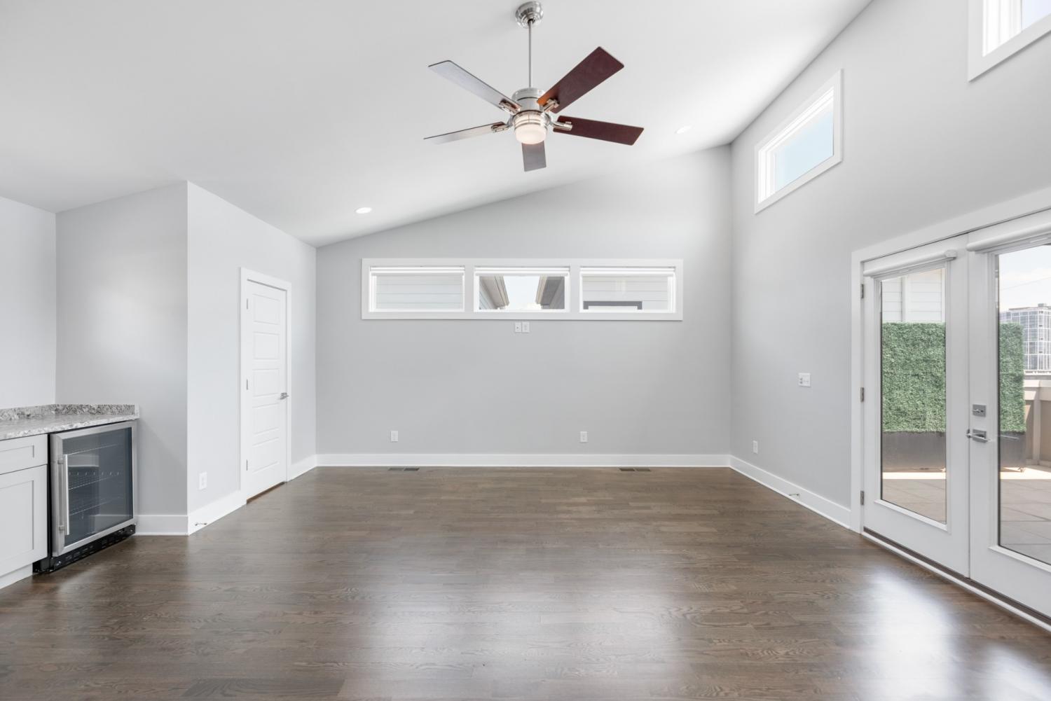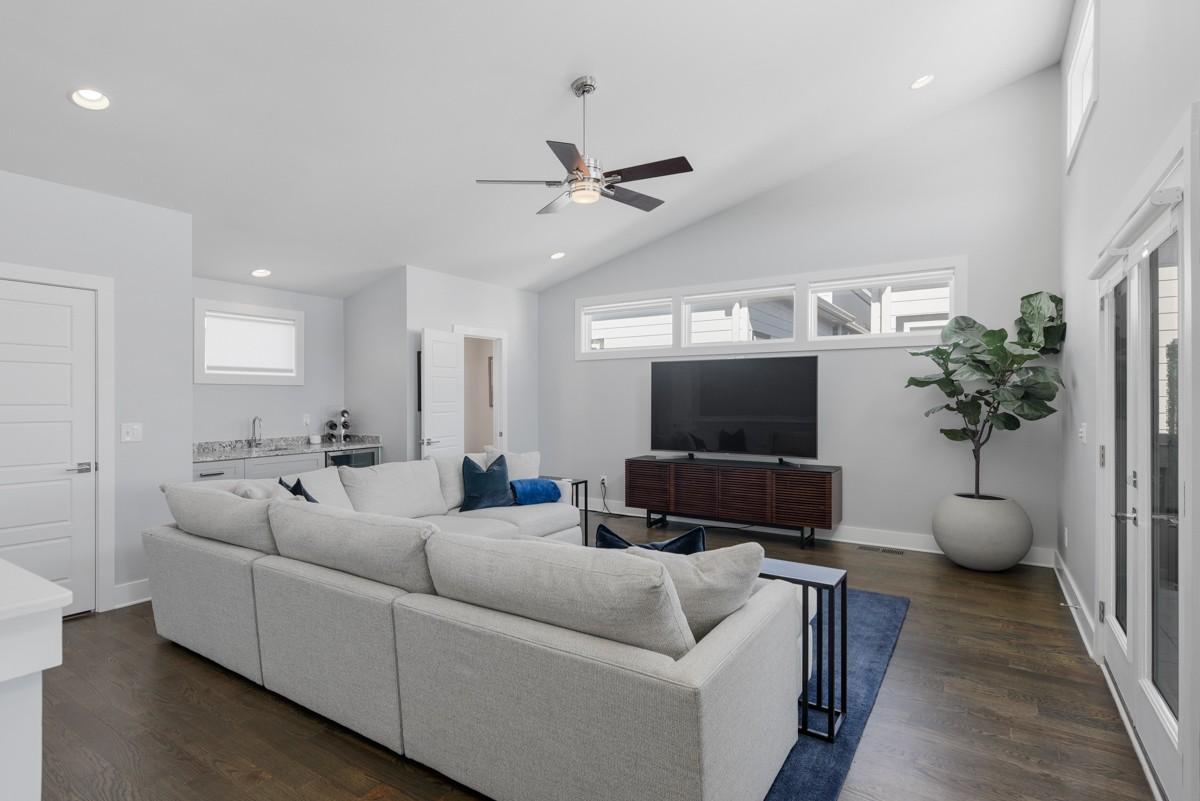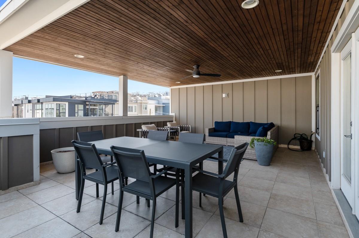 One of the most sought-after floorplans in Gulch View, offering soaring ceilings, wide hallways, and skyline views just steps from the Gulch and downtown Nashville. The open-concept main level is filled with natural light and features hardwood floors, a sleek modern fireplace, and seamless flow for everyday living or entertaining. The kitchen is both stylish and functional with quartz countertops, stainless appliances, pantry, designer lighting, and detailed tilework. A rare fenced backyard provides private outdoor space: perfect for pets, grilling, or a quiet morning coffee, an uncommon feature this close to downtown. Upstairs, the spacious primary suite includes double closets and a private balcony retreat. The top level offers exceptional flexibility with a large fourth bedroom or bonus room that opens to an expansive covered rooftop deck, an ideal setting for entertaining, relaxing, or enjoying Nashville’s skyline views. Located in the heart of one of Nashville’s most walkable neighborhoods, Gulch View offers quick access to restaurants, shopping, music venues, and downtown offices. Seller is motivated.