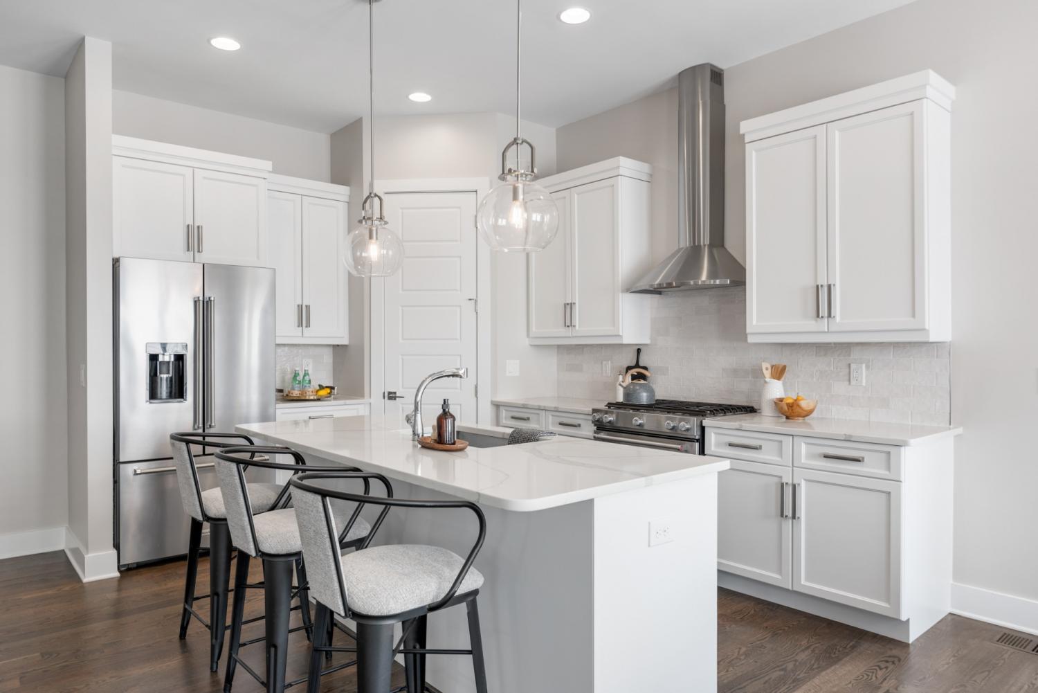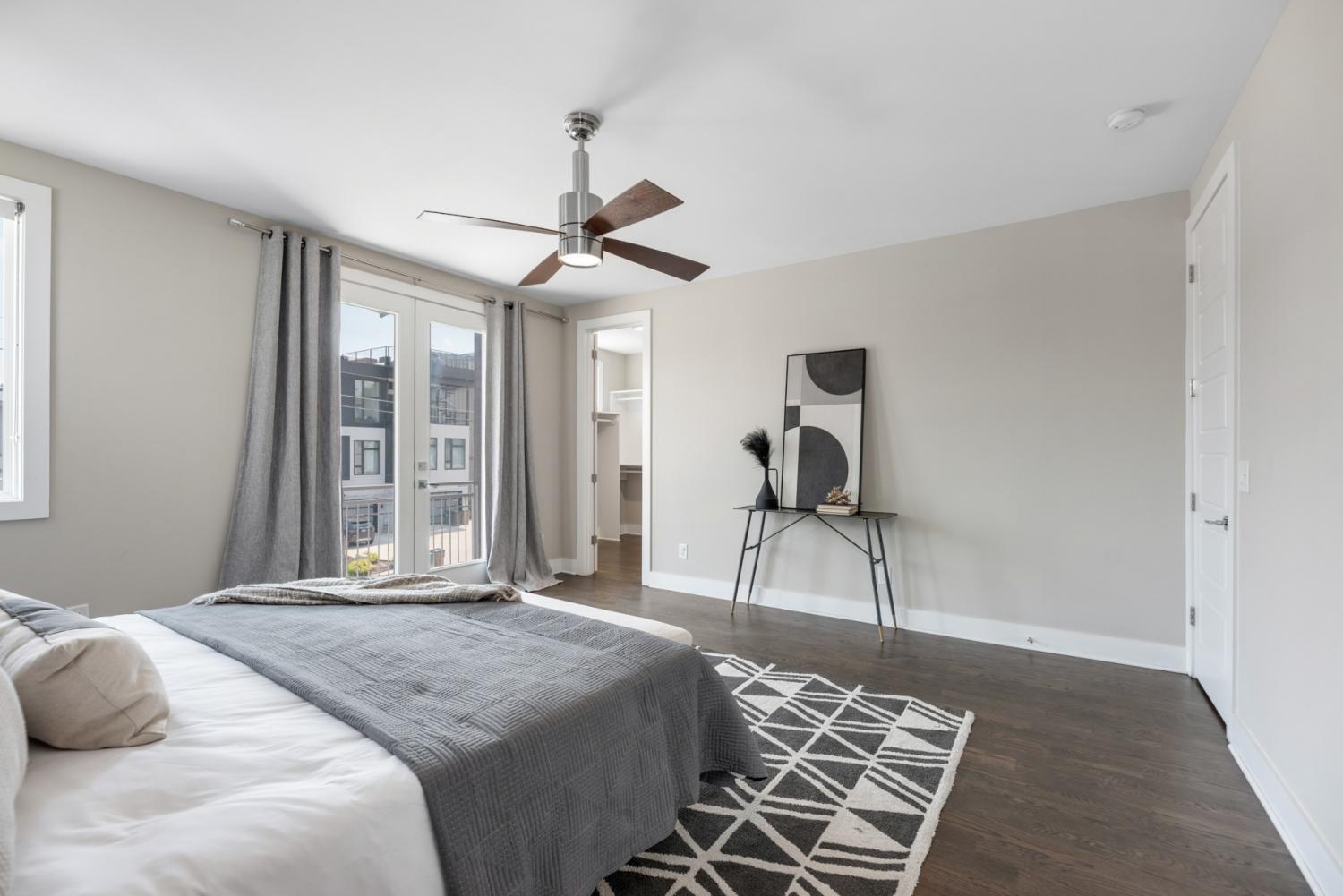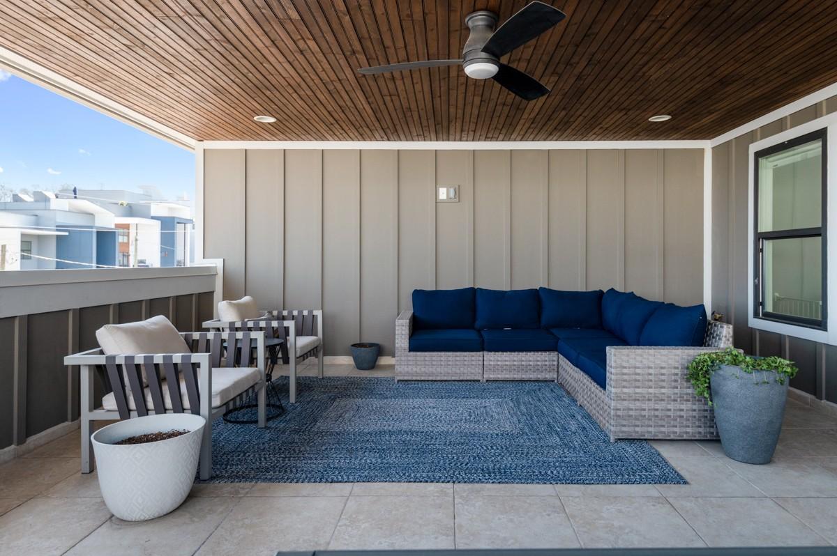 One of the most sought-after floorplans in Gulch View, offering soaring ceilings, wide hallways, and skyline views just steps from the Gulch and downtown Nashville. The open-concept main level is filled with natural light and features hardwood floors, a sleek modern fireplace, and seamless flow for everyday living or entertaining. The kitchen is both stylish and functional with quartz countertops, stainless appliances, pantry, designer lighting, and detailed tilework. A rare fenced backyard provides private outdoor space: perfect for pets, grilling, or a quiet morning coffee, an uncommon feature this close to downtown. Upstairs, the spacious primary suite includes double closets and a private balcony retreat. The top level offers exceptional flexibility with a large fourth bedroom or bonus room that opens to an expansive covered rooftop deck, an ideal setting for entertaining, relaxing, or enjoying Nashville’s skyline views. Located in the heart of one of Nashville’s most walkable neighborhoods, Gulch View offers quick access to restaurants, shopping, music venues, and downtown offices. Seller is motivated.