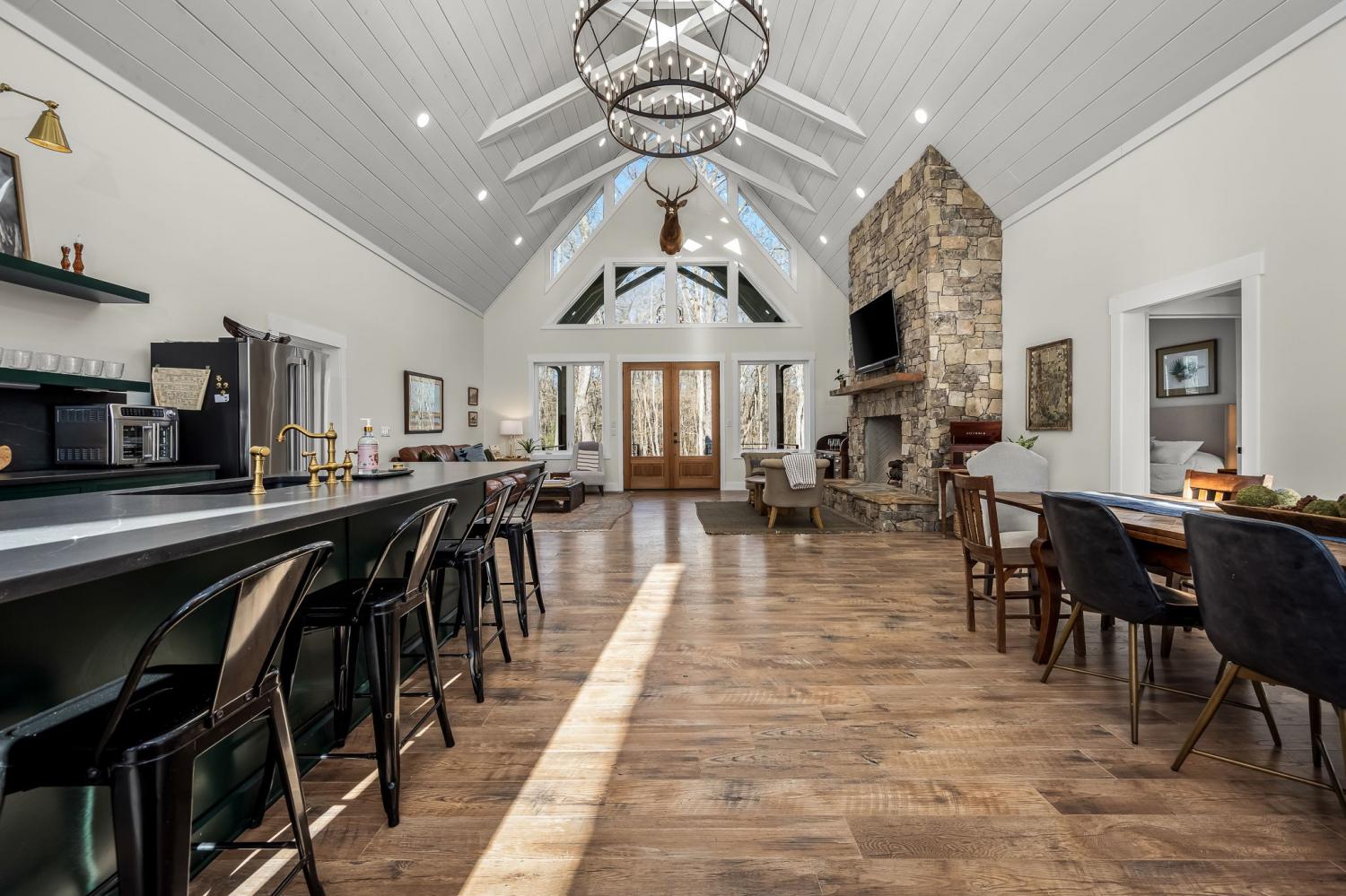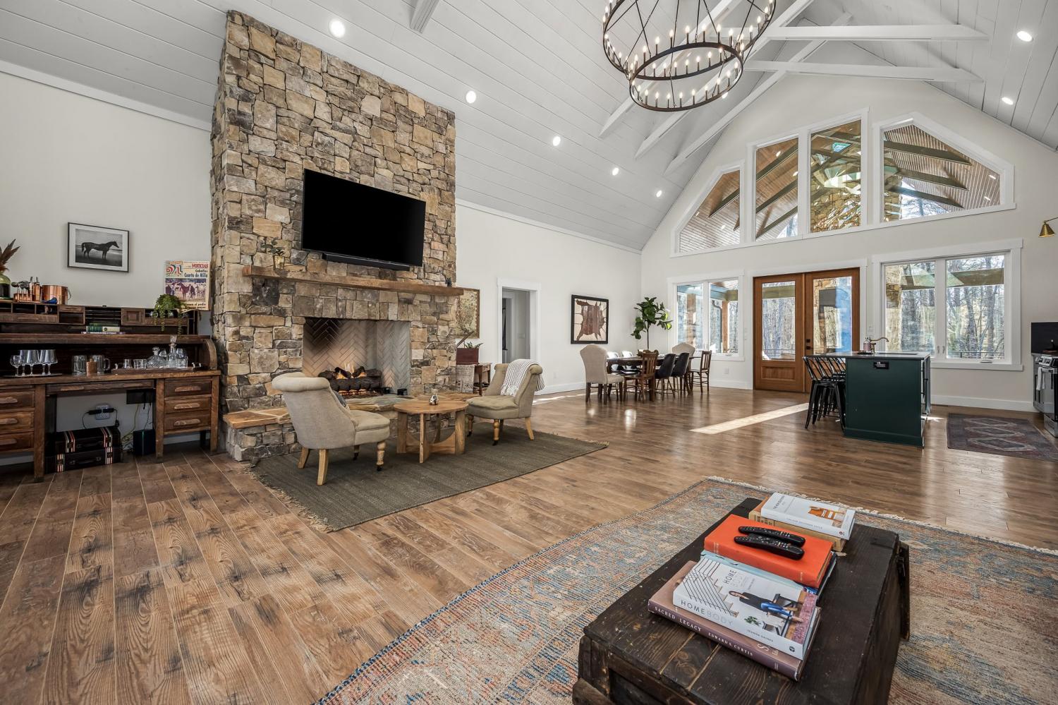 Welcome to your mountain retreat in the highly sought-after Clifftops community on Monteagle Mountain. This beautifully appointed home seamlessly blends rustic charm with modern luxury and is being sold fully furnished, making it truly turnkey. The main level features a spacious primary suite, an inviting great room with stunning fireplace, dedicated office/sunroom, additional bedroom, and a full bath. Upstairs offers a cozy bunk room with five full-size mattresses, a third bedroom, and another full bath — ideal for hosting family and guests. Enjoy abundant natural light from large windows, a gorgeous rock gas fireplace, and inviting front and rear flagstone porches perfect for relaxing in the mountain air. Outdoors, you’ll find a wood burning fireplace, fire pit, and a pad ready for a future hot tub. Short-term rentals are permitted, offering investment potential. Located in Clifftops, a private 2,000-acre gated community on the South Cumberland Plateau between Nashville and Chattanooga, residents enjoy wooded landscapes, bluff views, streams, and waterfalls. Community amenities include a private lake with beach area (fish, swim, kayak, canoe), clubhouse, pool, tennis courts, brand new pickle-ball courts, scenic walking trails throughout, playground, and community garden. Conveniently situated just 1.5 hours from Nashville, 1 hour from Murfreesboro, and 1 hour from Chattanooga, and only minutes from Sewanee and The University of the South.
