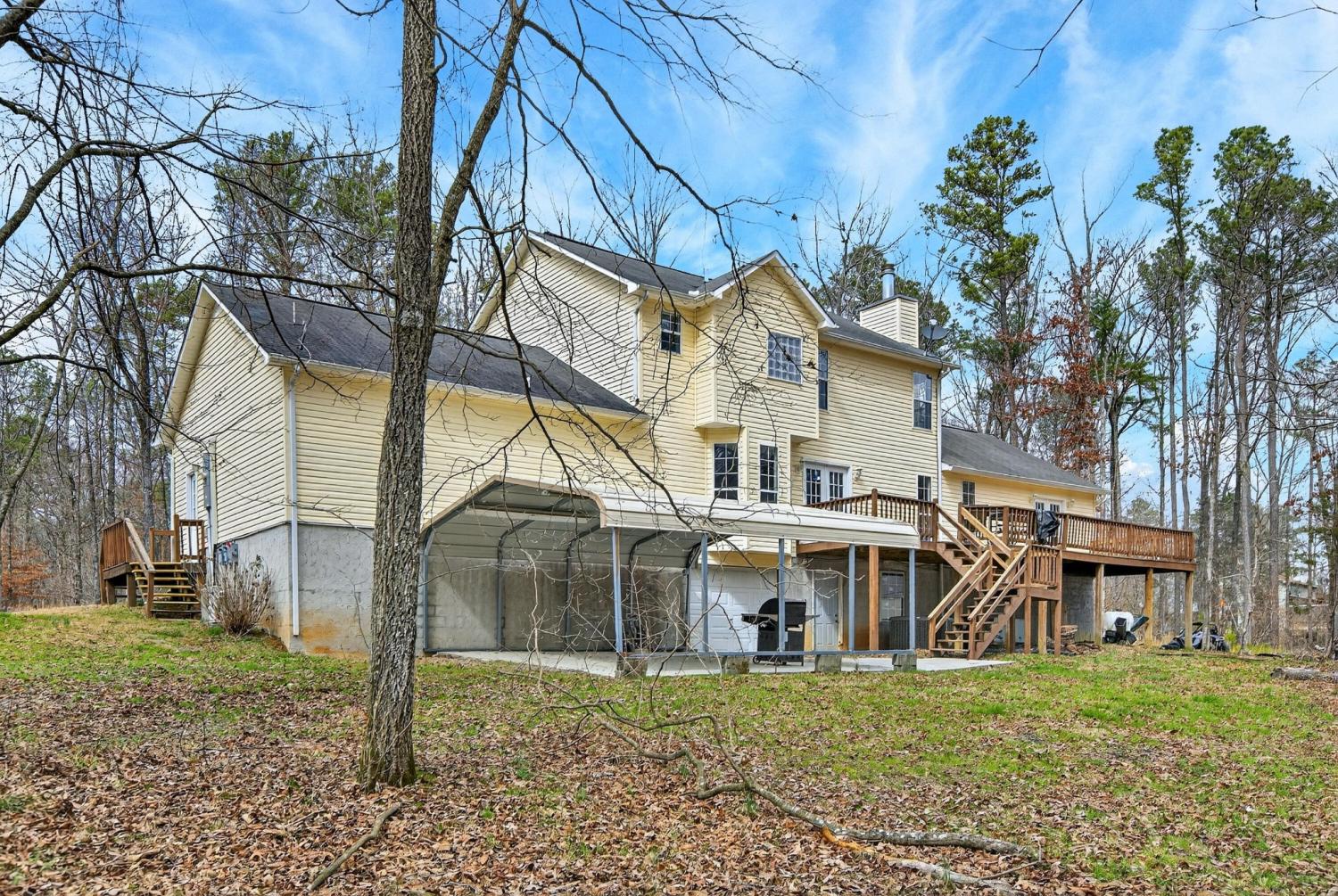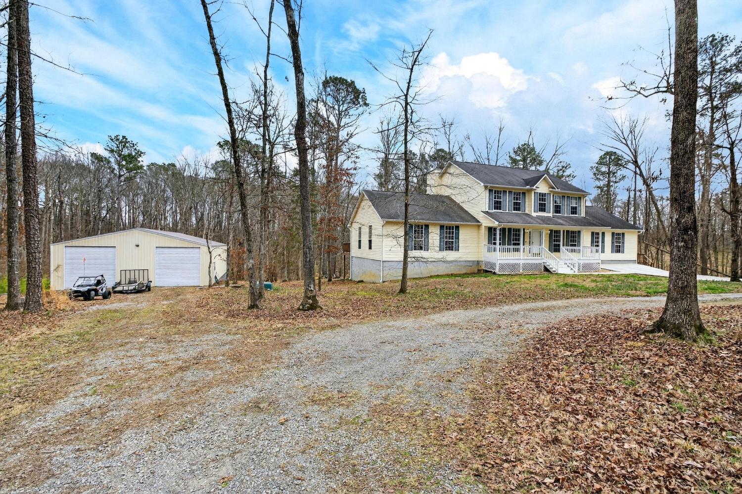 Welcome to your private retreat in Southeast Bradley County! Nestled on over 5 beautiful acres of wooded land, this updated home offers the perfect blend of space, privacy, and functionality with over 3,400 square feet of living space. Inside, you'll find a spacious layout featuring 4 bedrooms and 3.5 bathrooms, with updated finishes and plenty of room for both everyday living and entertaining. The home offers generous living areas, a gorgeous kitchen, and comfortable bedrooms designed for both relaxation and convenience. An unfinished basement provides excellent potential for additional living space, storage, or a future recreation area. Step outside to enjoy the peaceful surroundings from the large back deck, ideal for entertaining, grilling, or simply enjoying the quiet wooded setting. One of the standout features of this property is the massive 2,400 square foot detached workshop with power, perfect for hobbies, equipment storage, a home business, or additional workspace. Tucked away in a private, wooded setting, this property offers the space and privacy of country living while still being conveniently located to Cleveland and surrounding areas. Properties like this with acreage, square footage, and a large workshop are hard to find.