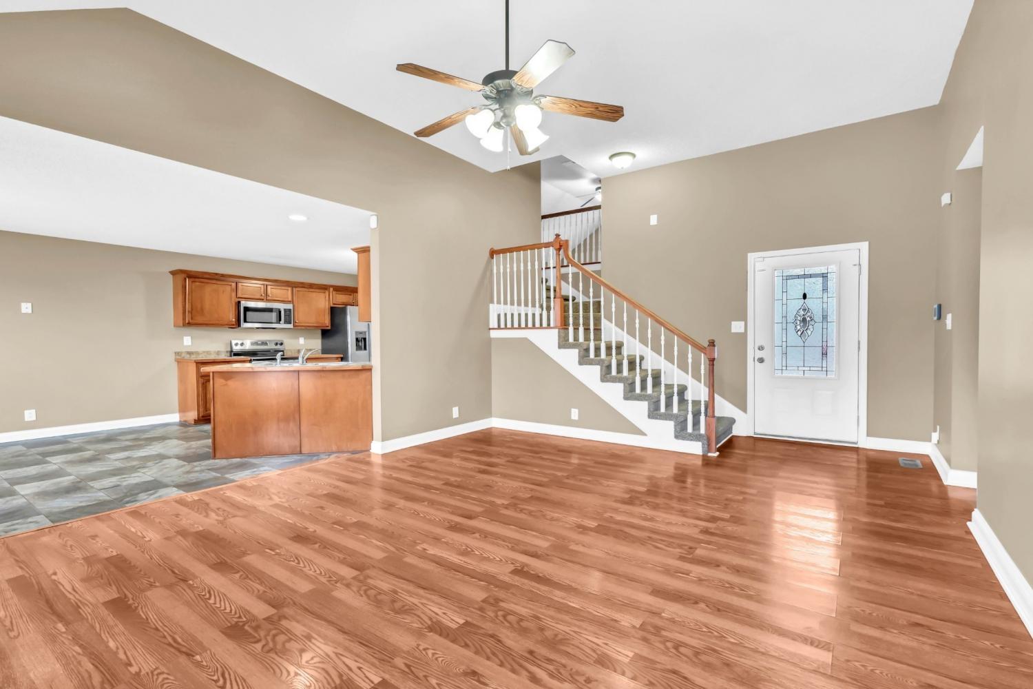 Quick Access to I-24, Shopping & Dining! New Plumbing Fixtures, New Range, New Dishwasher & Fresh Paint!!! Wood Flooring Throughout Living Room and Hallway! Spacious Living Room Features a Wood Burning Fireplace! Kitchen Has Lots of Cabinets & Counter Top Space, Stainless Steel Appliances, a Bar Overhang & an Eat-in Area with a Bay Window. Primary Bedroom Has a Walk-In Closet, Double Vanity, Large Garden Tub & Separate Shower! Huge Bonus Room Upstairs & Walk-in Attic Access with Lots of Storage! Freshly Stained Deck in the Back & a Shed! Blinds Throughout! A Must See! ***No Pets Allowed.