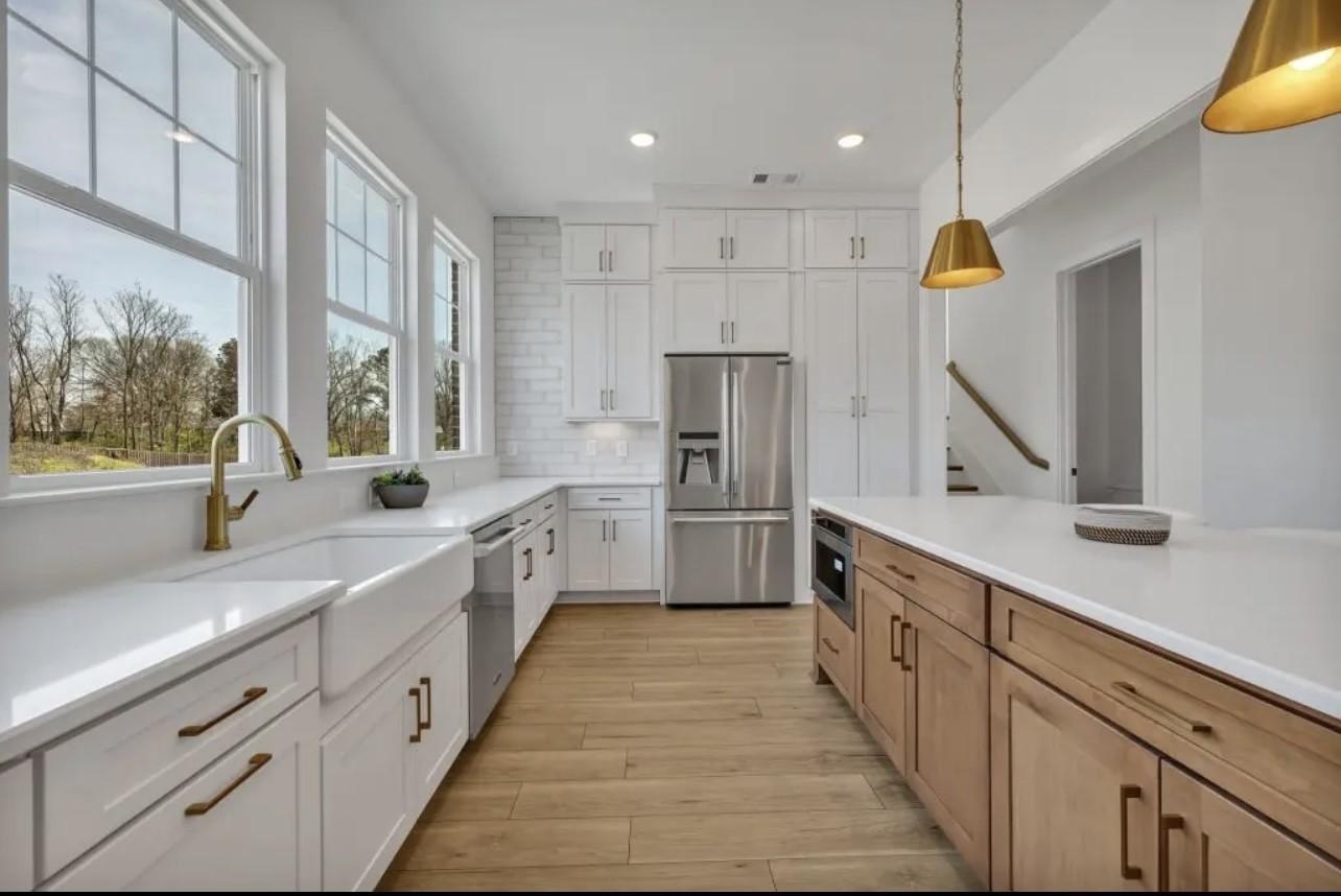 NO HOA FEES UNTIL 2028!! Our largest and most spacious layout, the Fatherland, is now available at Shelby Green and also features a beautifully decorated model for touring. Situated in the heart of East Nashville on Eastland Avenue, you’ll enjoy walkable access to favorites like Noko, Rosepepper, Ugly Mugs, and more. The Fatherland floor plan is packed with luxury finishes and thoughtful design. The gourmet kitchen showcases Signature appliances including a 36 inch gas range, a French door refrigerator with beverage door and cocktail ice maker, a stainless vented range hood, quartz countertops, white perimeter cabinetry with a sand colored island accented in gold, ceiling-height uppers, under-cabinet lighting, and designer pendants. Additional upgrades include a crafted fireplace, hard-surface flooring throughout, an ornamental dining fixture, soft-close drawers, and a no-show trash pull. A low-maintenance lifestyle is ensured with community landscaping and irrigation covered by the HOA, surrounded by generous green space. This home backs directly to the golf course with beautiful downtown views. Self touring now available. Photos may be from a previously completed home of the same floor plan. Take advantage of our current incentive - $20k in flex cash!