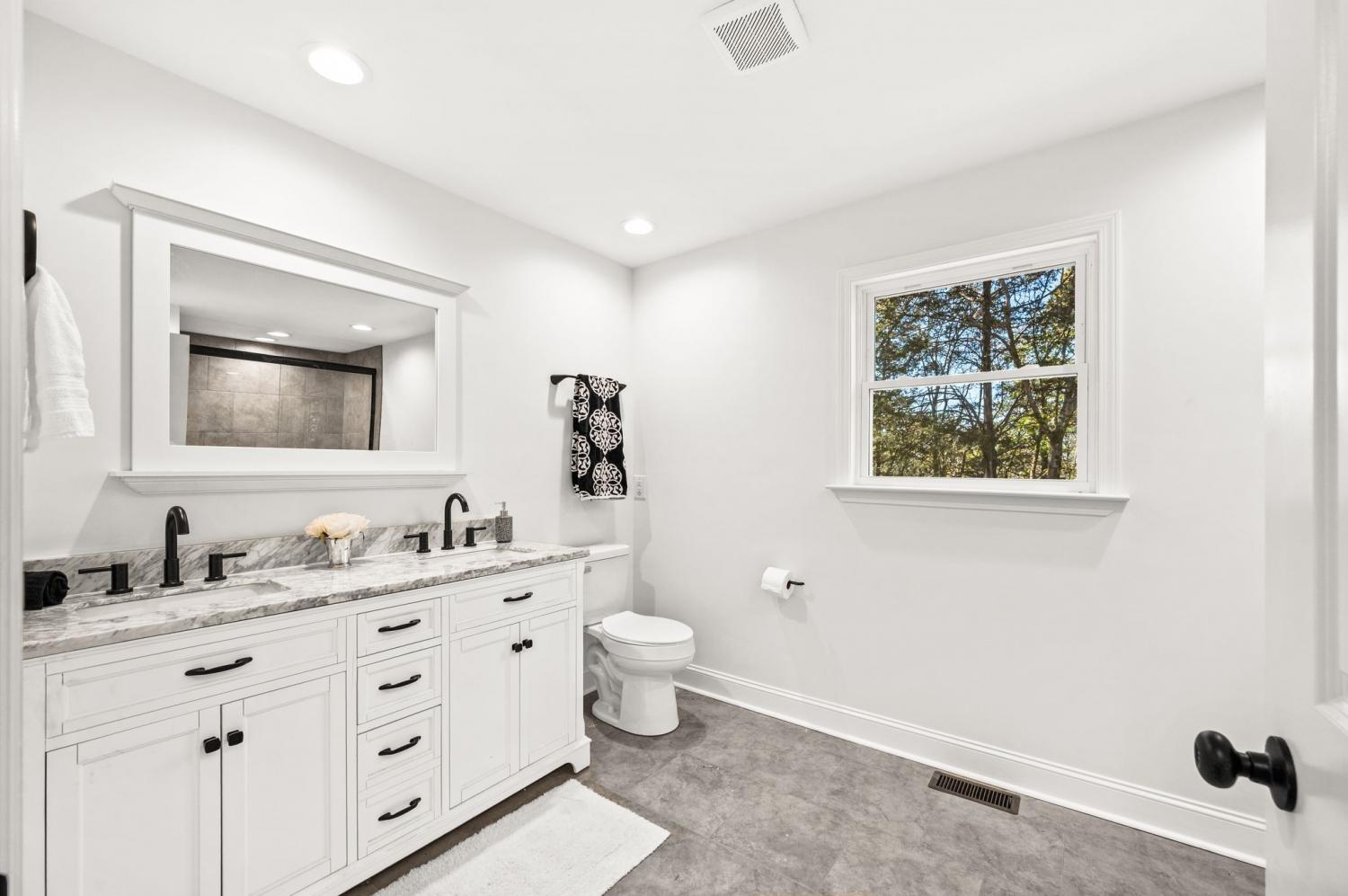 From the moment you drive down the private driveway, you are greeted by mature trees and lush foliage creating a sense of serenity and privacy not found in other neighborhoods. Inside you find gleaming hardwood floors that lead you into a spacious living room enhanced by a charming fireplace. The brand new kitchen is a chef's dream kitchen. Its thoughtful design provides generous workspace to have multiple cooks in the kitchen. The beautiful white cabinets and new granite counter tops enhance the kitchen's design. Down the hall you will discover two generous secondary bedrooms, each featuring fresh paint and new ceiling fans. These bedrooms are served by a beautifully updated bathroom complete with double vanities and a new tub/shower. At the end of the hall you will find the primary bedroom suite that has been freshly painted and has a new ceiling fan. The en-suite bathroom elevates everyday living with a new vanity, new mirrors, new lighting and a glamorous custom-tiles shower. The true gem of this home of this home is the remarkable outdoor setting and ideal blend of mature trees and wide open space. The newly built deck lets you relax in total privacy and take in the breath taking views. This yard offers endless possibilities, whether you envision games, additional seating areas you can create your own personal retreat.