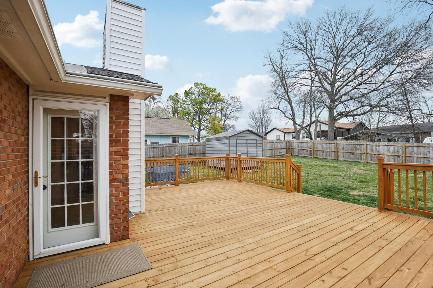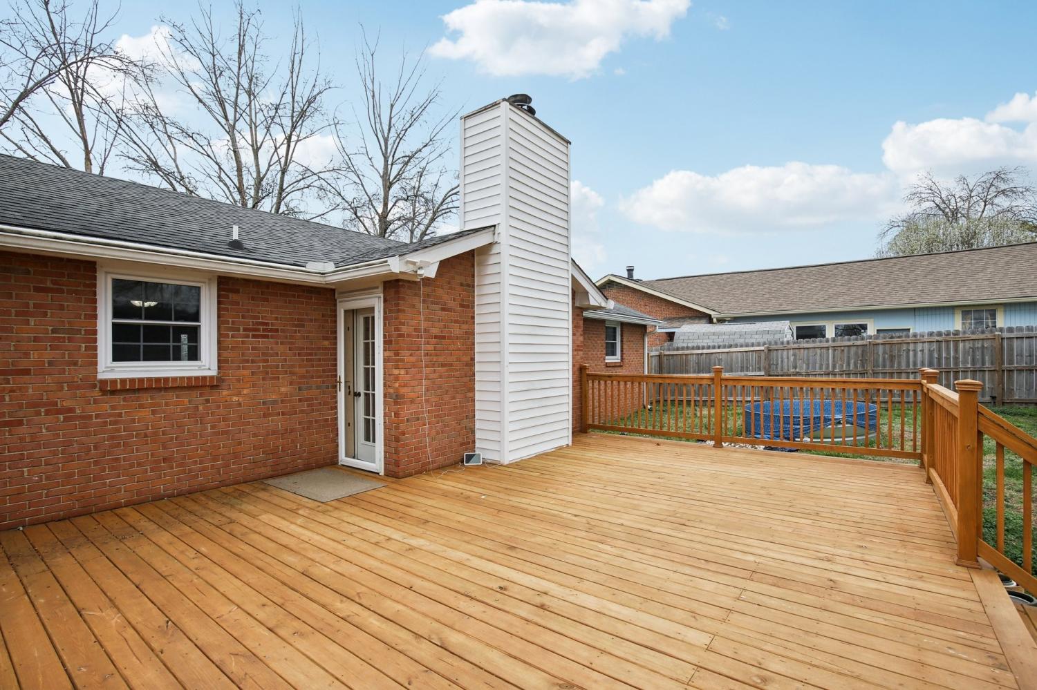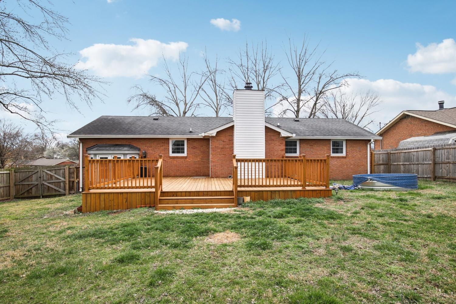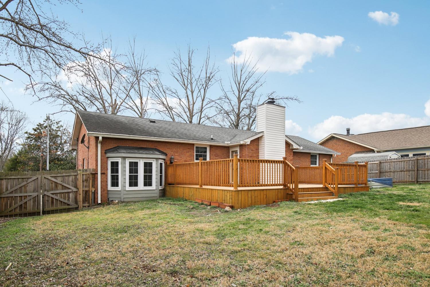 Welcome to this charming 3-bedroom, 2.5-bath home filled with warmth and character! The classic brick exterior and inviting front porch create wonderful curb appeal and set the tone for the comfortable interior. Inside, you'll find beautiful flooring throughout along with elegant crown molding that adds a touch of sophistication. The living room is both cozy and spacious, featuring decorative ceiling beams and a fireplace that creates the perfect gathering space for relaxing evenings or entertaining guests. The bright and open kitchen offers plenty of room for cooking and entertaining while flowing nicely into the main living areas. A versatile bonus room with a bay window and built-in window seat provides the perfect spot for a home office, reading nook, playroom, or additional living space. Out back, enjoy the deck overlooking a large fenced-in backyard, ideal for outdoor gatherings, pets, or simply enjoying your own private outdoor space. A storage shed provides extra room for tools and lawn equipment. Conveniently located just minutes from a variety of dining and shopping options including Target, Costco, Kohl’s, and Kroger, this home offers the perfect blend of charm, comfort, community, and everyday convenience.