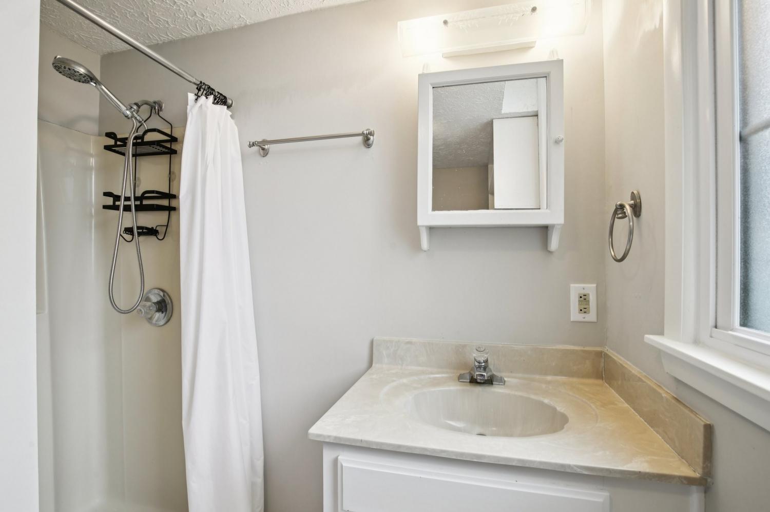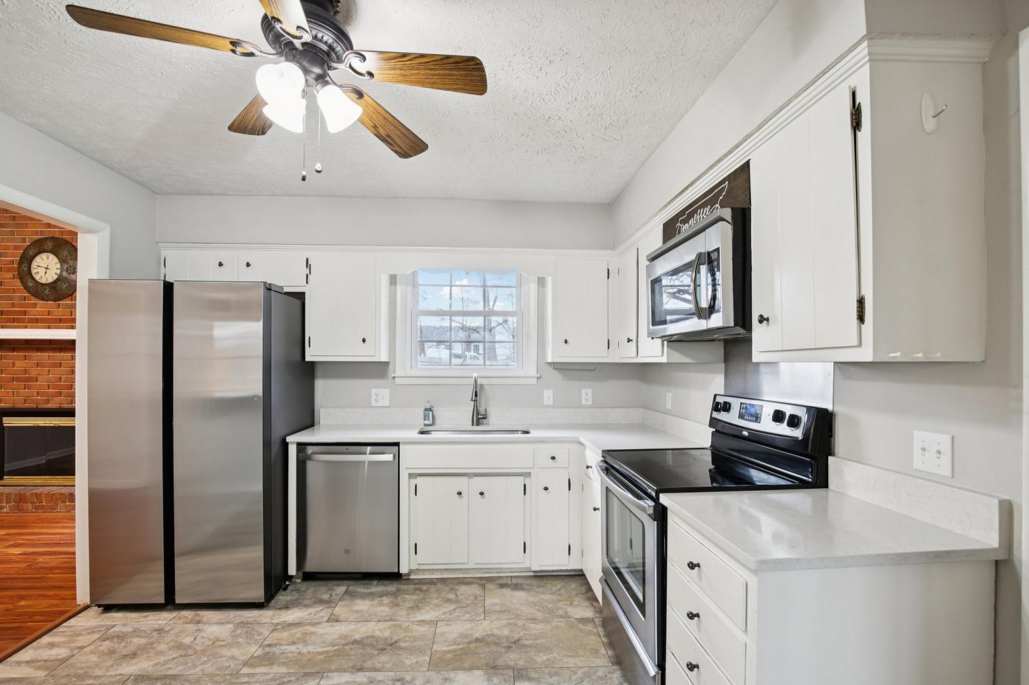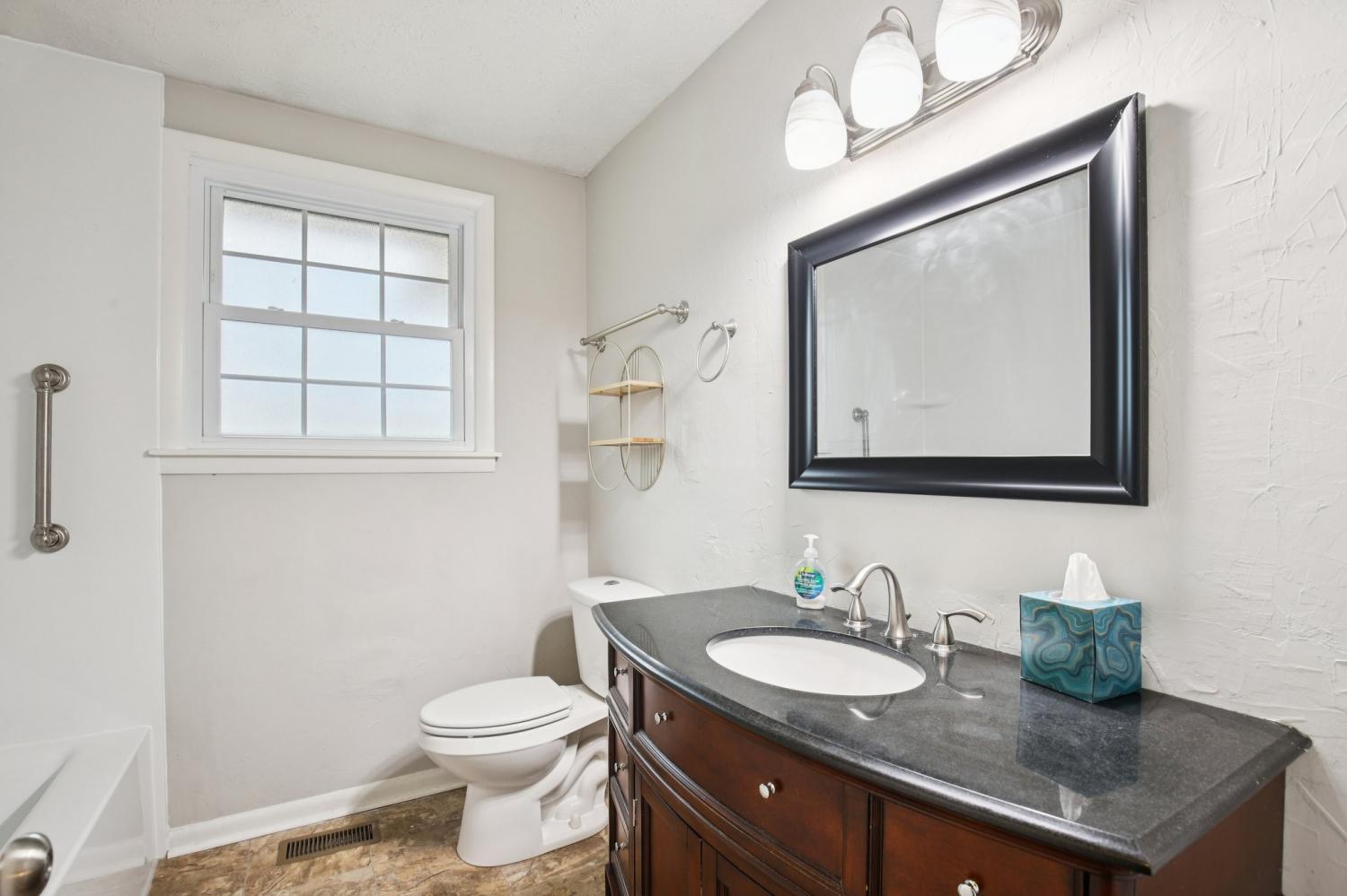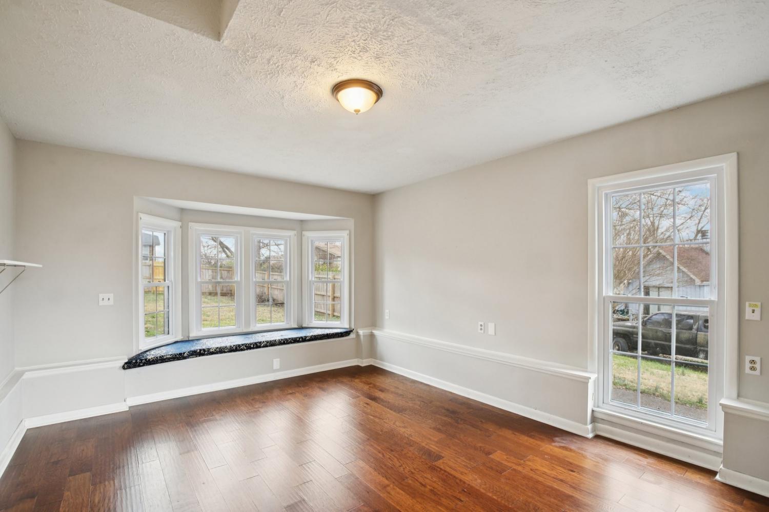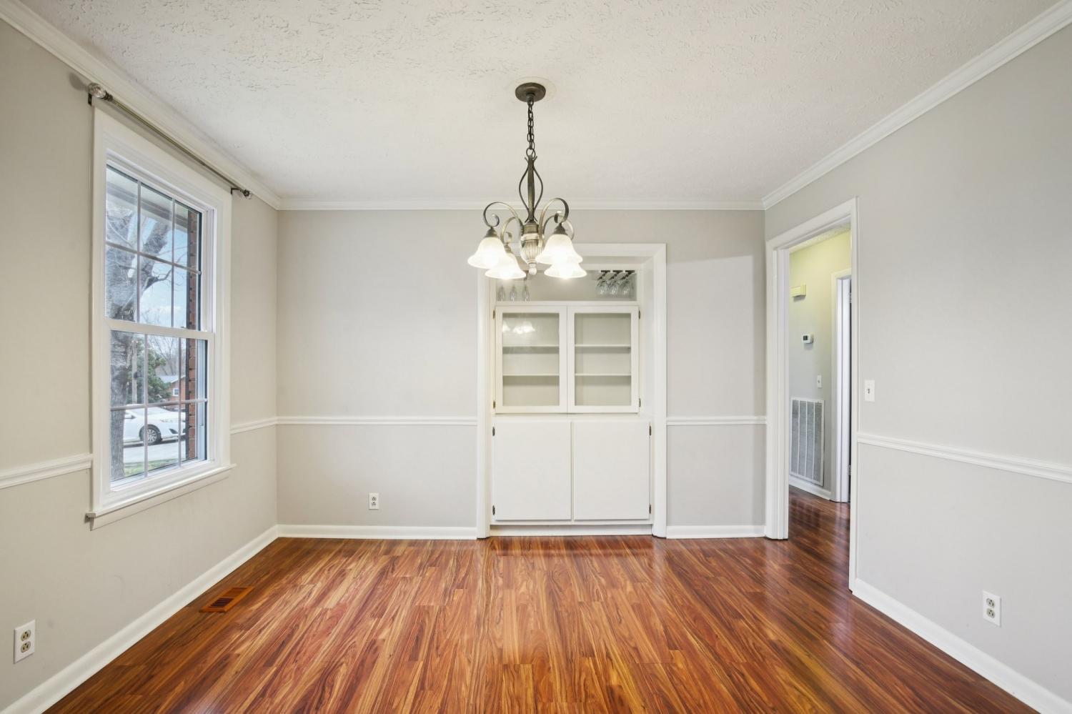 Welcome to this charming 3-bedroom, 2.5-bath home filled with warmth and character! The classic brick exterior and inviting front porch create wonderful curb appeal and set the tone for the comfortable interior. Inside, you'll find beautiful flooring throughout along with elegant crown molding that adds a touch of sophistication. The living room is both cozy and spacious, featuring decorative ceiling beams and a fireplace that creates the perfect gathering space for relaxing evenings or entertaining guests. The bright and open kitchen offers plenty of room for cooking and entertaining while flowing nicely into the main living areas. A versatile bonus room with a bay window and built-in window seat provides the perfect spot for a home office, reading nook, playroom, or additional living space. Out back, enjoy the deck overlooking a large fenced-in backyard, ideal for outdoor gatherings, pets, or simply enjoying your own private outdoor space. A storage shed provides extra room for tools and lawn equipment. Conveniently located just minutes from a variety of dining and shopping options including Target, Costco, Kohl’s, and Kroger, this home offers the perfect blend of charm, comfort, community, and everyday convenience.