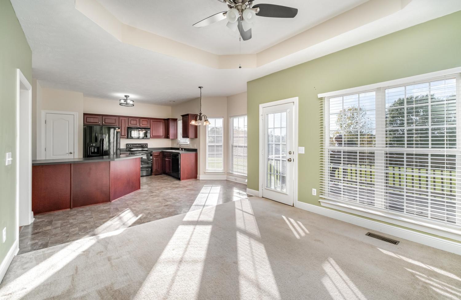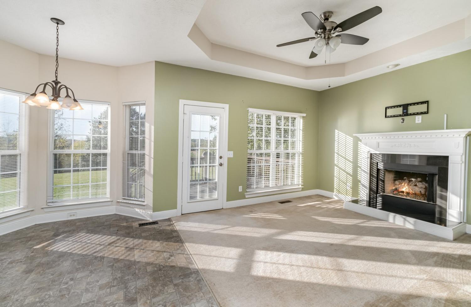 You have to take a look at the beautiful view in the back yard! The sunrise and the sunset on the deck is simply Beautiful!!! Step into this stunning home featuring an open floor plan with elegant wood floors throughout the main level. The gourmet kitchen seamlessly flows into a spacious family room with a tray ceiling and a cozy fireplace adding the perfect touch. The Fireplace comes with gas logs perfect for relaxing on a cool evening. The formal dining room provides an ideal setting for family holidays dinners. The owner suite is located on the first floor. The large bonus room is located on a separate floor from the upstairs bedrooms which is idea for large family gatherings. This home is also located on a cul-de sac. The roof and HVAC is only 6 years old