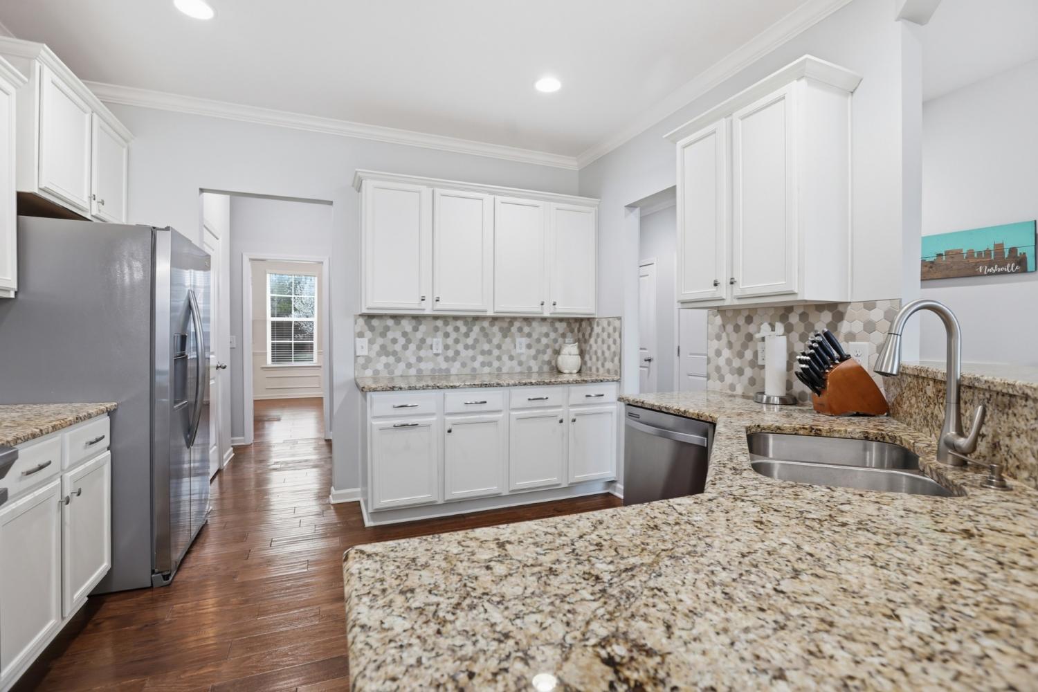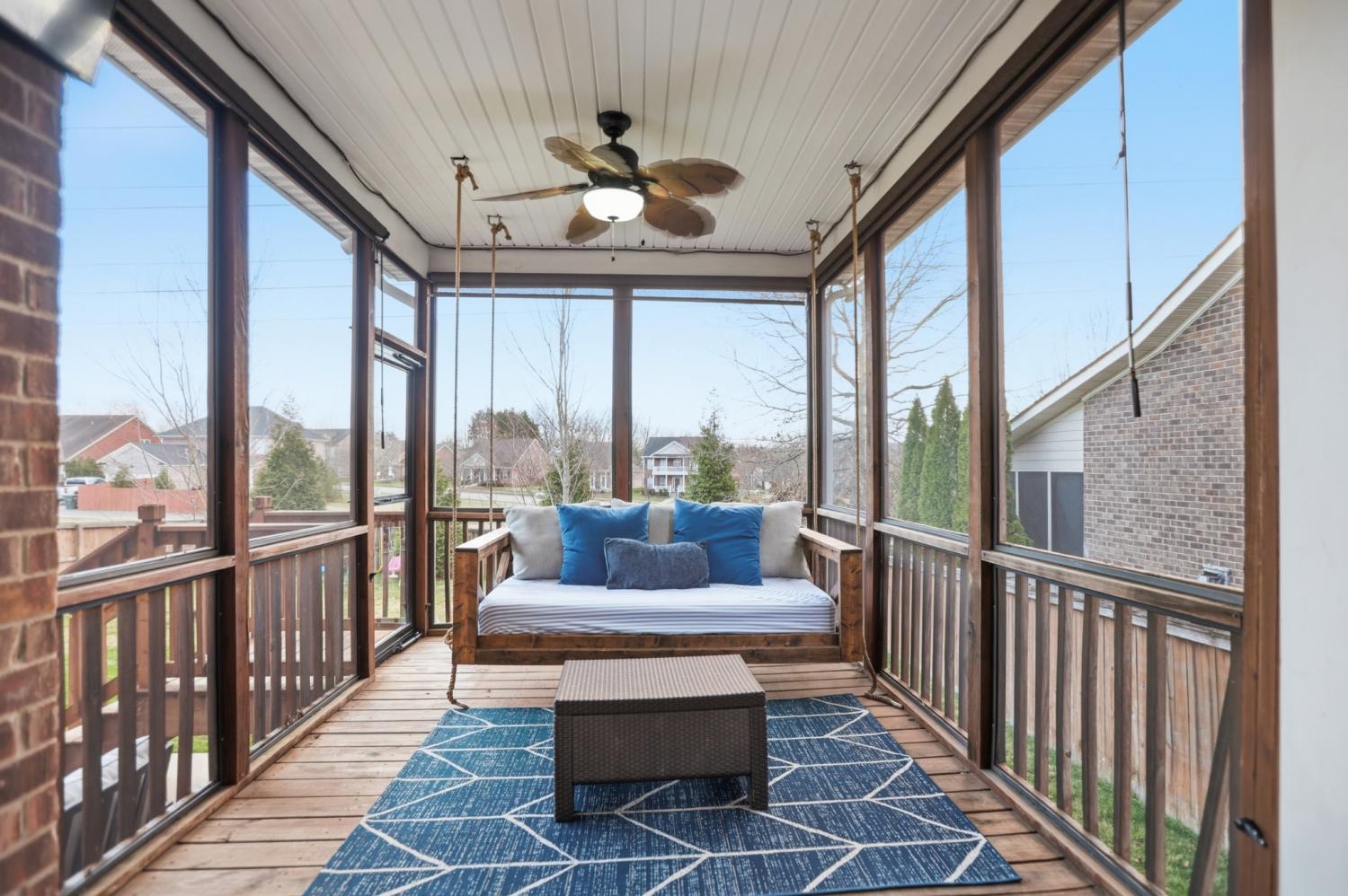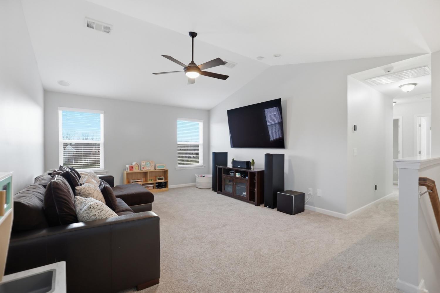 Located in the peaceful Bridgewater community of Hermitage—just seconds from Mt. Juliet— this beautifully maintained home offers the perfect balance of comfort, convenience, and outdoor living. Step inside to a welcoming foyer that opens to engineered hardwood floors, fresh paint, and brand-new carpet, creating a bright and move-in ready feel throughout. The primary bedroom suite is conveniently located on the main level, providing privacy and easy accessibility. Downstairs also features a versatile flex space, ideal for a home office, formal dining area, or additional living space. Storage will never be a concern with a huge dedicated storage room and abundant closet space throughout the home. Upstairs, the bonus room is already equipped with a built-in surround sound system, making it the perfect space for movie nights, game days, or entertaining. The real highlight of this home is the exceptional backyard retreat. Enjoy relaxing or hosting guests on the screened-in back deck ready with TV and porch swing bed brackets in place, creating a comfortable entertainment area year-round. Step down to the added concrete patio, complete with gas grill and hot tub hookups, all overlooking a massive fenced backyard with meticulously maintained grass supported by an irrigation system—perfect for gatherings, pets, or play. Additional features include a 2-car garage with custom shelving and thoughtful upgrades throughout. Residents of Bridgewater enjoy fantastic community amenities including a pool, playground, and scenic walking trails. The location is unbeatable—minutes from all things Providence in Mt. Juliet, offering abundant shopping, dining, parks, Nashville Shores Waterpark, and easy access to Percy Priest Lake and the marina. This home truly offers space, comfort, and an outdoor lifestyle that’s hard to find.
