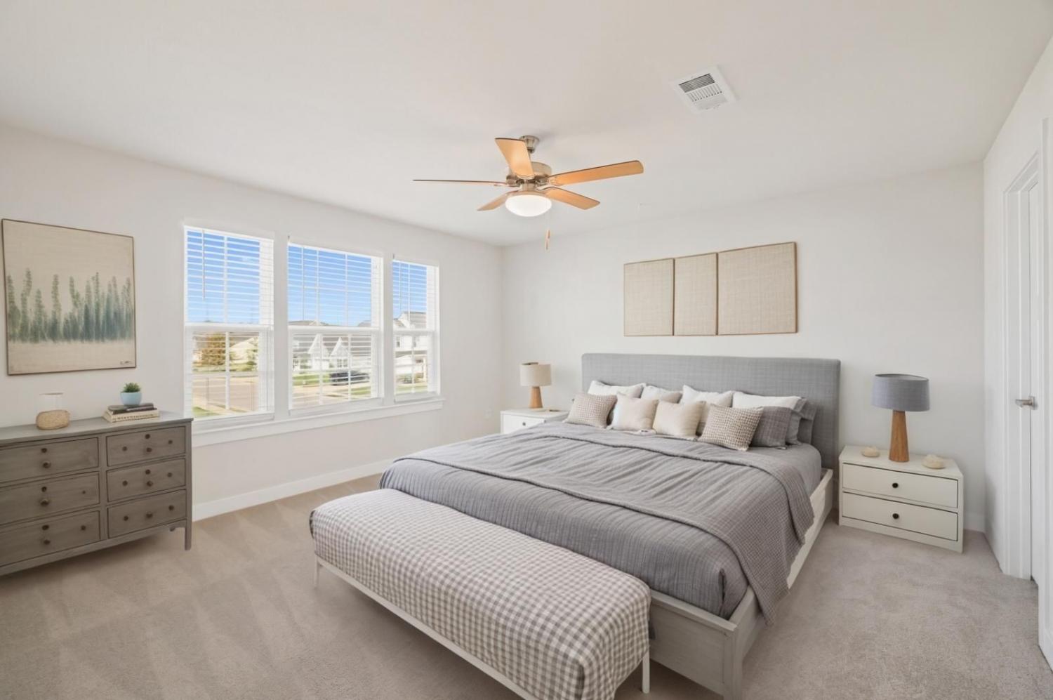 Welcome to this bright and spacious 5-bedroom, 3 full bath home in Three Rivers Community! Fresh paint and trim throughout home, and brand new carpet. Downstairs features a formal dining room, an open-concept living area, and a kitchen with a massive quartz island—perfect for entertaining. Enjoy stainless steel appliances, island seating, and a convenient downstairs bedroom with a full bath that can double as a home office. Upstairs, the primary bedroom features two separate closets and a spacious en-suite bathroom with double vanities and a tiled shower. The home also includes a mudroom off the 2-car garage, dual-zone air conditioning, and a fully fenced backyard that backs up to a peaceful cow pasture—yes, you can even feed them when they stop by! Additional highlights include a Simplisafe video doorbell, an under-sink water filter, and an HOA that handles front yard maintenance (weekly mowing, edging, blowing, and seasonal mulch). The neighborhood offers a community pool with both a full-size and kiddie pool. Food trucks regularly visit, and you can enjoy a short walk for a fun dinner option. The street is known for its strong sense of community, with friendly neighbors. Holiday block parties are a favorite tradition, celebrating everything from Christmas to the Fourth of July. Come see what makes this houseand this neighborhood so special!