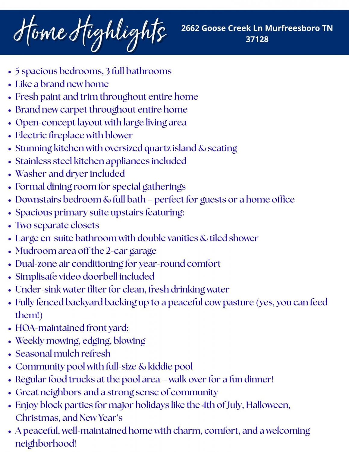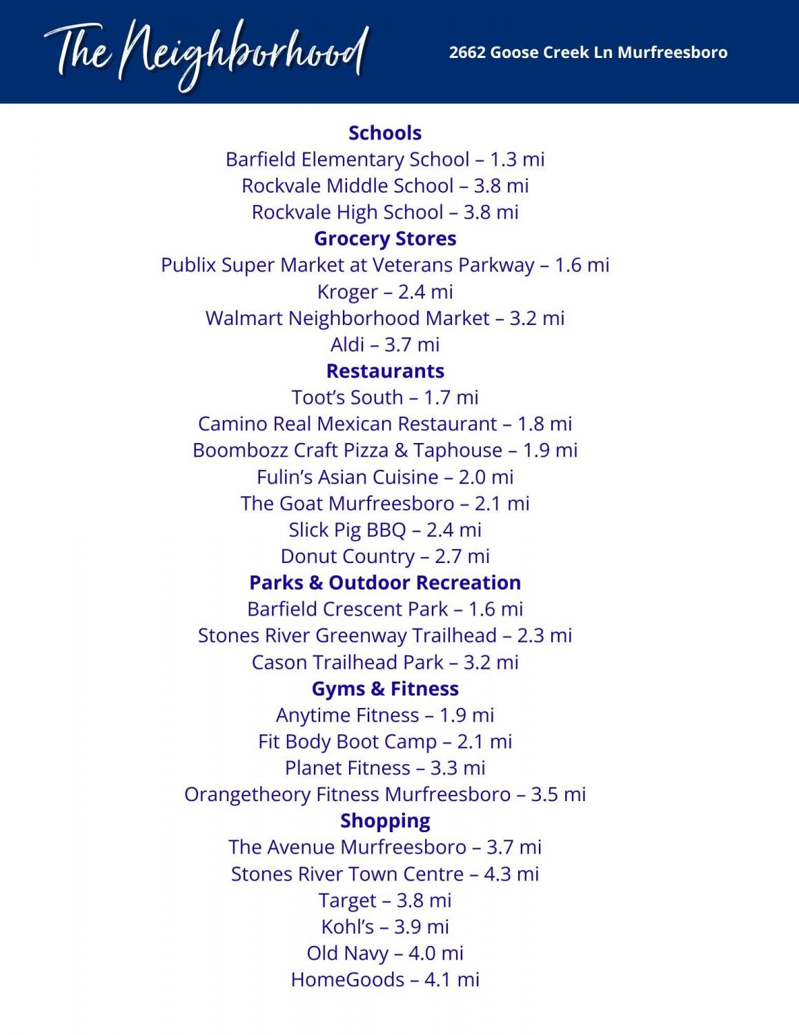 Address : 2662 Goose Creek Ln Murfreesboro TN 37128