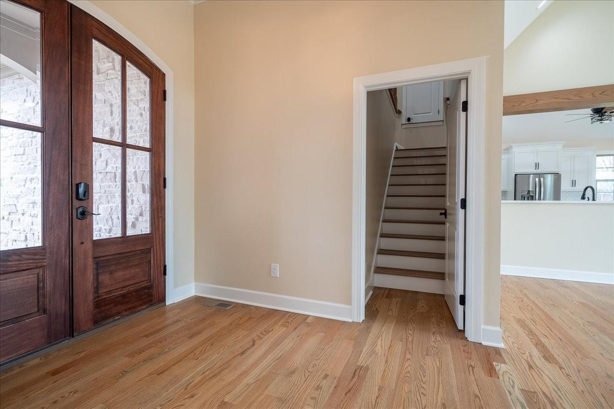 Welcome to 1238 Baylee Circle! Located near Lawrence County High, a stunning new, expertly built home featuring 3 bedrooms, 2 full baths, and a spacious upstairs bonus room. Enjoy soaring vaulted ceilings in the great room, kitchen, and dining areas, along with beautiful hardwood floors throughout. The thoughtfully designed kitchen flows seamlessly for entertaining, while the dedicated laundry room includes a convenient utility sink. Large French doors lead outside to a large patio perfect for relaxing or hosting guests, while allowing lots of natural light to flow into the living area. Lots of storage with spacious walk-in closets, built-in shelving, and cabinet space. Modern, elegant, and move-in ready—this home has it all.