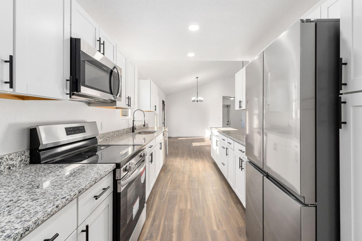 New Neighborhood - New Construction Homes. The home offers 3 bedrooms, 2 full bathrooms, open kitchen and living room, granite countertops, luxury vinyl flooring, vaulted ceilings, ample storage and an oversized one car garage. Additional homes and floor plans are available.