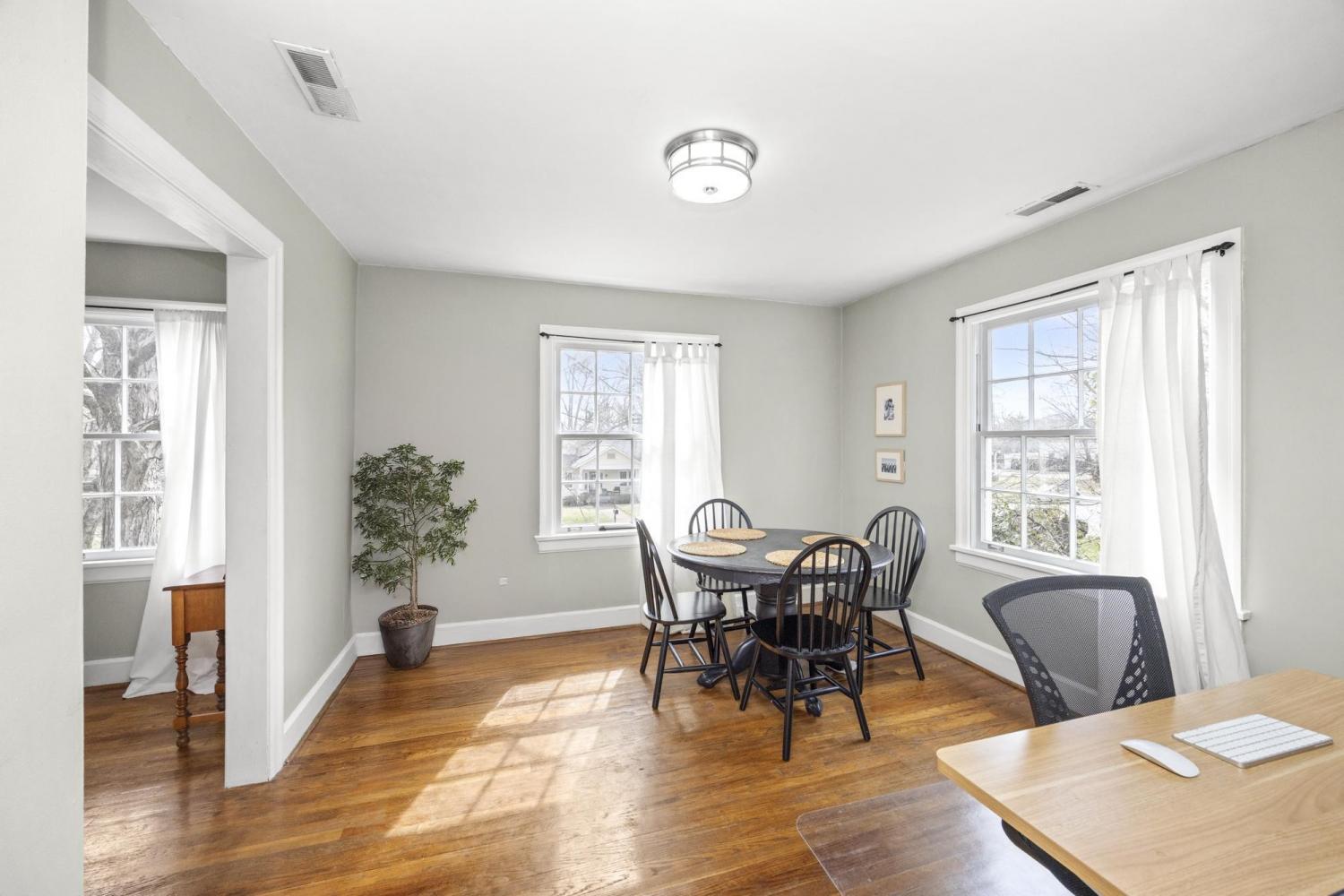 Truly a rare offering! Income producing triplex with proven and successful rental history in the Historic Overlay of Sylvan Park! Walkable to dining, cafes, farmers market, parks, and shops in this beloved neighborhood. 4706 Elkins sits prominently on an oversized .26 acre lot with colonial style grandeur amongst old-growth trees on a wide street. Original wood siding, units A and B are each 2 bed, 1 bath with living rooms, dining room, and mud room/laundry + adorable private patios. Unit C is a furnished 1-bed 682 sq. ft. garage apartment. Renovated baths, laundry in each unit, roof and HVACs approx. 6 years old. Live in one unit and rent the others, renovate to a single family home, or enjoy a sound investment in one of Nashville's most coveted corridors.