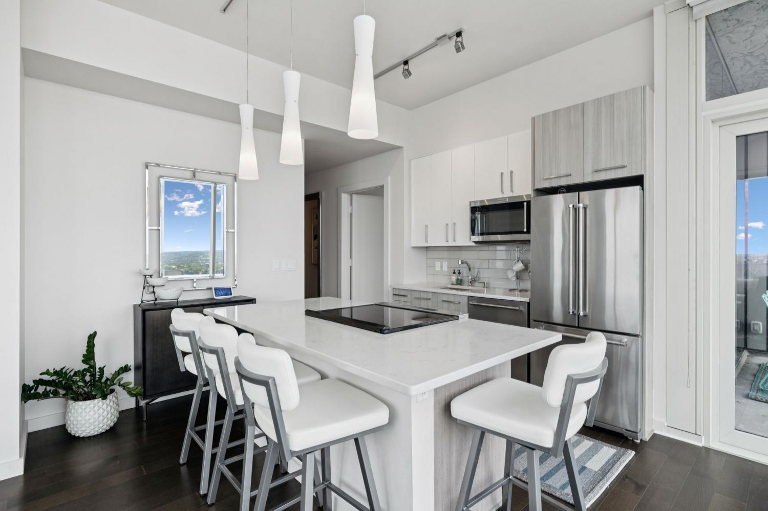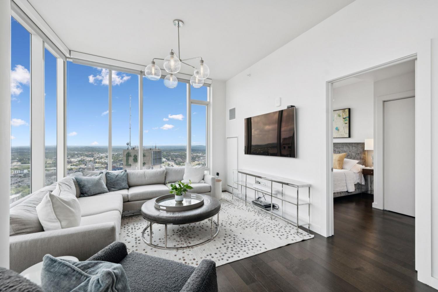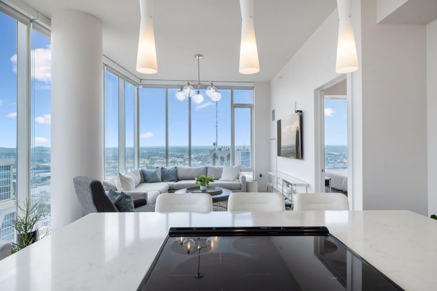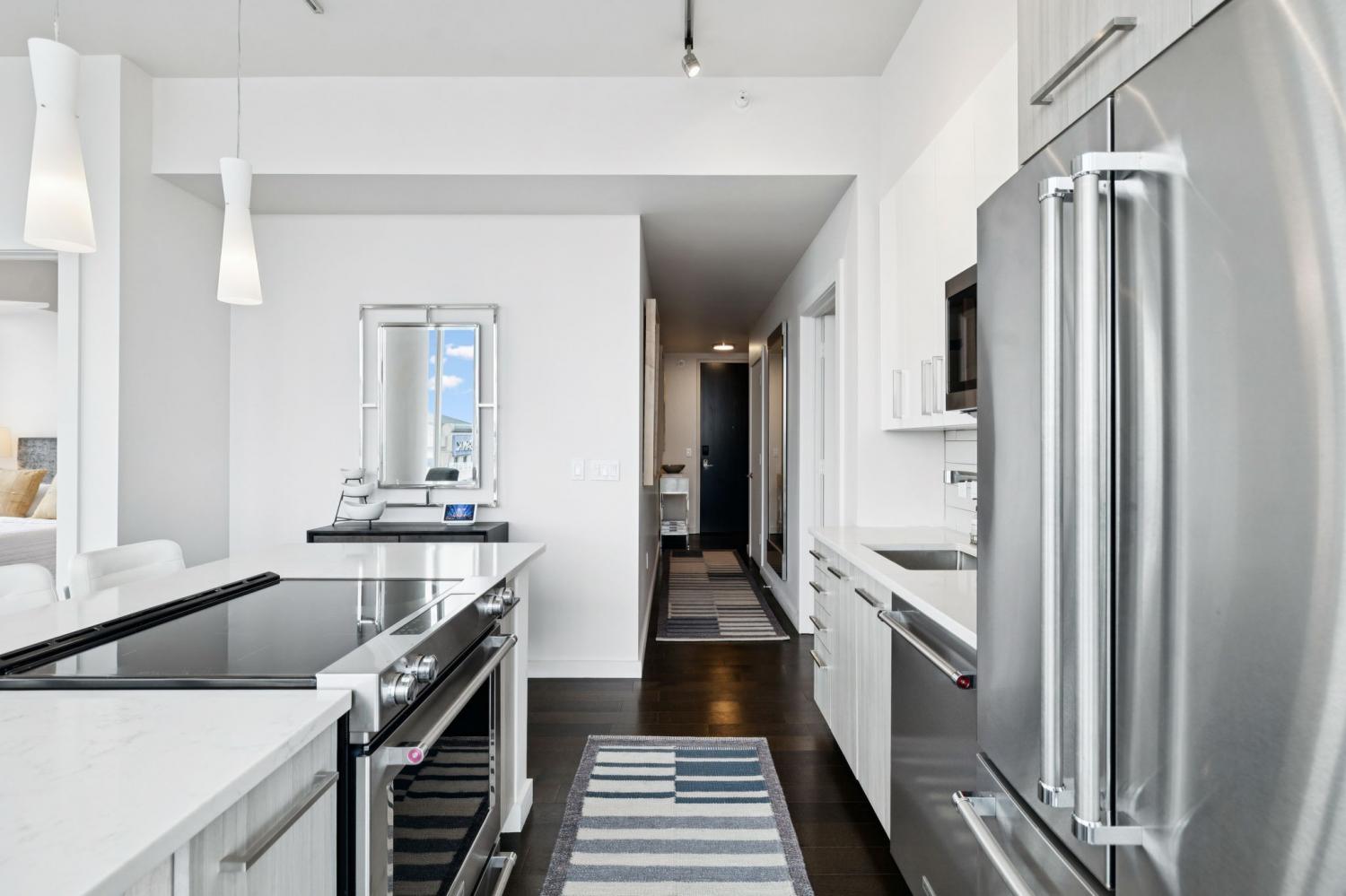 Welcome to the Prestigious 505 Building Downtown Nashville! This Remarkable 2-Bedroom CORNER Unit combines Comfort, Luxury, & Breathtaking Views of Nashville and the Surrounding Hills. Bathed in Natural light, the condo features Upgraded and Expanded Quartz Countertops and is being sold COMPLETELY FURNISHED with Designer Furniture from Mitchell+Gold (some exclusions). ** This unit has a designated place in a PRIVATE PARKING GARAGE**Both Bedrooms come with En Suite Bathrooms, custom California Closets, and Expansive City Views. This Corner Unit has a Well-Designed Layout with Private Balcony, ideal for enjoying the dazzling downtown lights. Fondly referred to as the “Fireworks Corner,” this home offers a prime vantage point for the Fourth of July celebrations, New Year’s Eve fireworks from Bicentennial Mall, and the Friday night fireworks after Nashville Sounds home games. The building boasts an elegant lobby with 24/7 Concierge and AMAZING Amenities: Inviting Pool, Cabanas, Tennis Court, Pickleball and Dog Park. Inside, owners will find a private owners’ lounge, and state-of-the-art fitness center, private Italian-inspired wine/dining room and 24 hour coffee bar. You'll find everything you need here, just steps away from Nashville’s world-class dining and vibrant entertainment. Make this your permanent home or keep as a Downtown Music City Getaway!