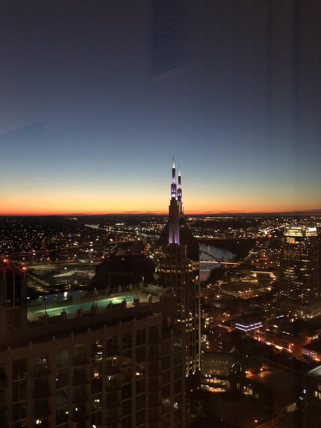 Downtown Nashville to the corner of Church and 5th. Park in Valet parking out in front of the building.