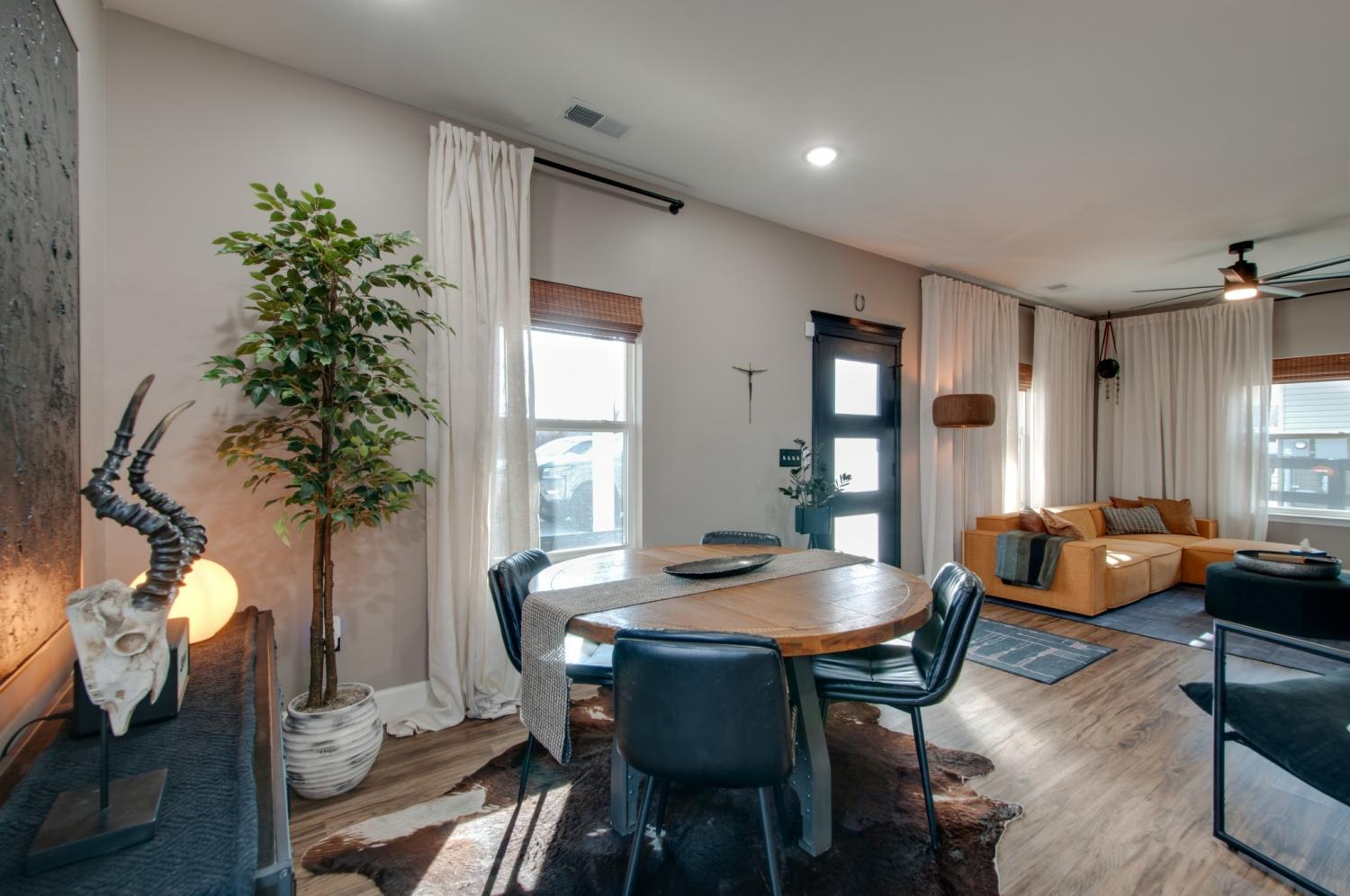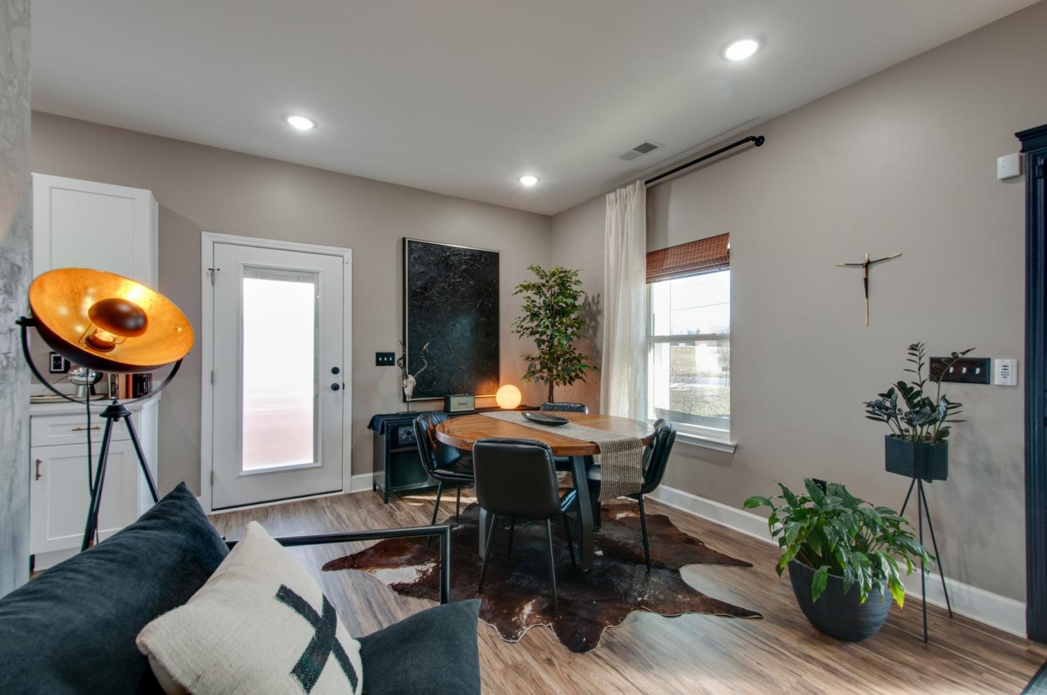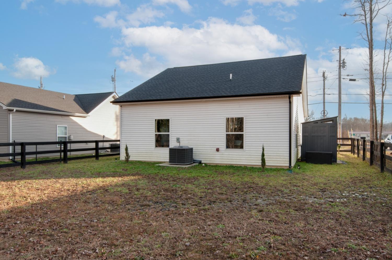 Welcome to this charming new construction farmhouse-style home in a peaceful small-town setting. This thoughtfully designed 3-bedroom, 2-bath residence features durable vinyl plank flooring throughout the main living areas, shaker-style cabinetry, and stainless steel appliances. The open-concept layout offers efficient use of space with comfortable living and dining areas filled with natural light. The primary suite includes an ensuite bath and ample closet space, while two additional bedrooms provide flexibility for guests, a home office, or family needs. Enjoy a low-maintenance exterior, quality finishes, and the ease of new construction—all conveniently located near local shops, schools, and community amenities. Move-in ready and perfect for modern small-town living. *** Seller updates include a newly installed privacy fence with a fully fenced backyard, added parking, and a storage shed that will remain with the property. Interior enhancements include closet lighting and ceramic residential window tint in the living room, kitchen, and dining areas - providing added comfort and improved energy efficiency. ***