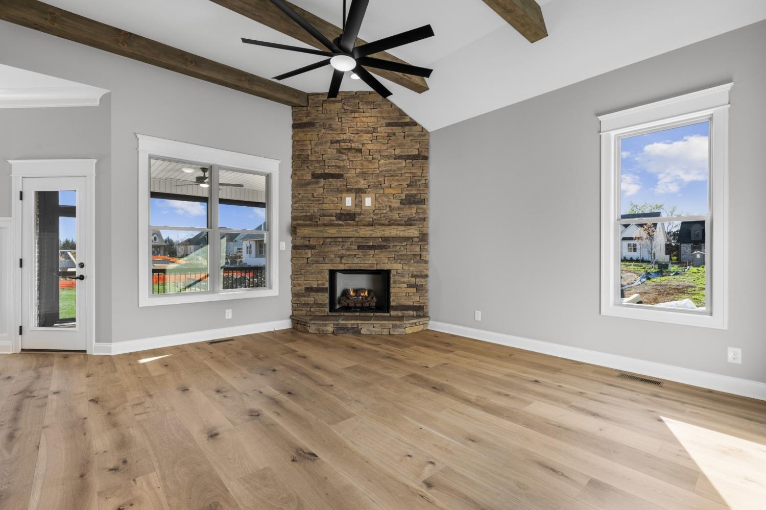 Exceptional Quality & Service by Eastland Construction Inc. $10,000 toward closing cost and/or rate buy down! The Peyton Plan, Great 4BR plan, Living rm w/ Stone Gas Fireplace & Wood Beams. Hardwood Floors In Living Rm, Kitchen, Eat-In, BR 2, & Primary BR. Kitchen with Upgraded Custom Maple Cabinets, Tile Backsplash, Hardwood Floors, Quartz tops, Double Ovens, Butlers Pantry, Microwave, and Dishwasher, Primary BR on Main Level with Large Bath w/ Separate Shower and Large Tub, Double Vanities, & Custom Wood Walk-In Closet. Tile in Baths and Full Utility Rm, Formal Dining Rm, 27x19 Recreation Rm w/ pre-wired Surround Sound, Tankless Water Heater, Irrigation System with all SOD yard, Screened Covered Back porch, and Open Patio Area, 3 Car Garage and Much More!