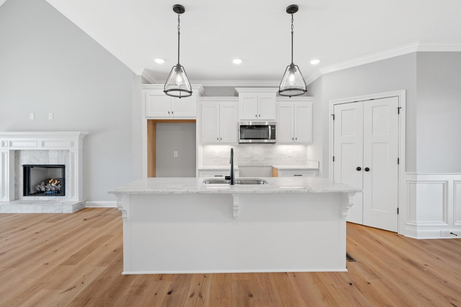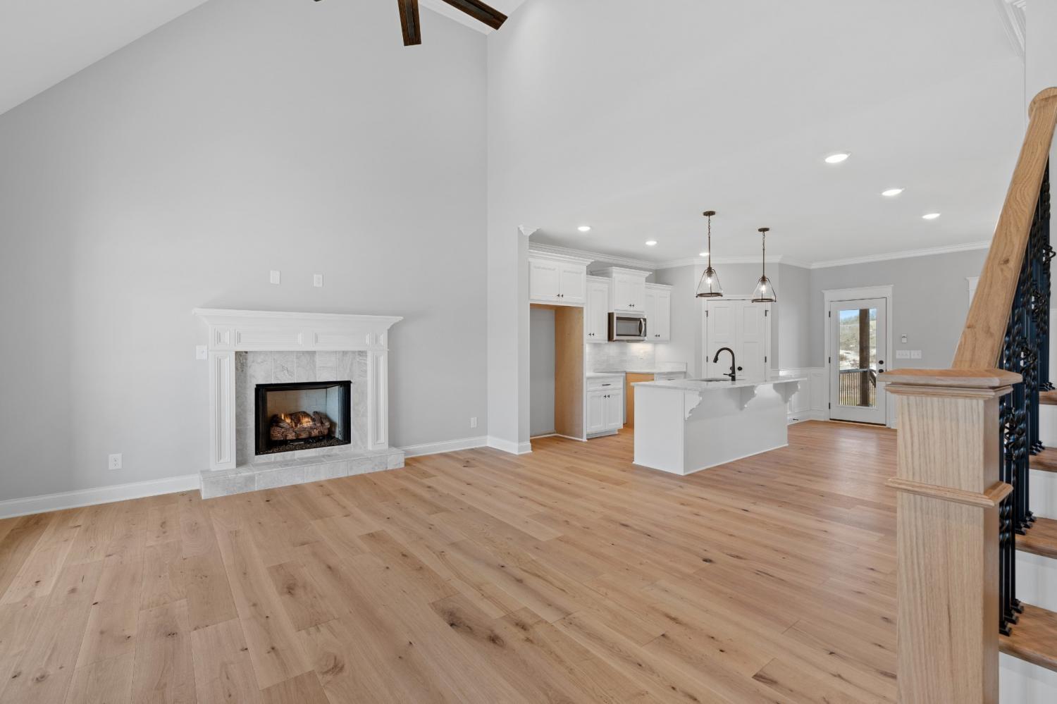 Exceptional Quality Construction by Eastland Construction Inc. $20,000 toward closing cost and/or rate buy down with Preferred Lender. Section 2 Now Open! Aspen floor plan, Living rm w/ Hardwood Floors, Tile Gas Fireplace. Kitchen w/ Quartz Countertops, Custom Maple Cabinets, Tile Backsplash, Hardwood Floors, Pantry, Microwave, and Dishwasher, Primary BR on Main Level with Large Bath w/ Separate Shower and Large Stand alone Tub, Double Vanities, & Quartz Tops, Tile in Baths and Full Utility Rm, 28x21 Rec Rm w/ pre-wired Surround Sound, Covered Back porch, Excellent Quality and Features Throughout Home!
