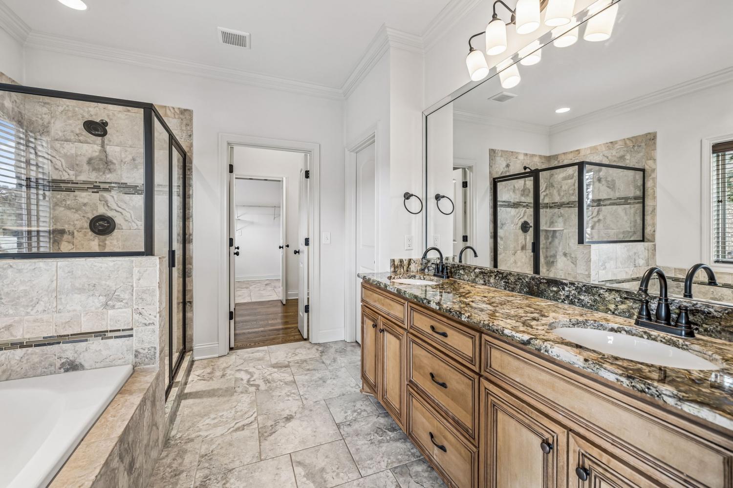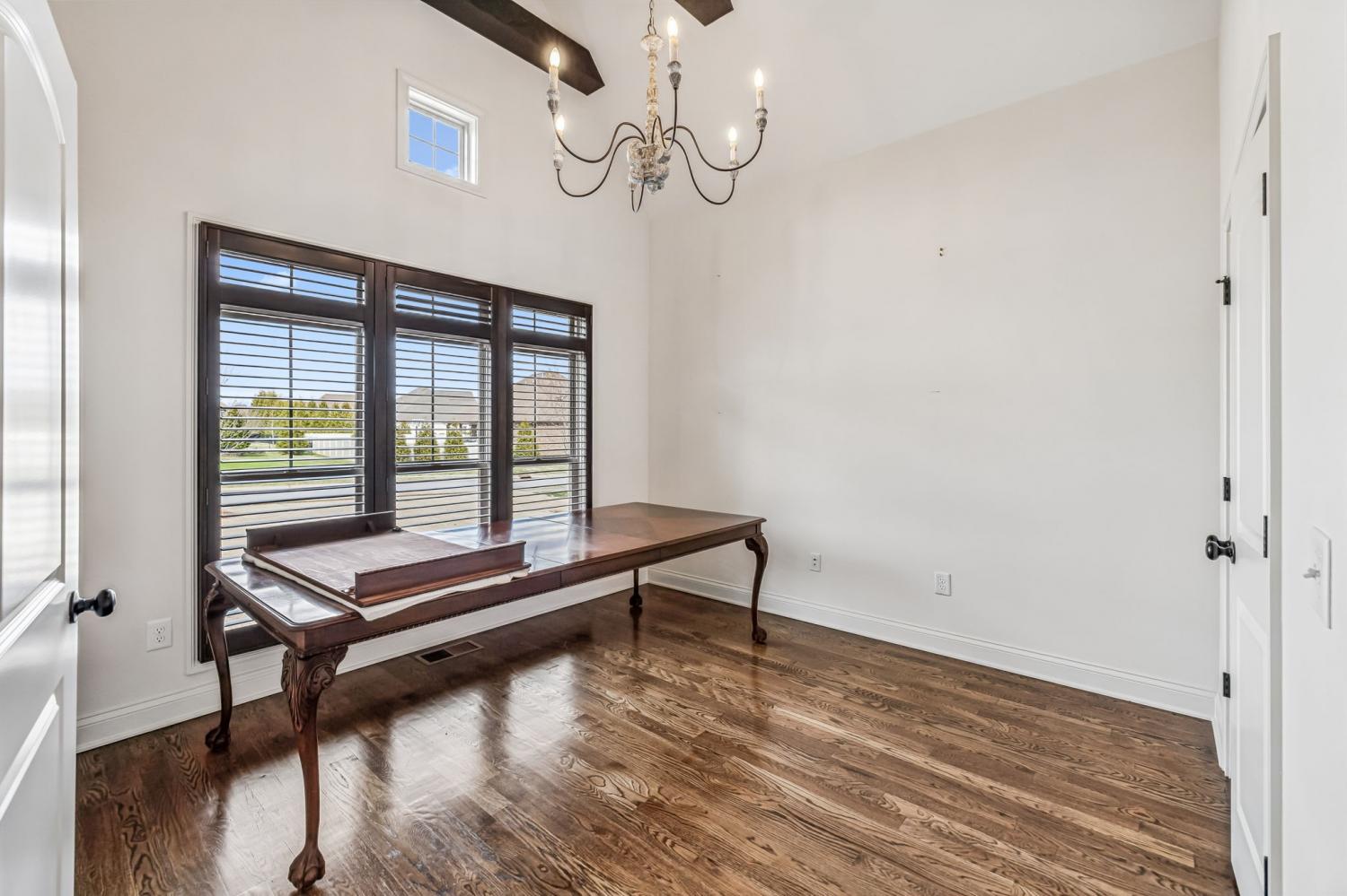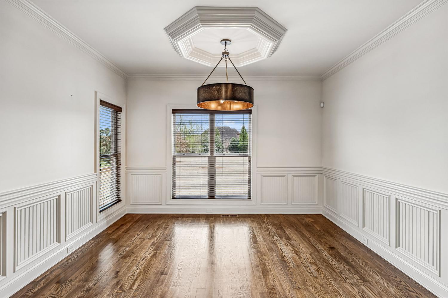 Situated on over half an acre of park like setting, in the highly desirable Farmington Woods neighborhood, this beautifully constructed 4-bedroom, 2.5-bath residence offers 3,400 square feet of well-planned living area. Built in 2017, the home showcases craftsmanship and attention to detail throughout. Natural Custom wood flooring runs across both levels, with tile in select areas—no carpet anywhere in the home. The main floor features a spacious owner’s suite with a relaxing soaking tub, tiled walk-in shower, and generous closet space. An additional room on the first floor works perfectly as a guest room or workspace. Farmington Woods is known for its underground utilities, sidewalks, and attractive surroundings, making it one of Lebanon’s most sought-after communities.