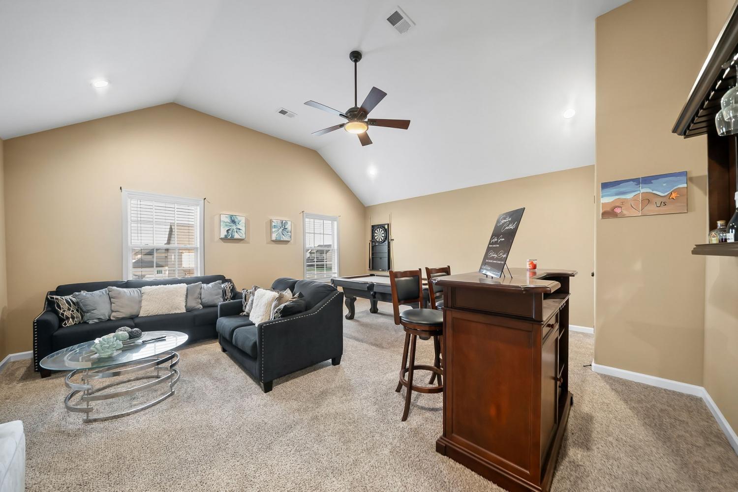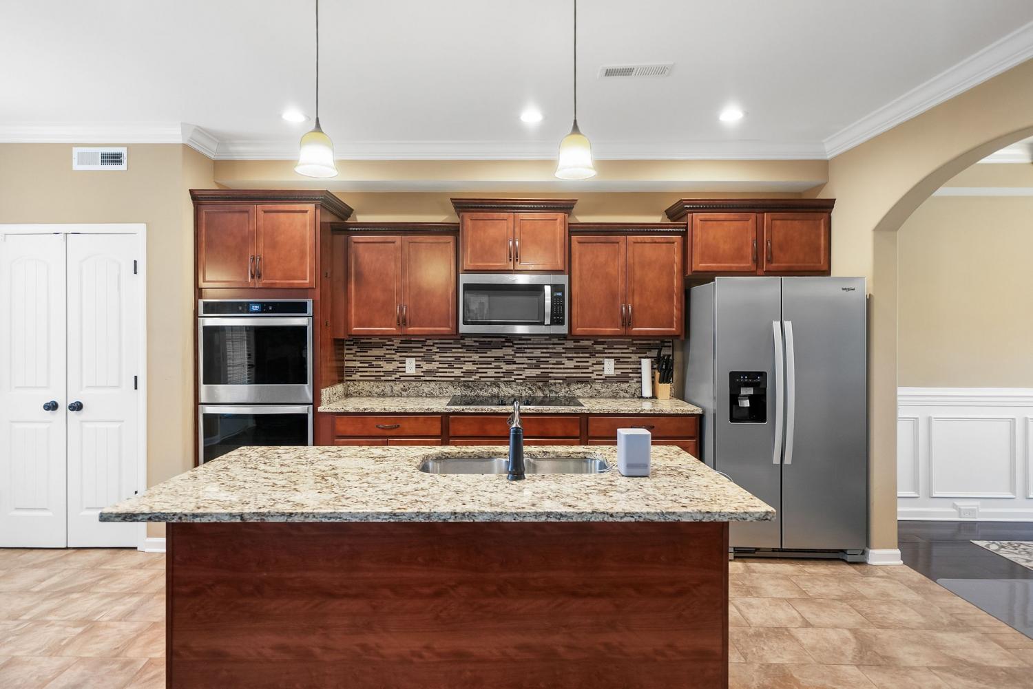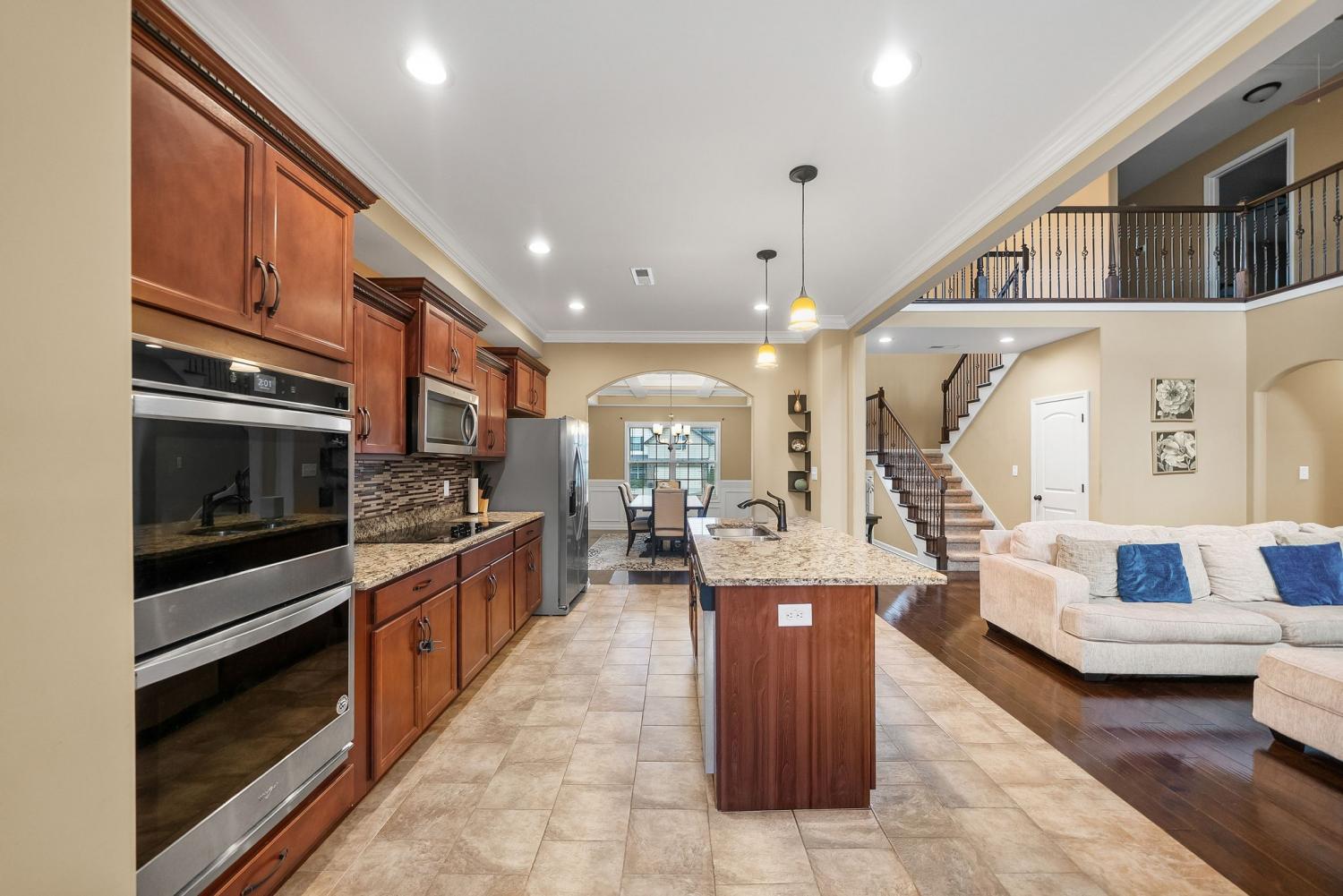 This home features 5 bedrooms, 3.5 baths, AND a large bonus. The living room has a gas fireplace and tall ceilings. Kitchen has granite countertops, large island, tile backsplash, and double ovens. In the backyard you have a covered patio overlooking the large back yard.
