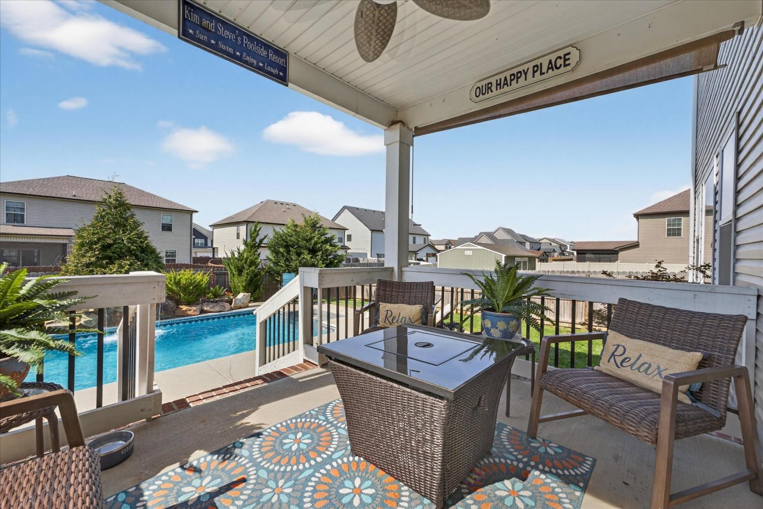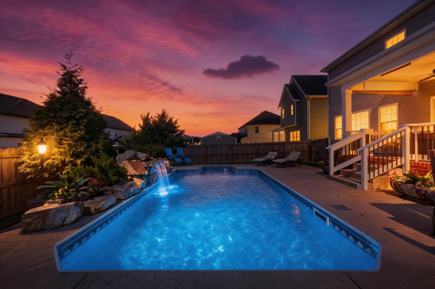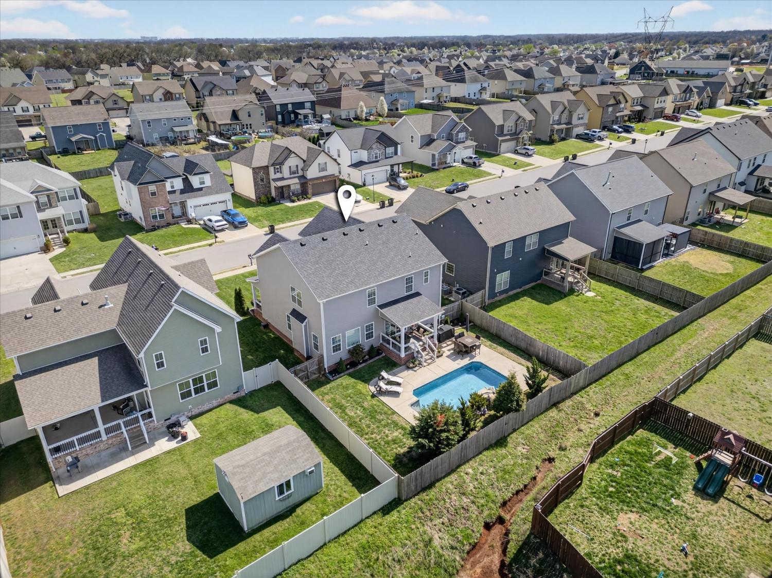 An immaculate 4-bedroom, 2.5-bath home that has been meticulously maintained and thoughtfully styled throughout. The open-concept layout offers comfortable everyday living and effortless entertaining. The kitchen features granite countertops, ample cabinetry, and a pantry, flowing seamlessly into the main living space. A versatile flex room on the main level provides the perfect setting for a formal dining room, home office, or additional sitting area, along with a mud room and walk-in utility room for added convenience. Upstairs, you’ll find a spacious bonus area and generously sized bedrooms—each with walk-in closets. The primary suite offers a peaceful retreat with dual walk-in closets, double vanities, and a separate tiled shower and soaking tub. Custom blinds throughout the home carry a lifetime warranty. Step outside to a covered patio overlooking a privacy-fenced backyard with an in-ground pool and custom-built waterfall feature—perfect for relaxing or entertaining. Located just minutes from Interstate 24, shopping, entertainment and other amenities. VA to VA assumable at 2.75% interest rate. Home warranty included and will transfer to the new homeowner at closing.