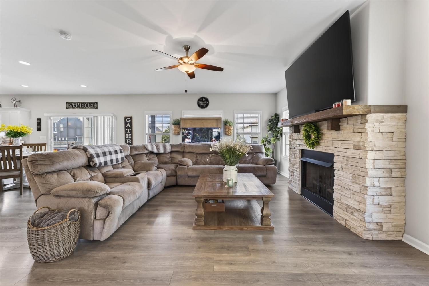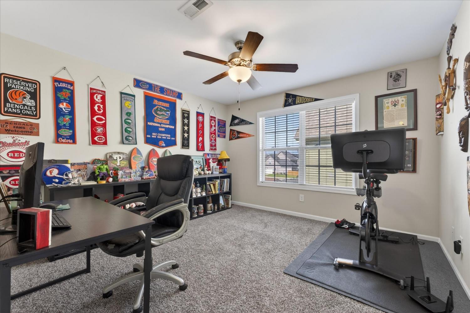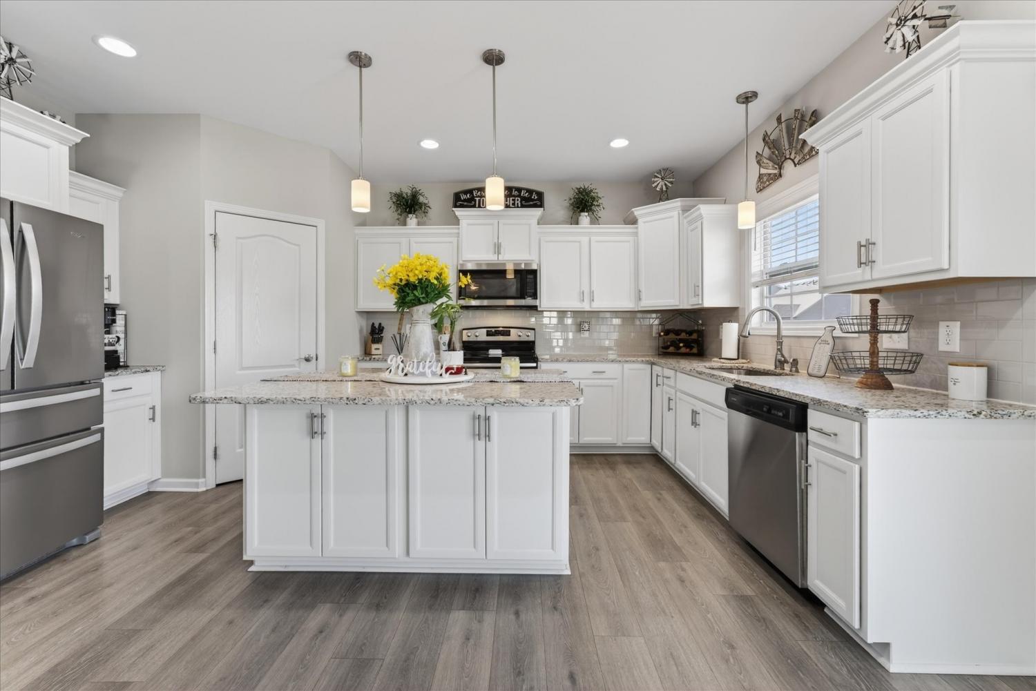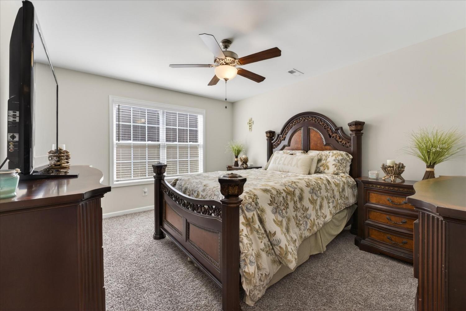 An immaculate 4-bedroom, 2.5-bath home that has been meticulously maintained and thoughtfully styled throughout. The open-concept layout offers comfortable everyday living and effortless entertaining. The kitchen features granite countertops, ample cabinetry, and a pantry, flowing seamlessly into the main living space. A versatile flex room on the main level provides the perfect setting for a formal dining room, home office, or additional sitting area, along with a mud room and walk-in utility room for added convenience. Upstairs, you’ll find a spacious bonus area and generously sized bedrooms—each with walk-in closets. The primary suite offers a peaceful retreat with dual walk-in closets, double vanities, and a separate tiled shower and soaking tub. Custom blinds throughout the home carry a lifetime warranty. Step outside to a covered patio overlooking a privacy-fenced backyard with an in-ground pool and custom-built waterfall feature—perfect for relaxing or entertaining. Located just minutes from Interstate 24, shopping, entertainment and other amenities. VA to VA assumable at 2.75% interest rate. Home warranty included and will transfer to the new homeowner at closing.