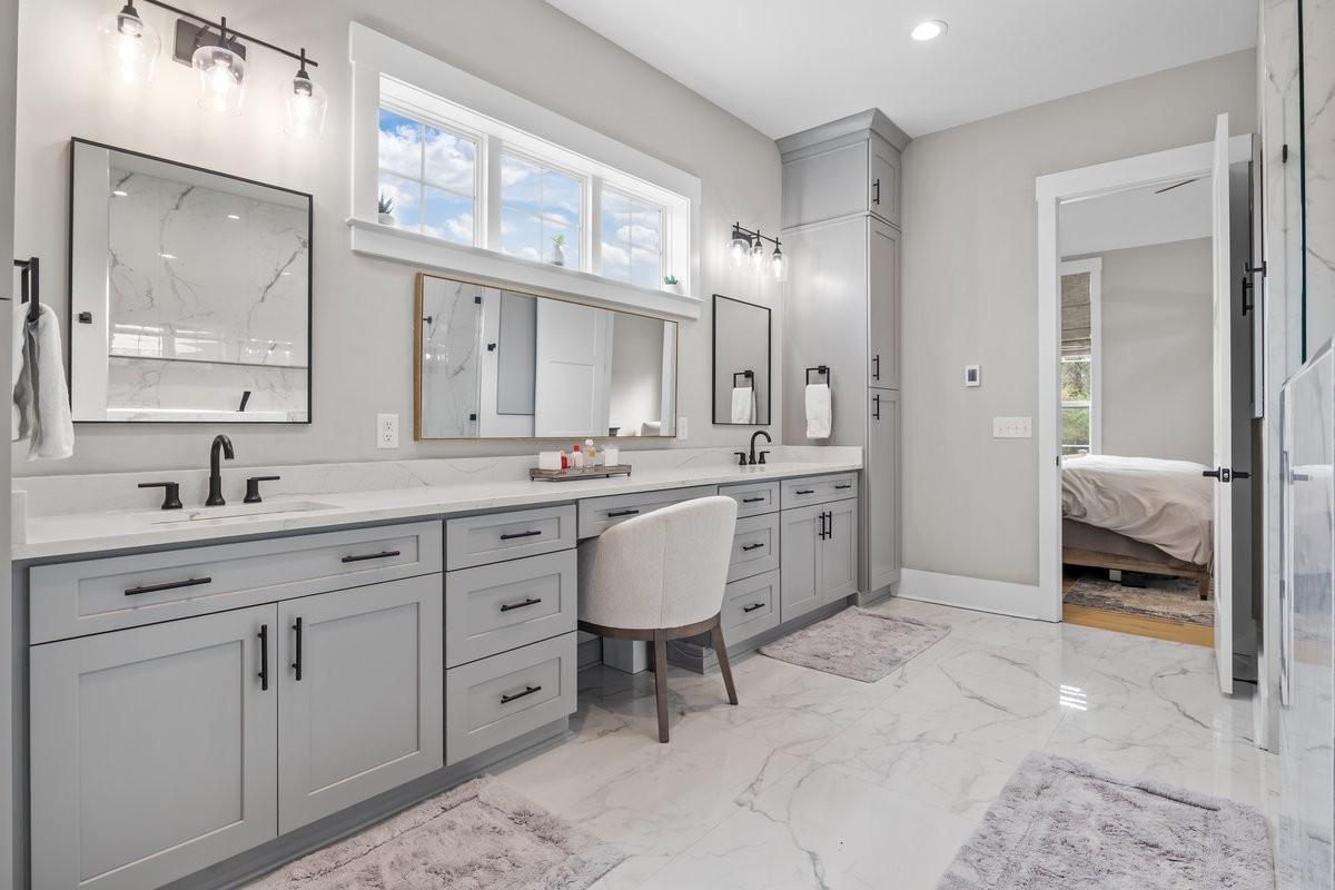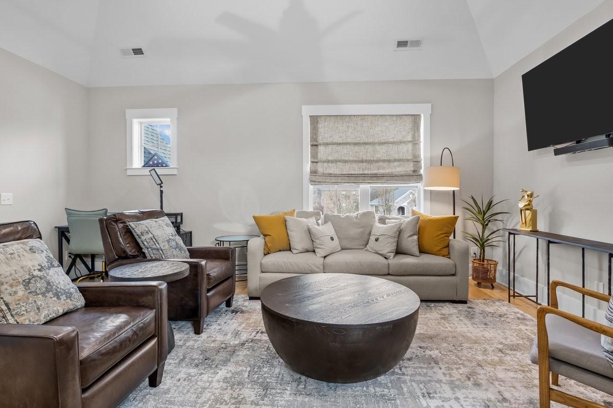Experience elevated living in this like-new all-brick residence built in 2023, located in highly desired Harpeth Meadows community. A spacious aggregate concrete driveway & side-entry 3-car garage provide exceptional curb appeal & ample parking, while the covered front porch welcomes you into the well-appointed home. The open-concept floor plan is filled with natural light & refined details. The living room is anchored by a gas log fireplace & enhanced with custom drapery, while a charming custom pet nook with automatic lighting is tucked beneath the staircase. The gourmet kitchen serves as the centerpiece of the home, featuring a massive island, built-in gas range with wall-mounted pot filler, stainless steel appliances, double ovens, & abundant cabinetry reaching soaring ceilings. A spacious walk-in pantry includes a wet bar & wine fridge, while the kitchen flows seamlessly into the formal dining area. The main-level primary suite offers a luxurious retreat with a spa-inspired bath featuring a custom walk-in shower, tub, double vanities, & an expansive walk-in closet with its own washer & dryer hookups. A second main-level bedroom suite with private bathroom & walk-in closet provides the perfect setup for multigenerational living or guests. Upstairs features a spacious bonus/rec room with full bath, 2 bedrooms connected by a Jack-and-Jill bath, & a versatile office that could serve as a 5th bedroom. Enjoy outdoor living on the newly screened-in back patio with a wood-burning fireplace with gas starter. The backyard is enclosed with a cedar privacy fence. Highlights include a tankless gas water heater, Halo whole-house water filtration, spray-foam insulation & roof decking, encapsulated crawlspace, main laundry room, & half bathroom for guests. Residents enjoy resort style amenities: pool, clubhouse, playground, tennis courts w/ pickleball lines, scenic trails, and river access to the Harpeth River. Furniture & TVs negotiable outside contract. Video linked below!