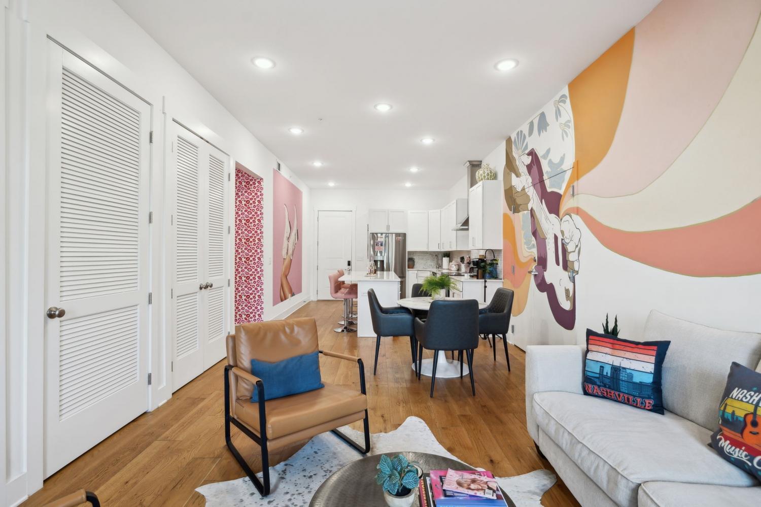 A true turnkey short-term rental with $20,000 in bookings already on the books for 2026, this fully furnished 3-bedroom, 3-bath residence is thoughtfully curated to maximize both style and performance. Professionally designed with bold finishes and vibrant décor, the interiors are crafted to photograph beautifully and attract premium bookings. The open living area flows into a sleek kitchen ideal for entertaining, while each bedroom offers a unique aesthetic and elevated comfort. Guests enjoy the shared rooftop patio with expansive views and access to community amenities including a game room and rooftop terrace. Ideally located near downtown Nashville and East Nashville’s cultural hotspots, this property is legally zoned for non-owner-occupied STR and delivers seamless operations, strong demand, and lasting investment appeal.
