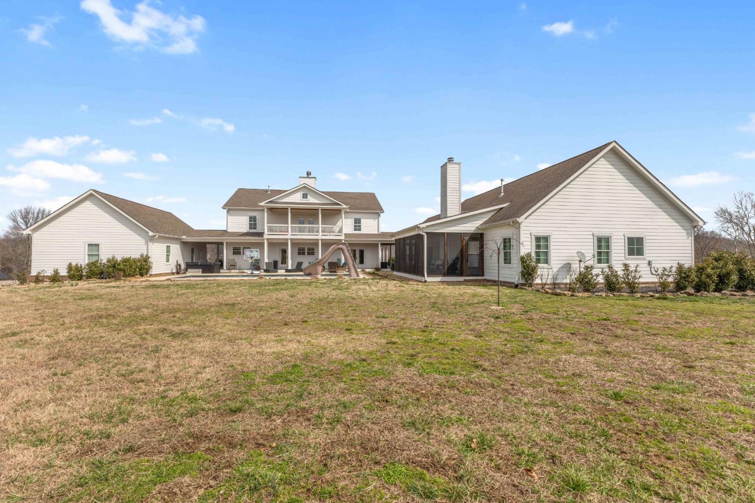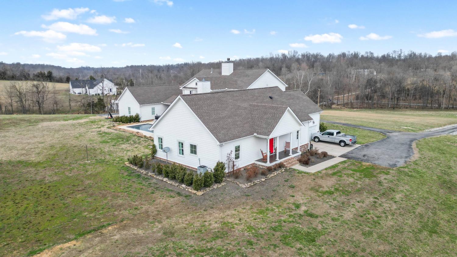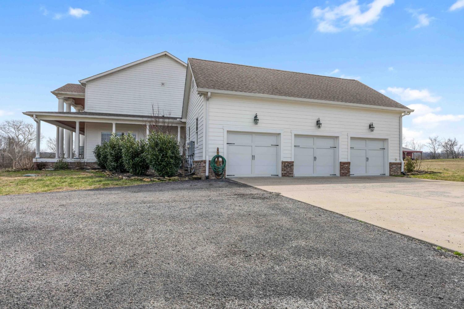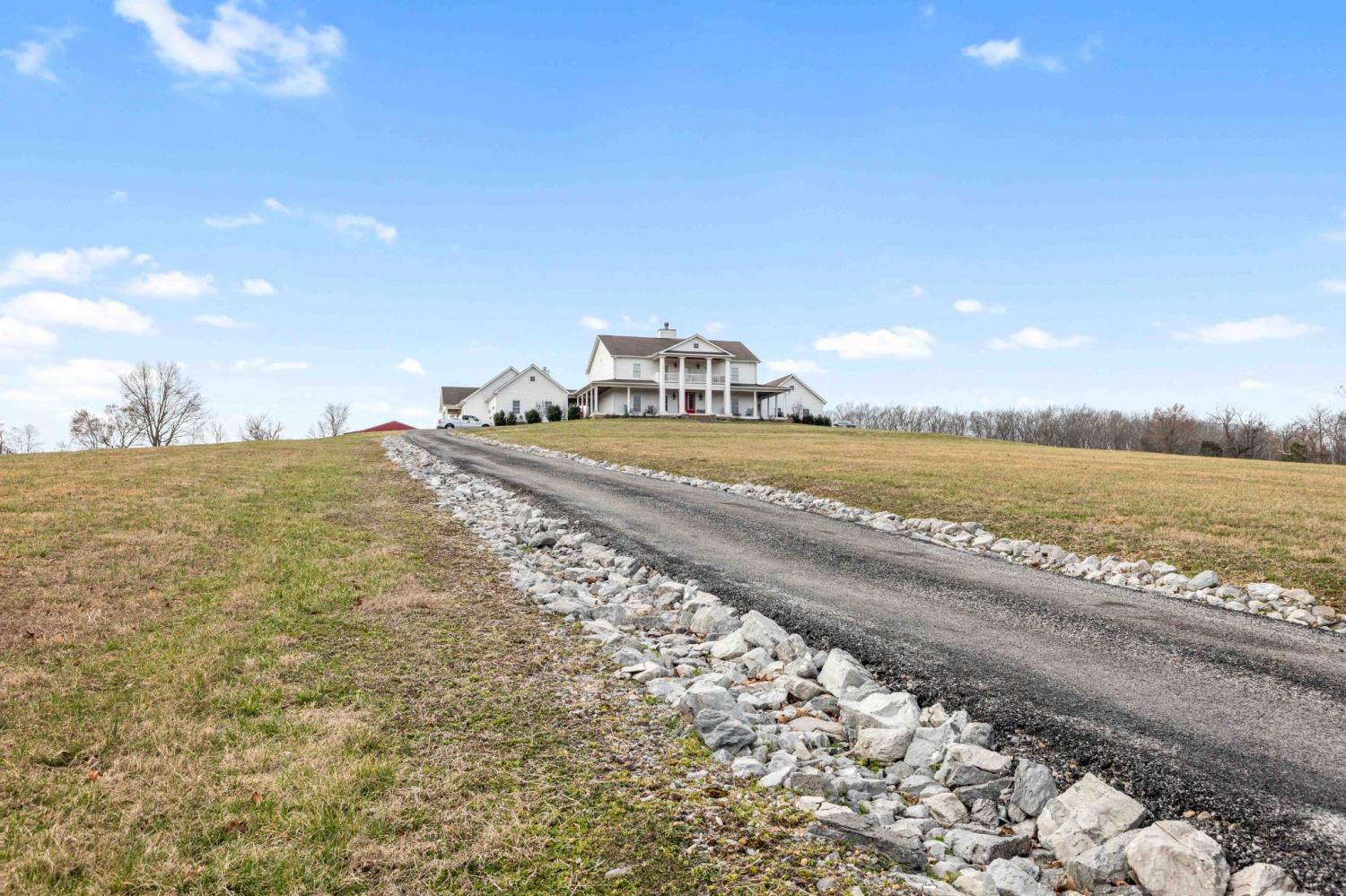 Rare opportunity to own a 36-acre private farm in Bethpage featuring a custom estate home, sep. guest home, rolling pasture, & a large spring-fed pond ideal for horses or cattle. Surrounded by woods & creeks, the property offers exceptional privacy while still being convenient to town. The custom-built main home offers 5 bedrooms, 4 full baths, with a spacious open floor plan. Very large bedrooms all connected to bathrooms. The chef’s kitchen is built for entertaining with a KitchenAid 60-inch six-burner range w/ double ovens & griddle, extensive custom cabinetry, quartz countertops, & a huge island overlooking the great room. A double-sided fireplace connects the kitchen & living area. The oversized primary suite is on the main level, & the home features beautiful custom woodwork, shiplap walls, hardwood floors, & tile throughout. Step outside to enjoy the inground fiberglass pool with slide, large deck, & covered porch overlooking the pool. A separate entrance leads directly to the mudroom with laundry & bath, making pool days easy. The property also includes a second custom-built home with 2 bedrooms & 2 baths, an open floor plan, large island kitchen overlooking the great room w/fireplace, screened porch, & 2-car garage—perfect for extended family, guests, or potential rental income. Farm features include rolling pasture, large spring-fed pond, equipment barn, & a custom chicken coop designed to match the main home. The main home includes a 3-car garage, bringing total garage space to 5 cars. Additional upgrades include a whole-house Generac generator that activates within seconds of a power outage, a 1,000-gallon buried propane tank supplying gas to the kitchen and generator. Conveniently located 15 minutes from Gallatin with easy access to Publix, Kroger, Super Walmart, restaurants, parks, and multiple boat ramps on Old Hickory Lake. Also less than an hour to Nashville International Airport and Vanderbilt Medical Center.