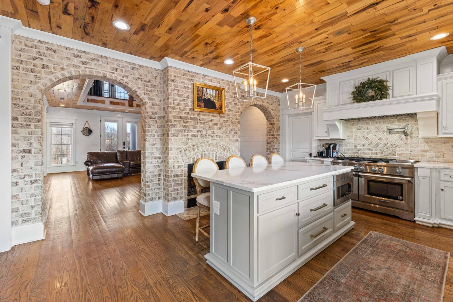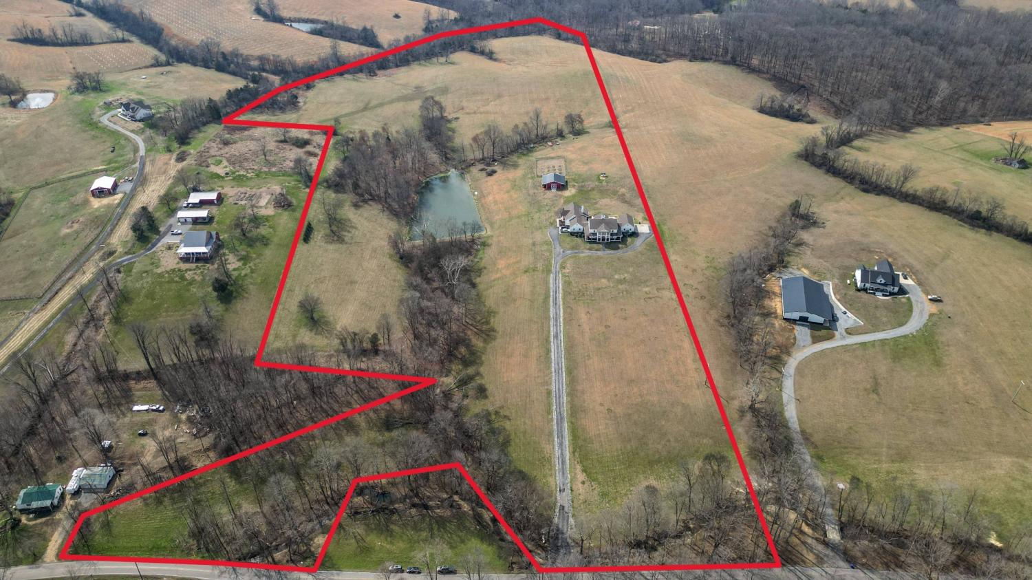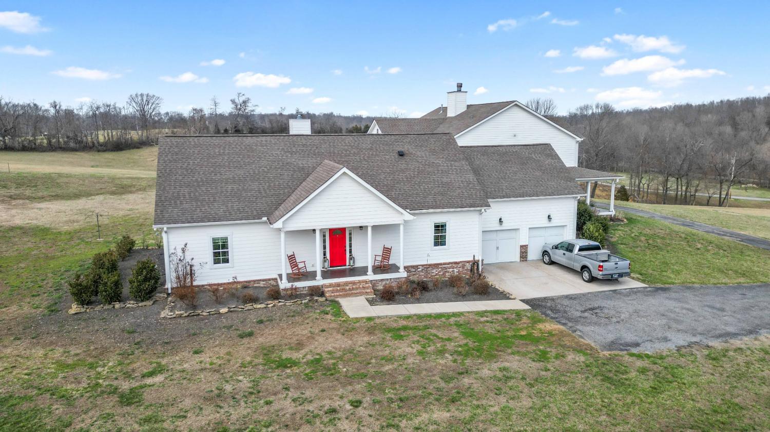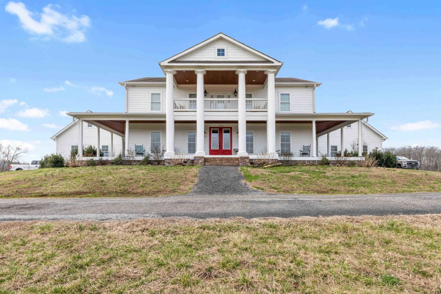 Rare opportunity to own a 36-acre private farm in Bethpage featuring a custom estate home, sep. guest home, rolling pasture, & a large spring-fed pond ideal for horses or cattle. Surrounded by woods & creeks, the property offers exceptional privacy while still being convenient to town. The custom-built main home offers 5 bedrooms, 4 full baths, with a spacious open floor plan. Very large bedrooms all connected to bathrooms. The chef’s kitchen is built for entertaining with a KitchenAid 60-inch six-burner range w/ double ovens & griddle, extensive custom cabinetry, quartz countertops, & a huge island overlooking the great room. A double-sided fireplace connects the kitchen & living area. The oversized primary suite is on the main level, & the home features beautiful custom woodwork, shiplap walls, hardwood floors, & tile throughout. Step outside to enjoy the inground fiberglass pool with slide, large deck, & covered porch overlooking the pool. A separate entrance leads directly to the mudroom with laundry & bath, making pool days easy. The property also includes a second custom-built home with 2 bedrooms & 2 baths, an open floor plan, large island kitchen overlooking the great room w/fireplace, screened porch, & 2-car garage—perfect for extended family, guests, or potential rental income. Farm features include rolling pasture, large spring-fed pond, equipment barn, & a custom chicken coop designed to match the main home. The main home includes a 3-car garage, bringing total garage space to 5 cars. Additional upgrades include a whole-house Generac generator that activates within seconds of a power outage, a 1,000-gallon buried propane tank supplying gas to the kitchen and generator. Conveniently located 15 minutes from Gallatin with easy access to Publix, Kroger, Super Walmart, restaurants, parks, and multiple boat ramps on Old Hickory Lake. Also less than an hour to Nashville International Airport and Vanderbilt Medical Center.