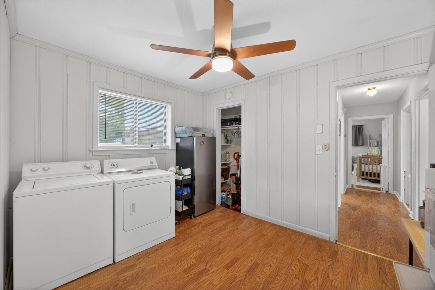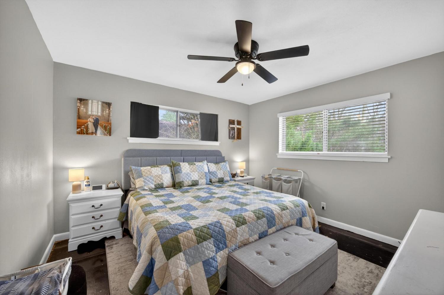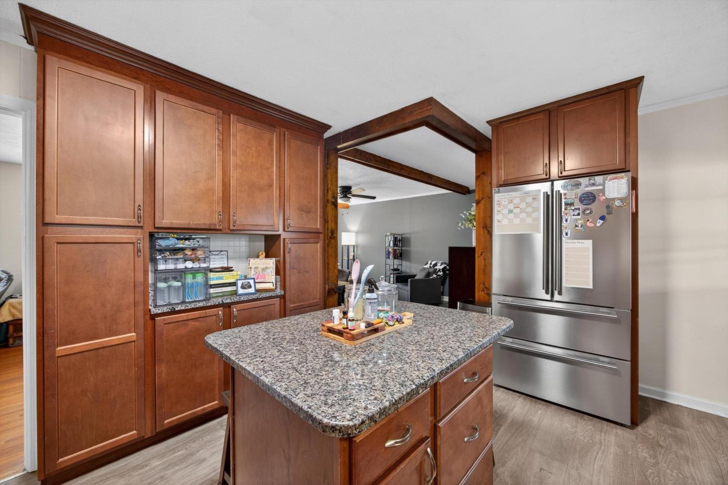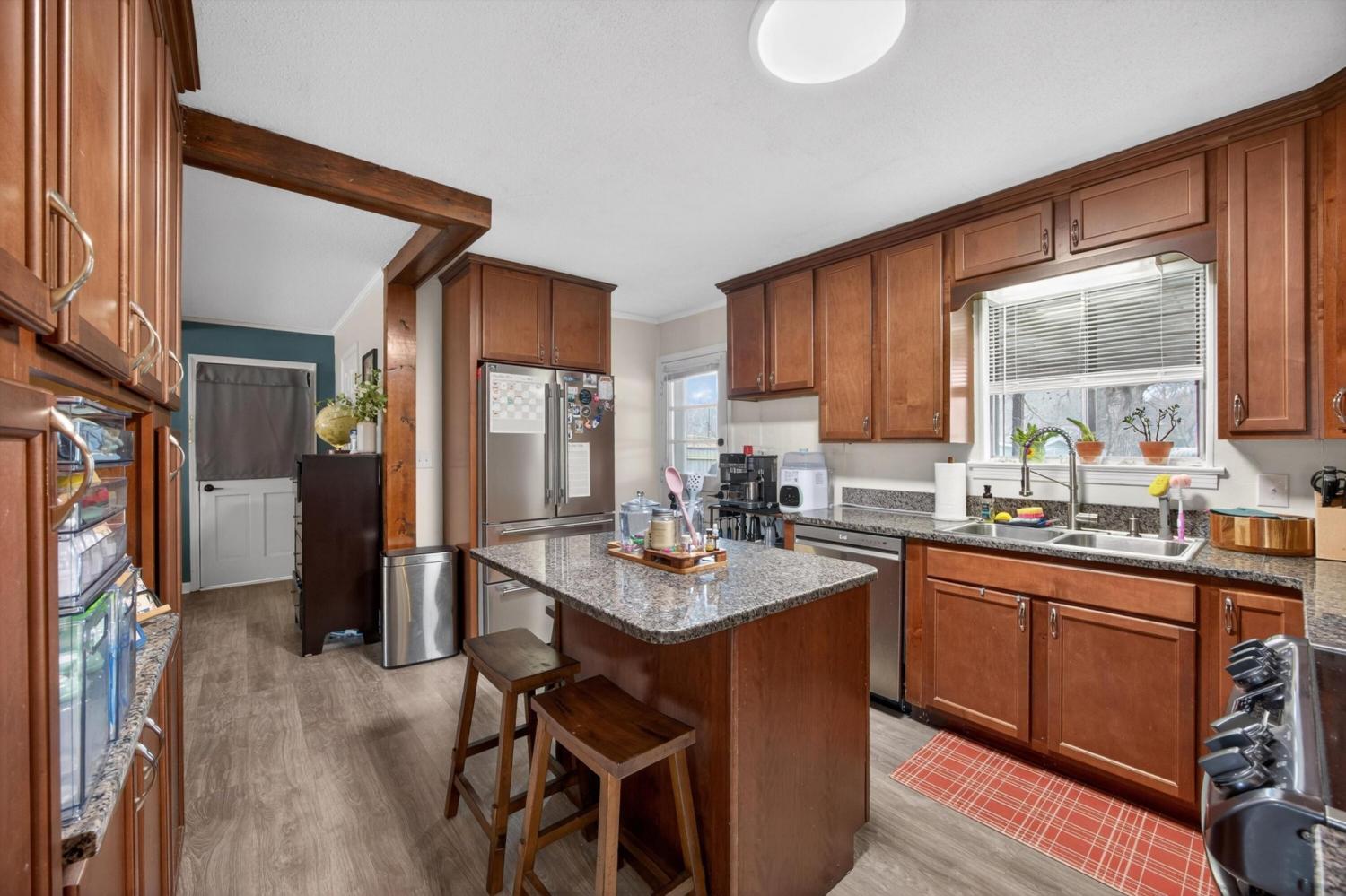 Beautiful single-level home tucked away on a quiet street yet conveniently located near shopping, schools, and I-75. This 4 bedroom, 2.5 bath home offers a flexible floor plan with the 4th bedroom easily serving as a flex space, office, or bonus room. The layout also provides the possibility for two primary suites, one featuring access to its own private screened porch. Inside, you'll find hardwood and LVP flooring along with fresh interior and exterior paint. The updated kitchen features refreshed cabinetry, granite countertops, and stainless steel appliances. Two laundry options add convenience with a laundry area in the flex room plus space for a stackable unit in the bathroom. Enjoy outdoor living on the large covered deck overlooking the private fenced backyard. A storage outbuilding provides additional space for tools, lawn equipment, or hobbies. The metal roof is only 10 years old, adding peace of mind for years to come.