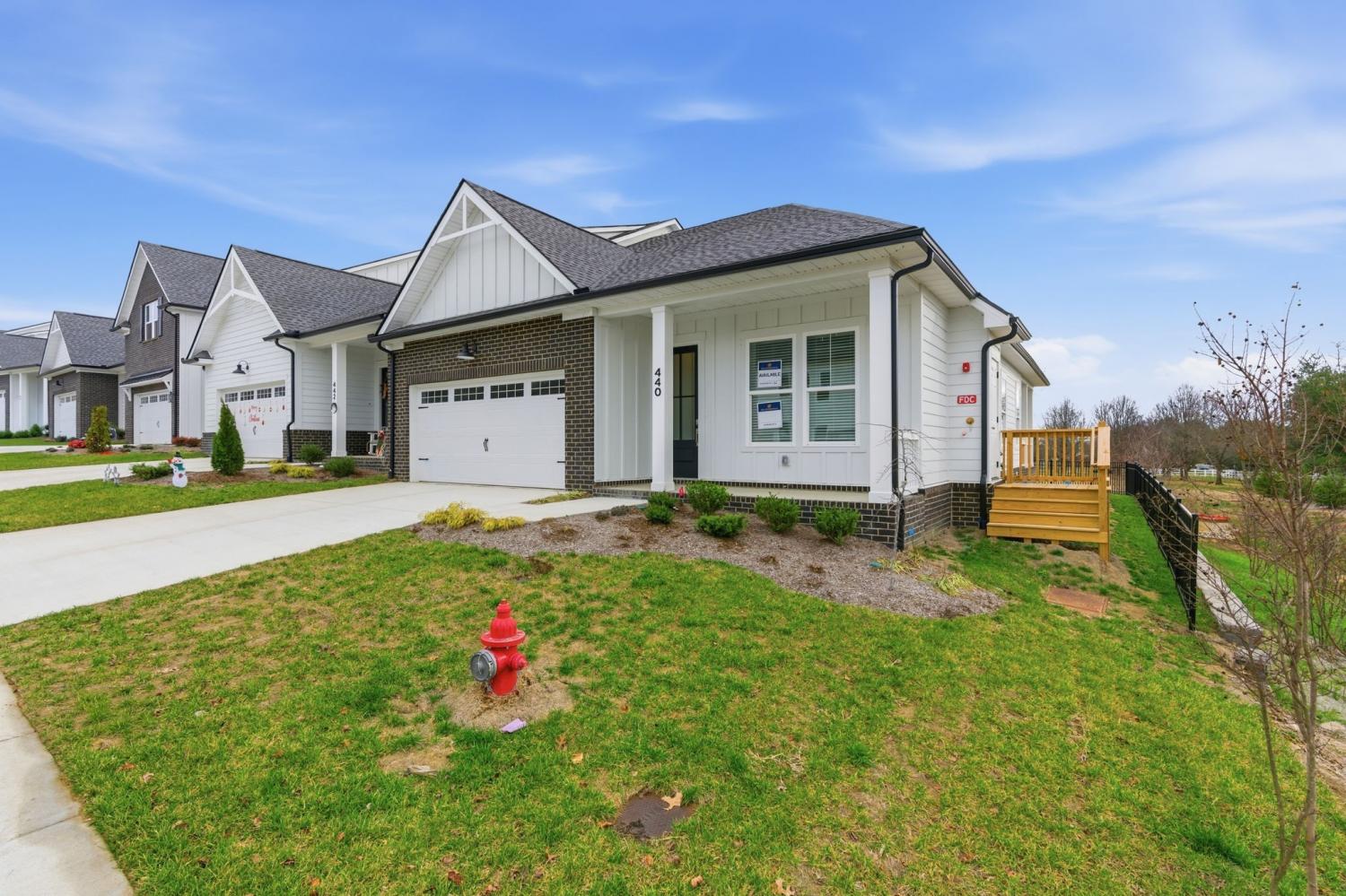 Last chance for this beautiful Corsair floorplan Lot 52 in our nearly sold-out Thompson Station community! It is a prime location being the first house in the community and on the end. This one-level ranch end unit offers tranquil views of lush greenspace, perfect for watching the sunrise! Inside, you’ll be delighted by soaring 10’ ceilings, 8’ doors, GAS fireplace and wall of windows for tons of light PLUS a gourmet kitchen featuring a 5 burner GAS cooktop, oversized island, quartz countertops, and designer finishes — perfect for hosting parties or everyday living! Thoughtful touches such as a drop-zone boot bench and under-cabinet lighting to pendant fixtures, window blinds and a two car attached garage make this home hard to pass up. Hurry in for a tour today before it is going, going...gone!