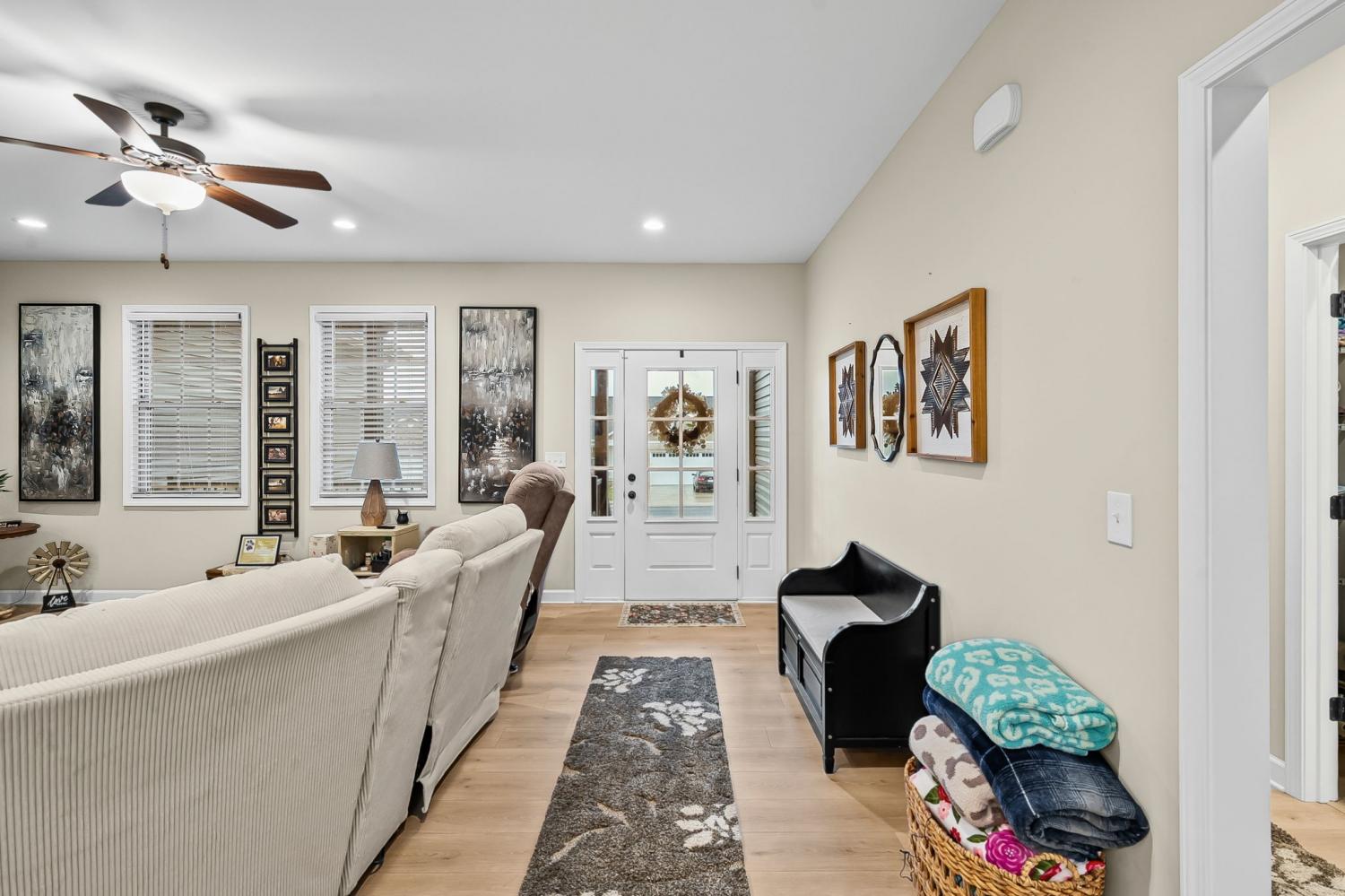 Welcome home to this beautiful 3 bedroom, 2 bath ranch located in the desirable Concord Villas subdivision in Hopkinsville. This well-maintained home features an open floor plan design that seamlessly connects the living room and kitchen, creating a bright and inviting space perfect for everyday living and entertaining. The kitchen is highlighted by stylish granite countertops and ample cabinet space. The spacious primary suite offers dual sinks and a beautifully tiled walk-in shower, creating a comfortable retreat at the end of the day. Two additional bedrooms provide plenty of space for family, guests, or a home office. Step outside to enjoy the covered rear porch overlooking a fully fenced backyard—perfect for relaxing, entertaining, or letting pets play safely. Conveniently located just minutes from Interstate 169, this home also offers a quick commute to Fort Campbell while still being close to local shopping, dining, and amenities in Hopkinsville. This move-in ready home is one you won’t want to miss!